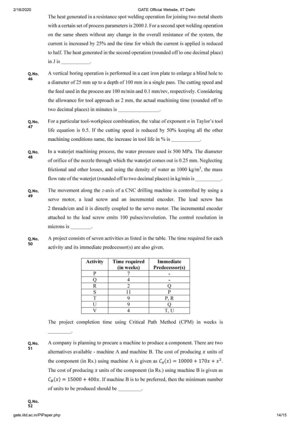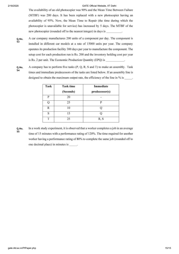 On the 1st of February 2020, the GATE Production and Industrial Engineering PI examination was held. IIT Delhi was in charge of the examination. GATE PI Question paper with answer key PDFs for 2020 is now available. This analysis is critical for applicants planning to take the GATE PI exam in the near future. Fair attempts were identified to be between 30 – 40. The difficulty level of GATE 2020 PI paper is found to be moderate to difficult.