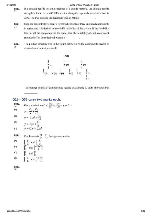 - The MSQ and NAT questions have no negative marking.