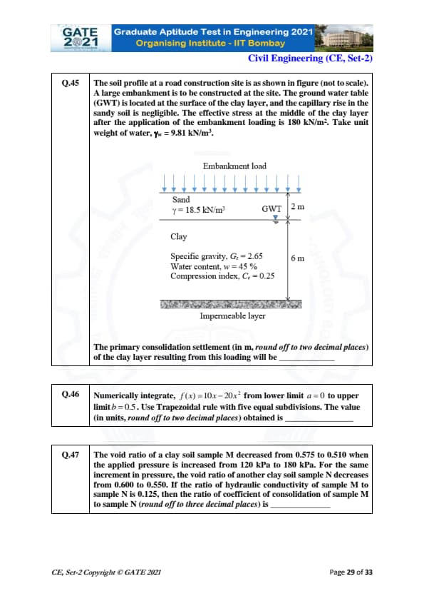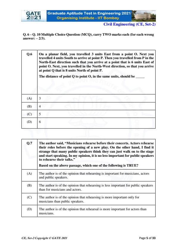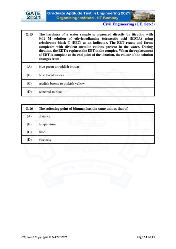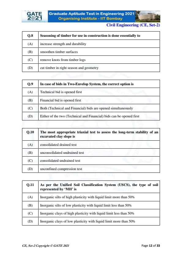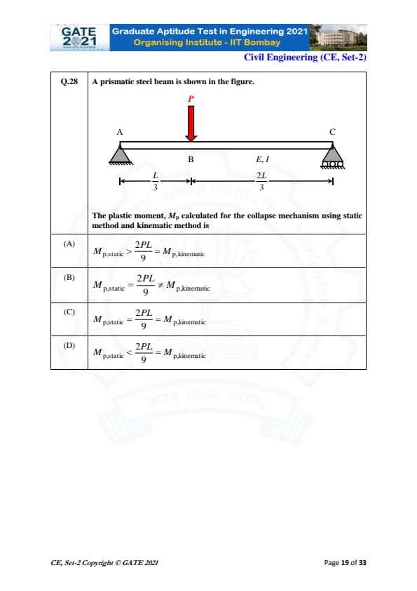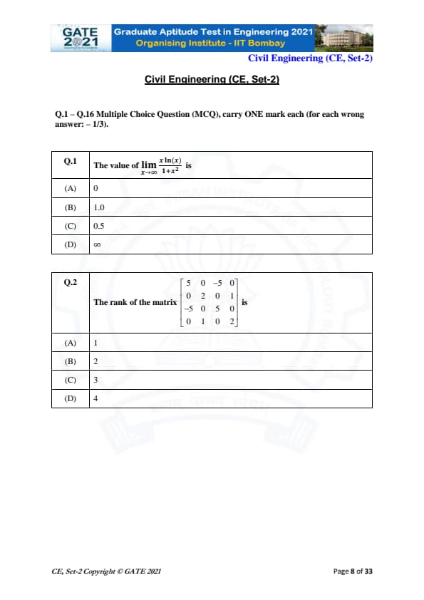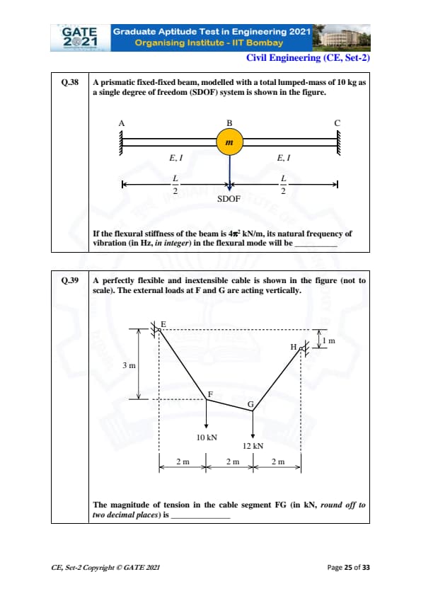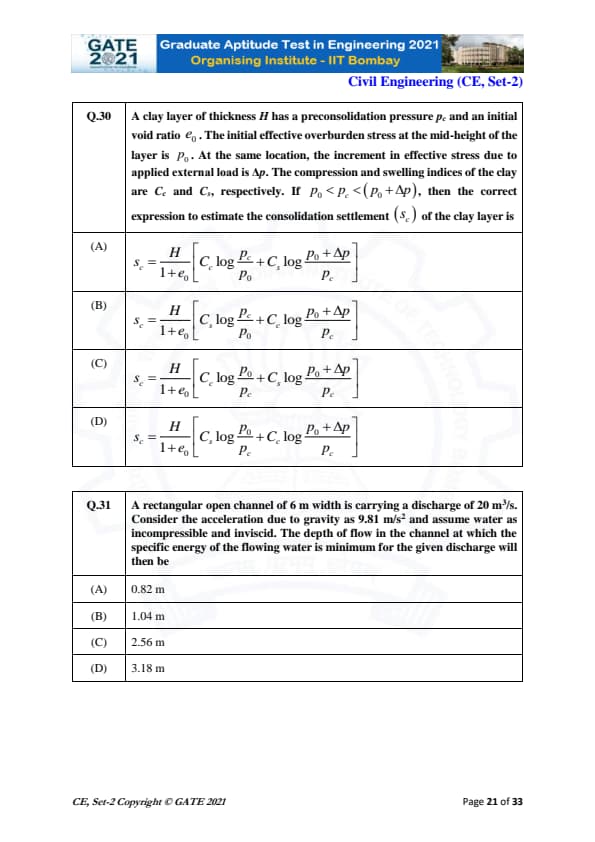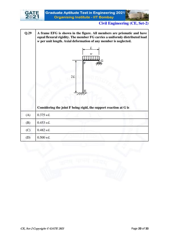| GATE 2021 Civil Engineering (CE, Set-2) Question Paper | Check Solutions |