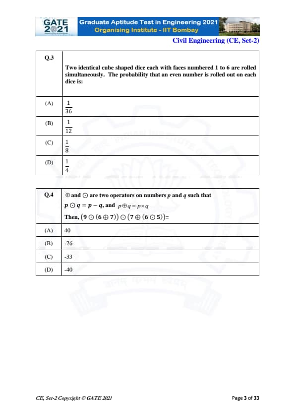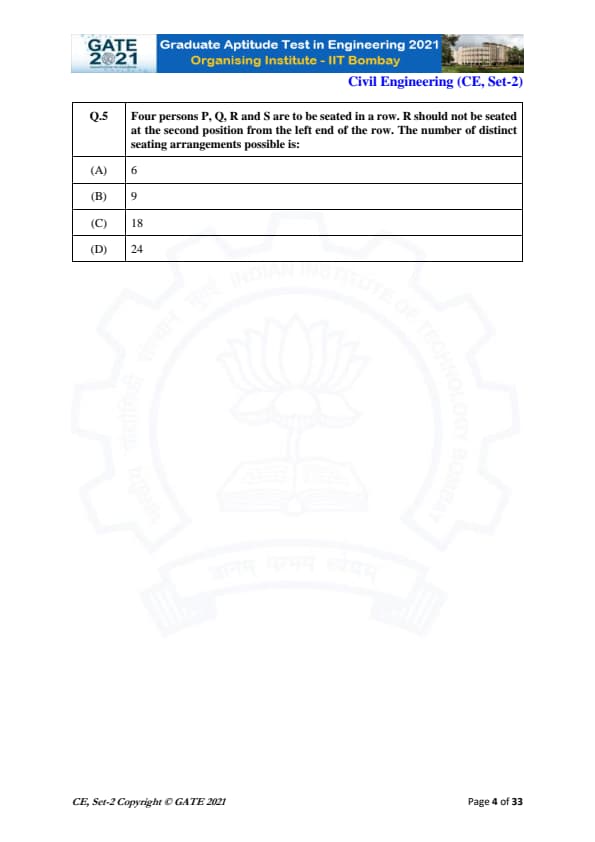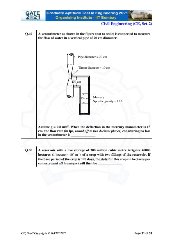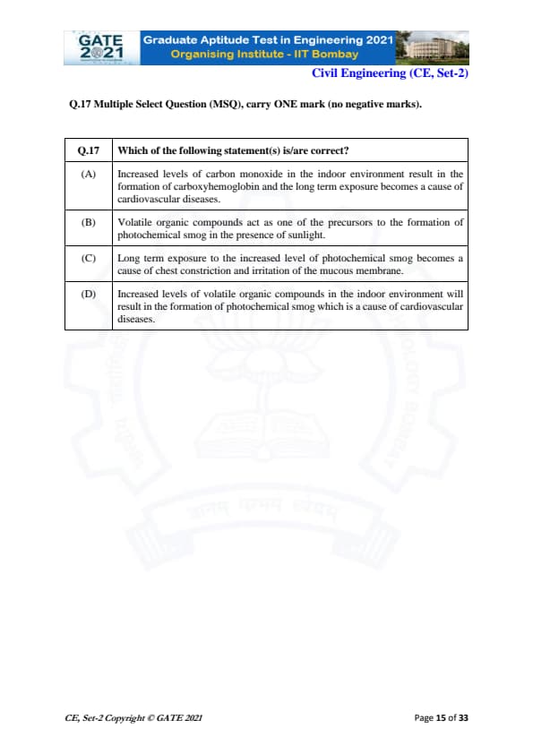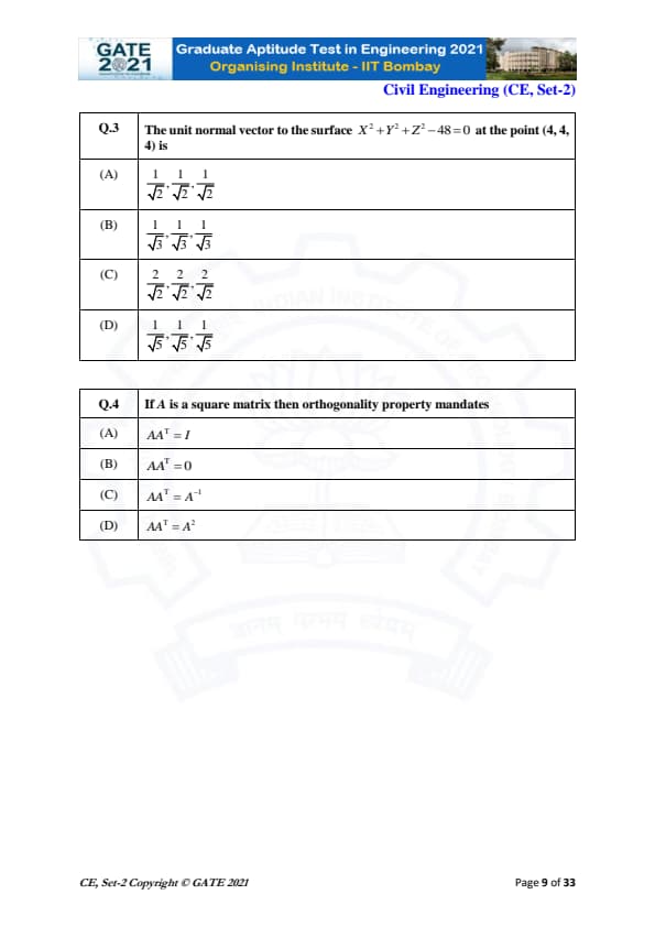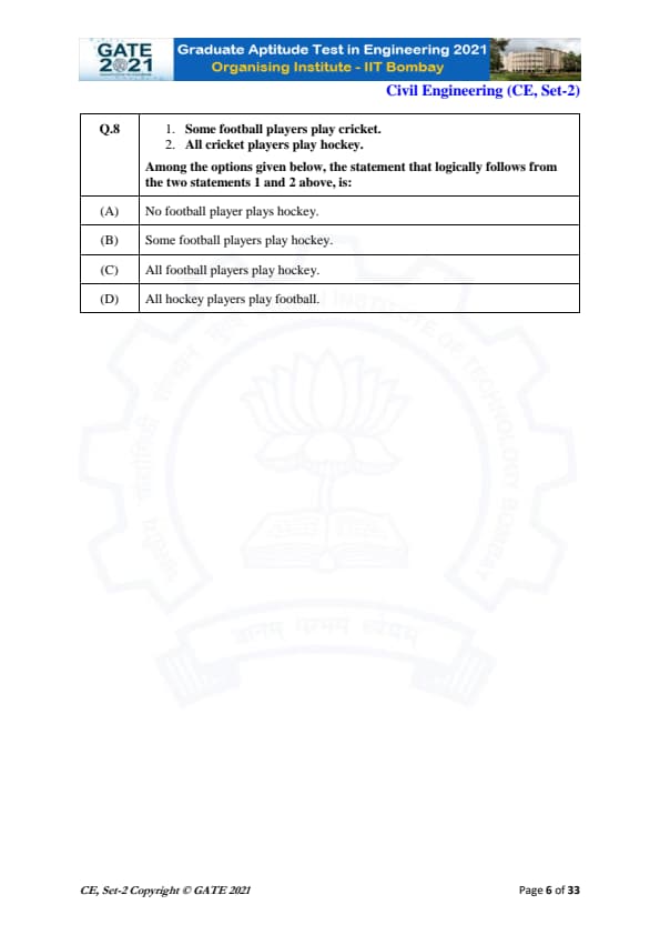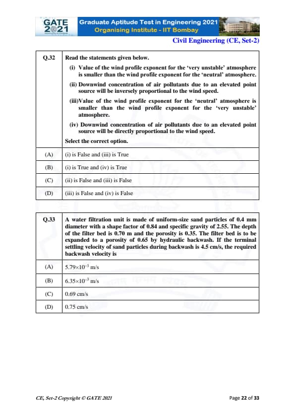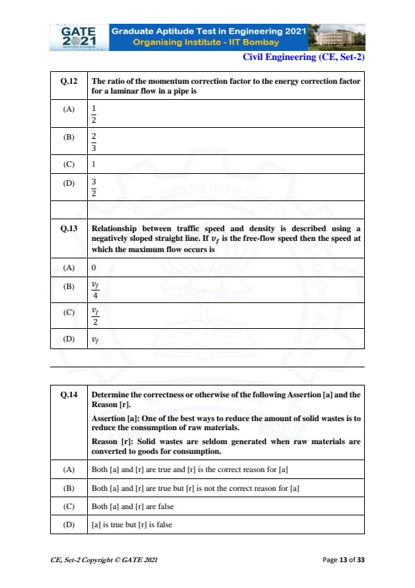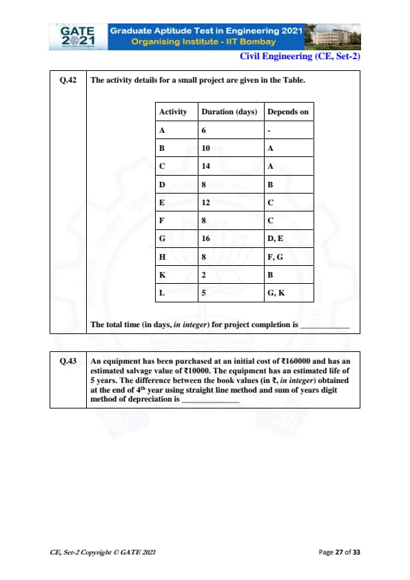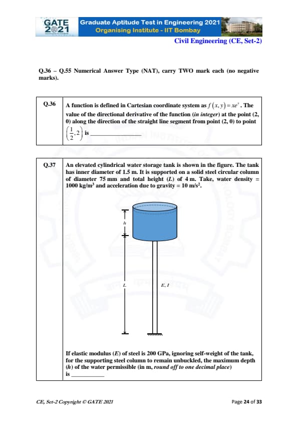 | GATE 2021 Civil Engineering (CE, Set-2) Question Paper | Check Solutions |