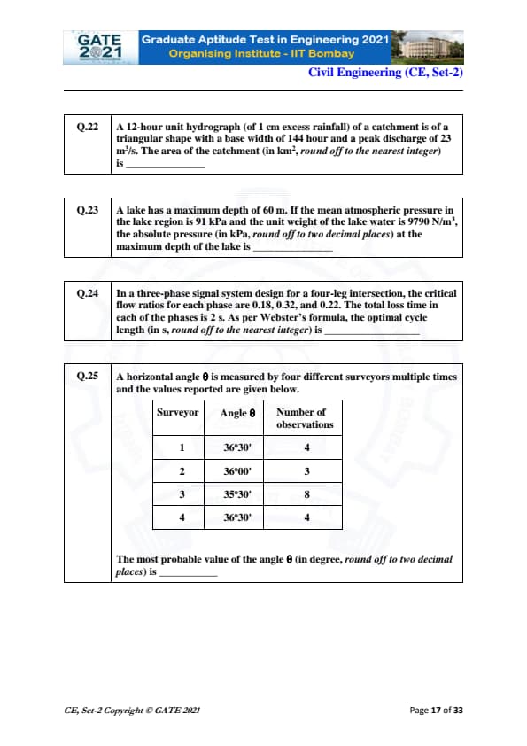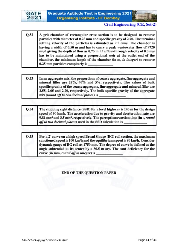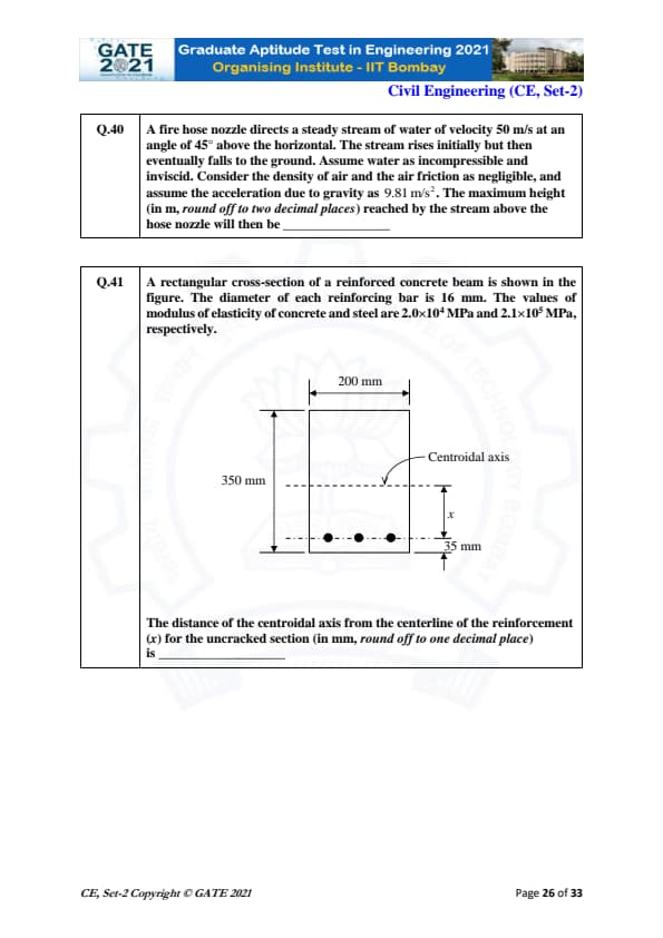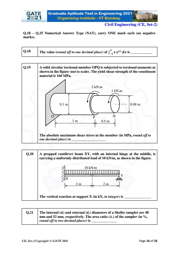 GATE 2021 Civil Engineering (CE, Set-2) Question Paper with Solutions
