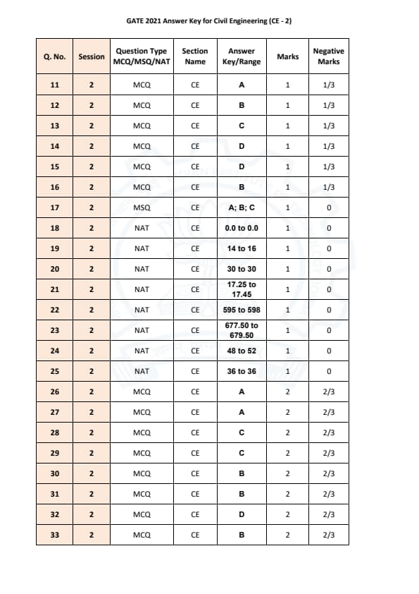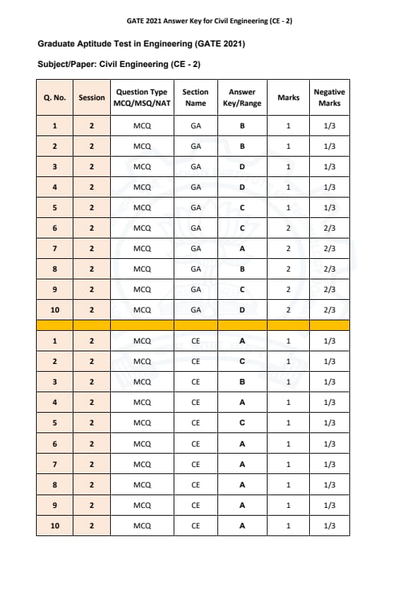 To prepare efficiently for the upcoming GATE 2023 exam can download GATE 2021 CE question paper with answer key PDFs given below: