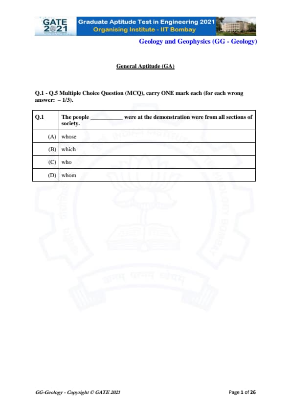 - No MSQs (Multiple Select Questions) were asked in GATE 2021 GG