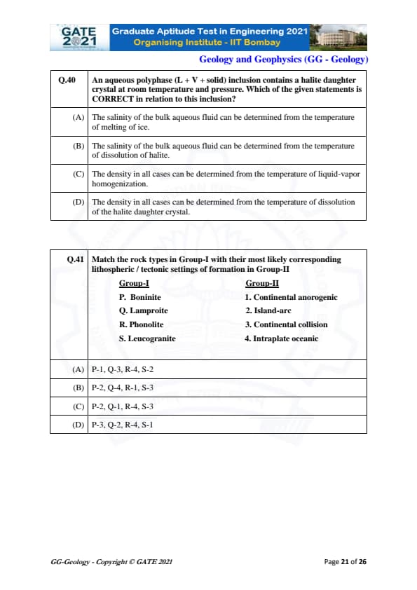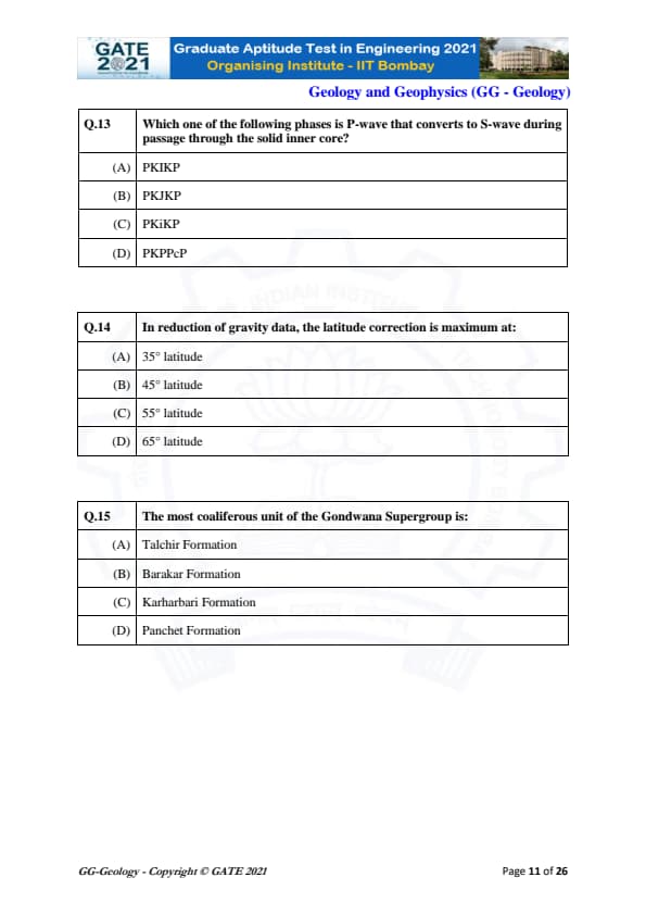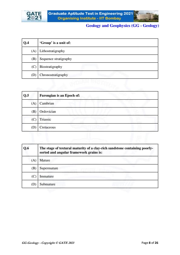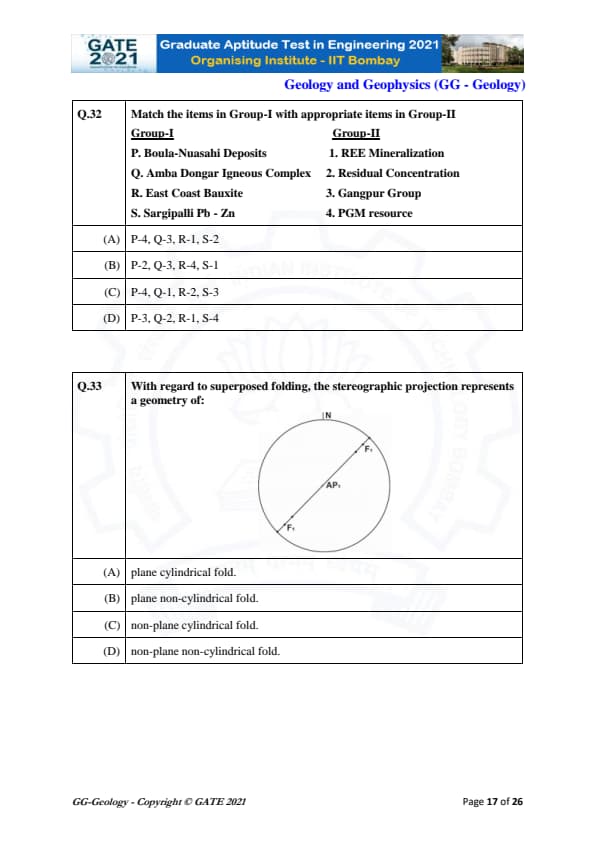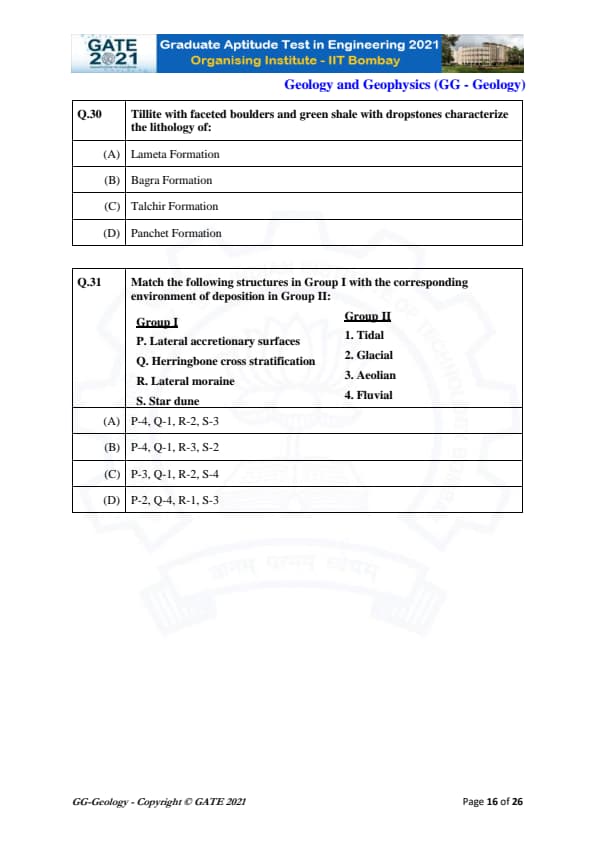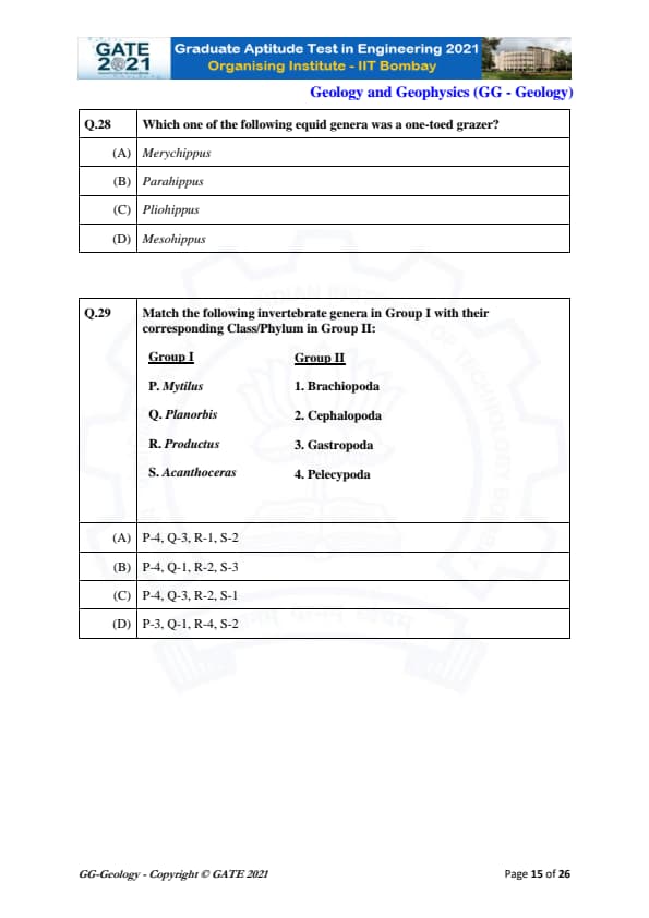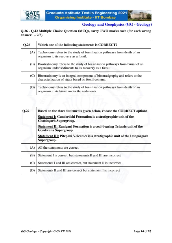 | GATE 2021 GG Question Paper | GATE 2021 GG Answer Key |