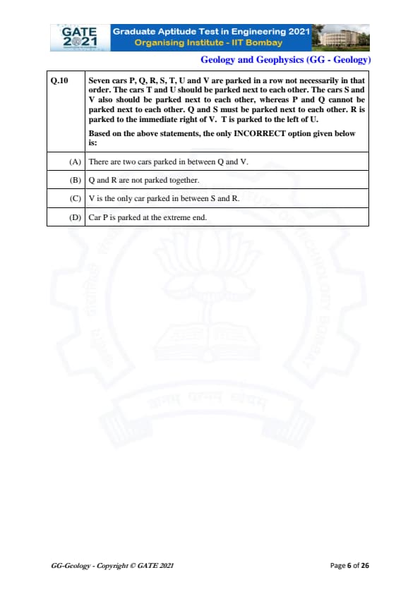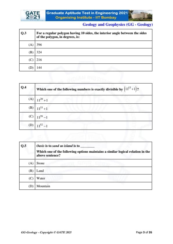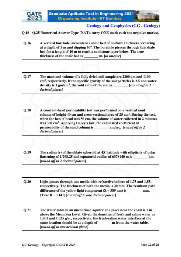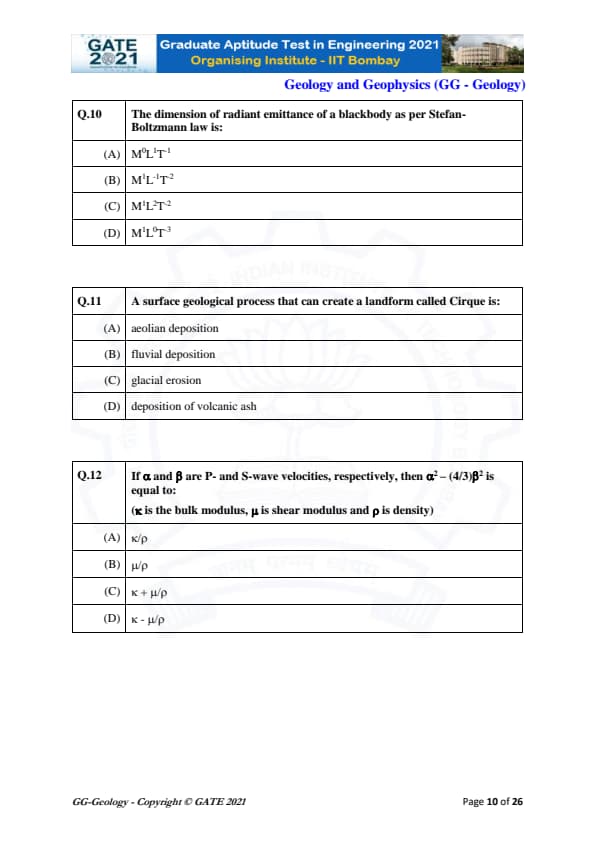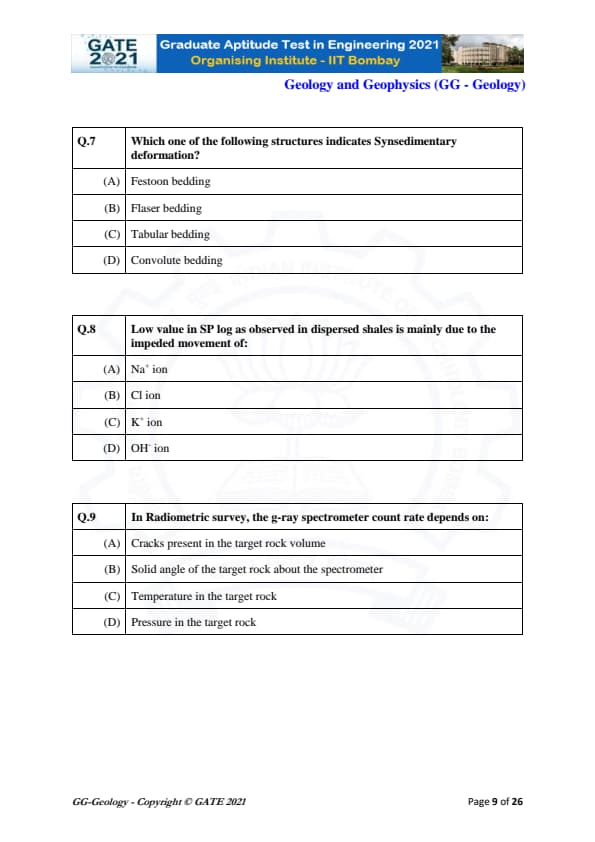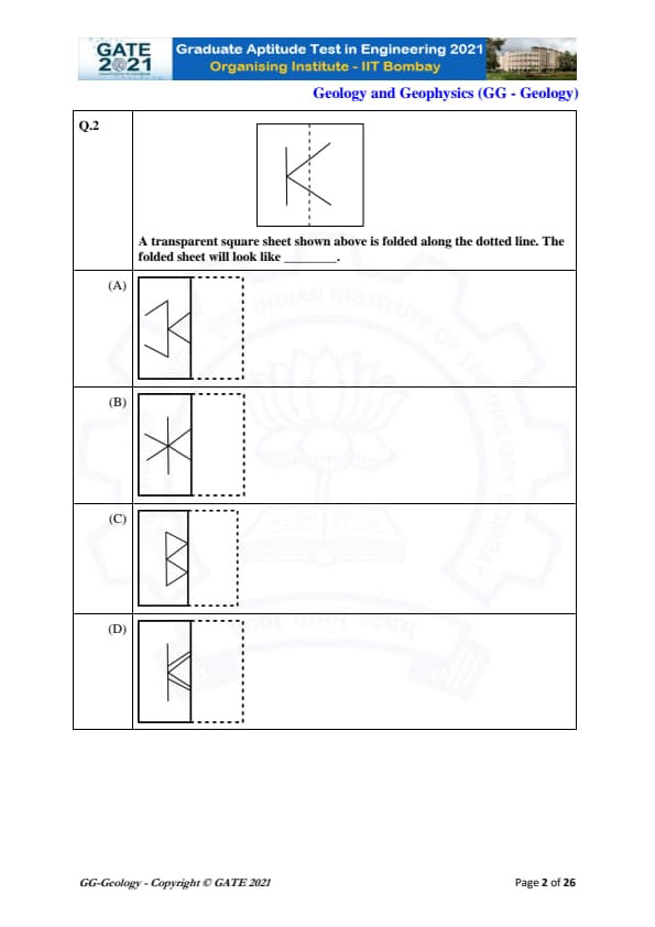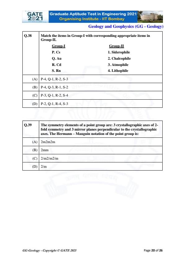 | GATE 2021 GG Question Paper | GATE 2021 GG Answer Key |