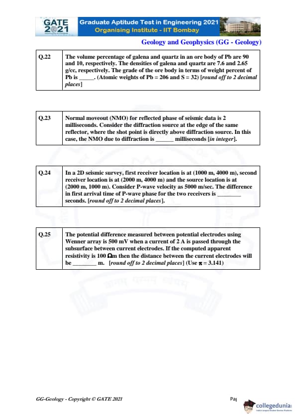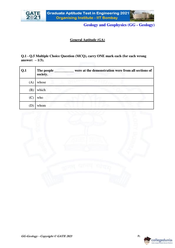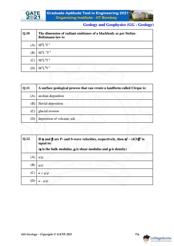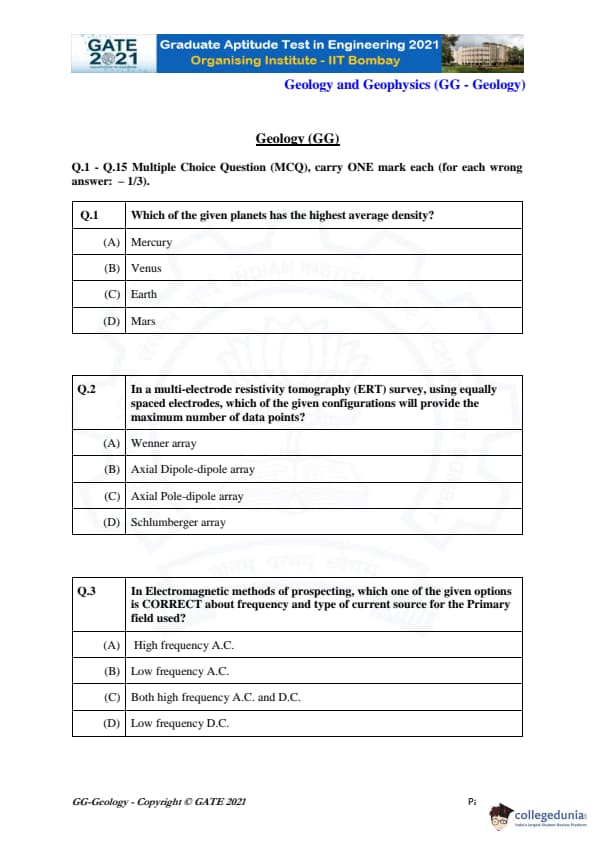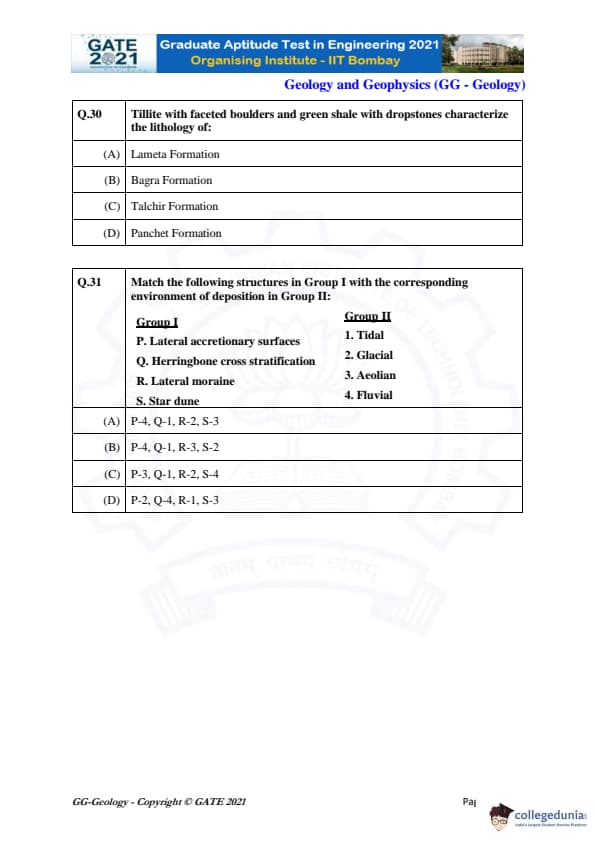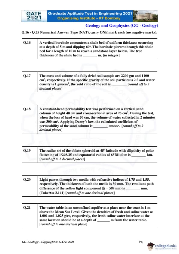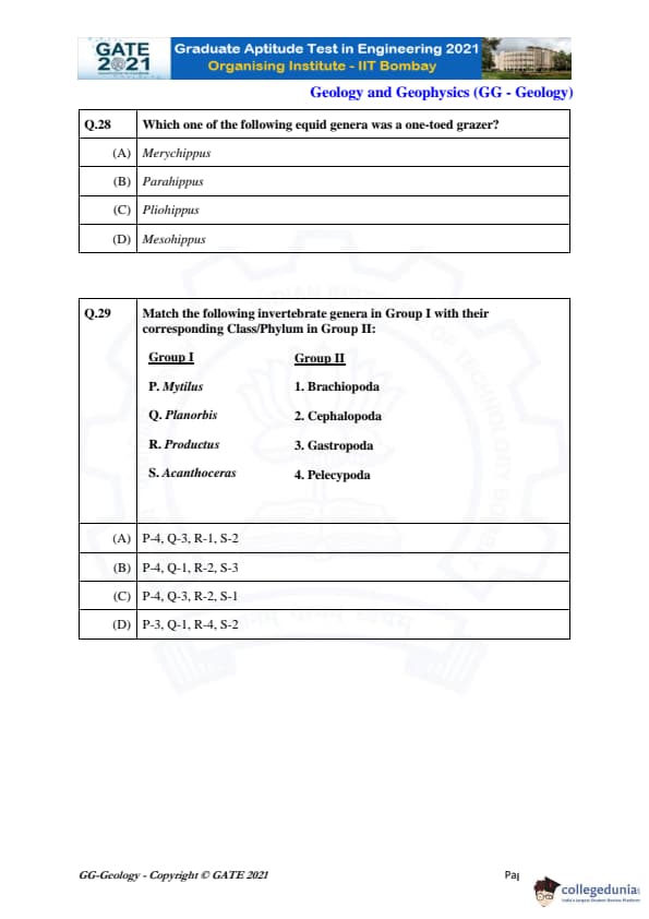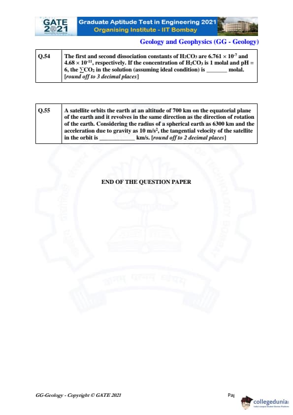 GATE 2021 Geology and Geophysics (GG) Question Paper with Solutions