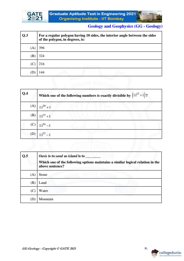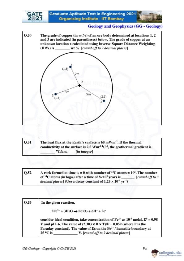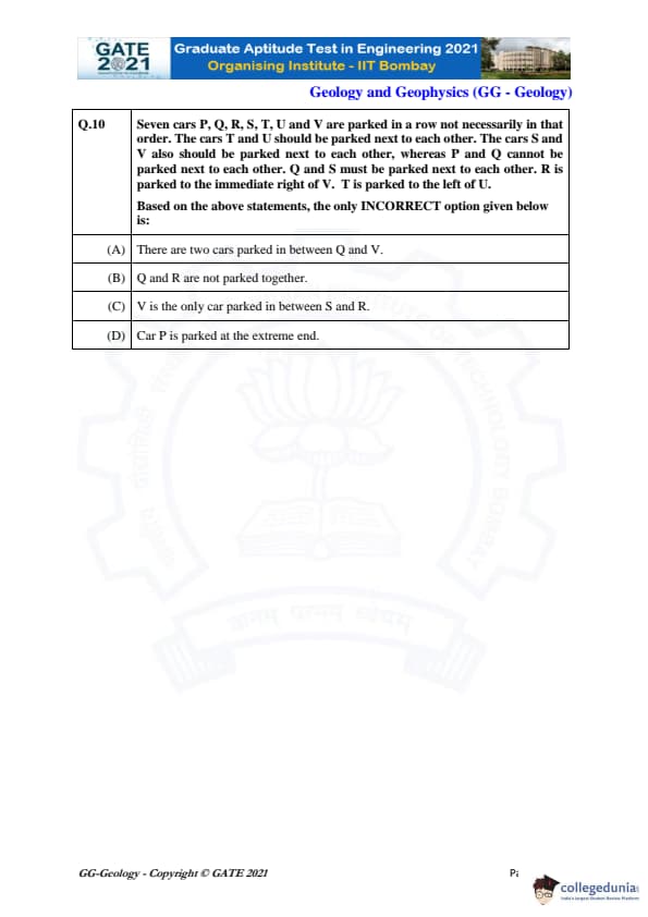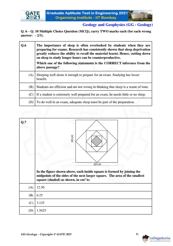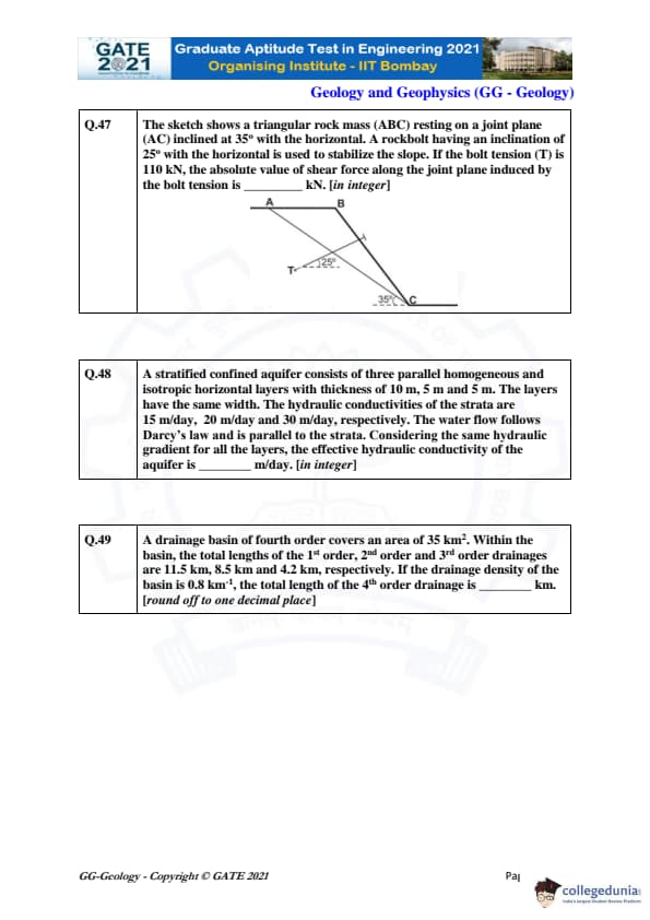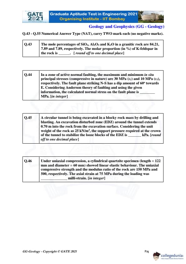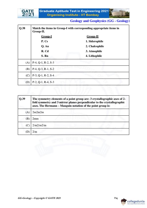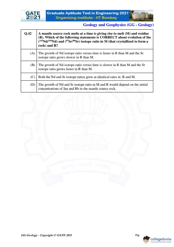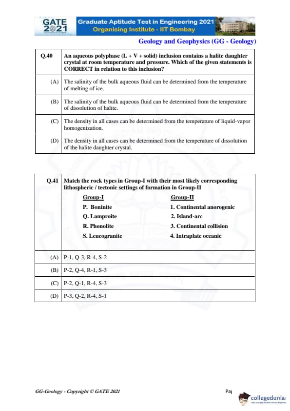 GATE 2021 Geology and Geophysics (GG) Question Paper with Solutions