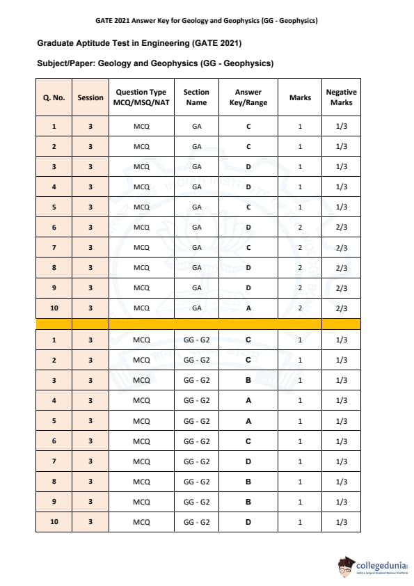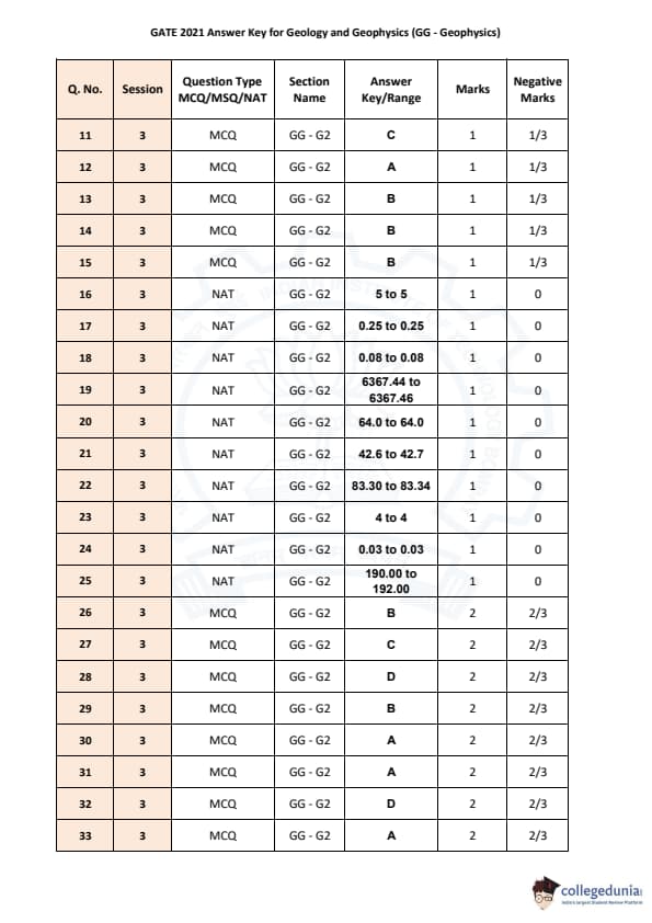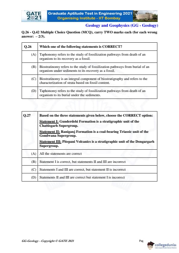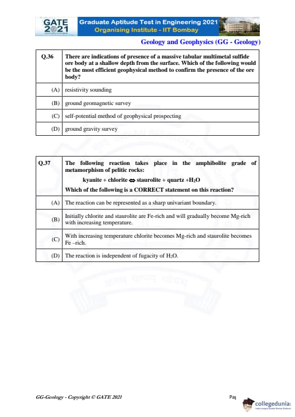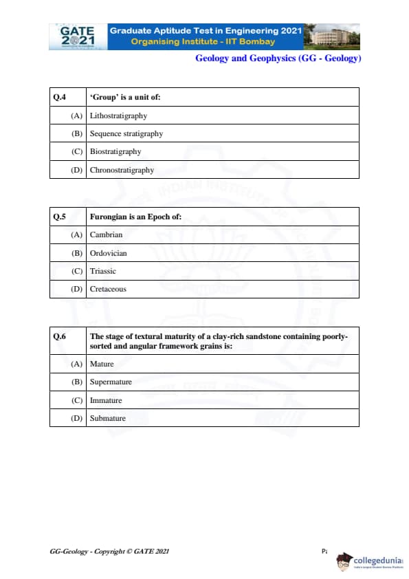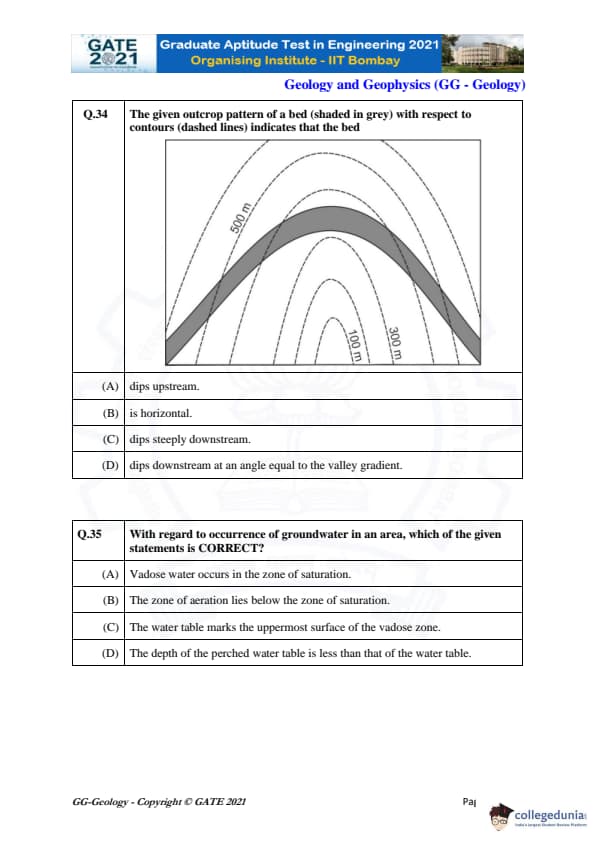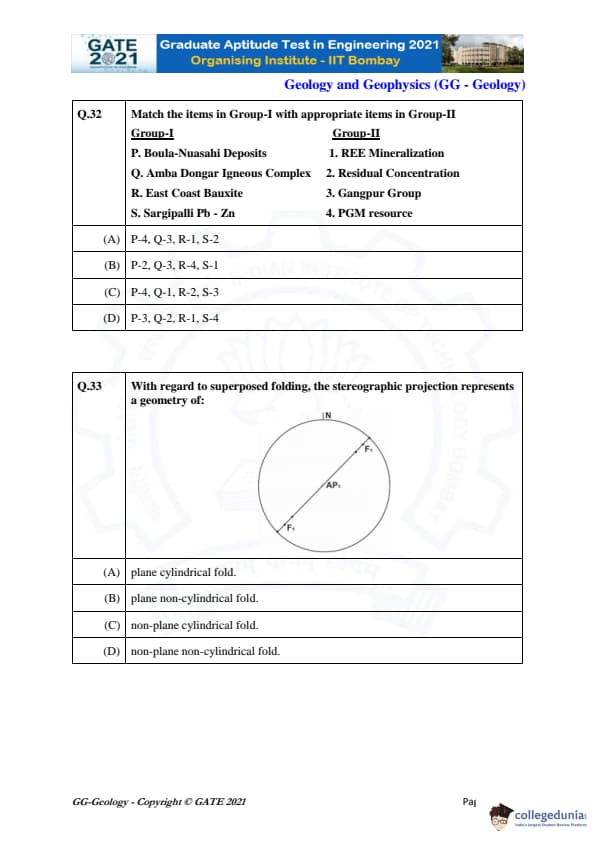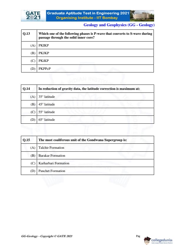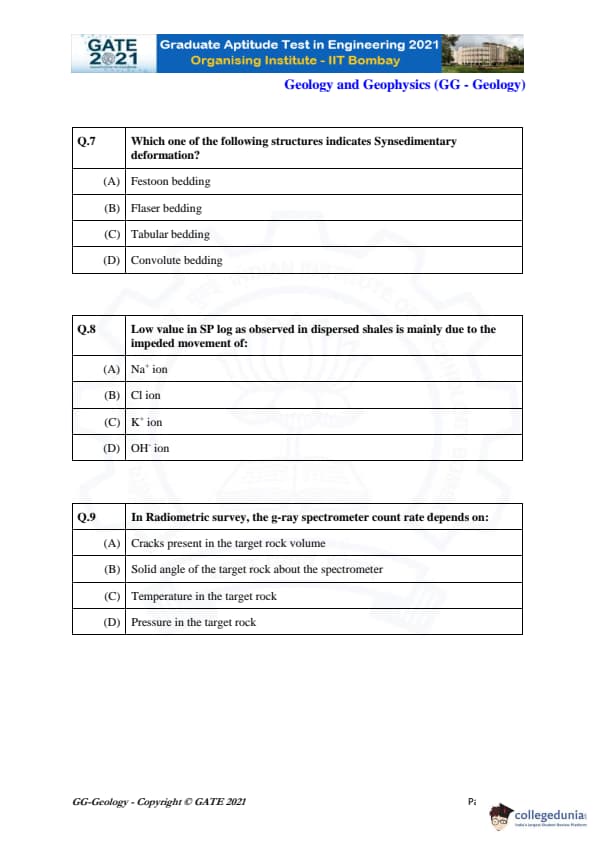| GATE 2021 Geology and Geophysics (GG) Question Paper | Check Solutions |