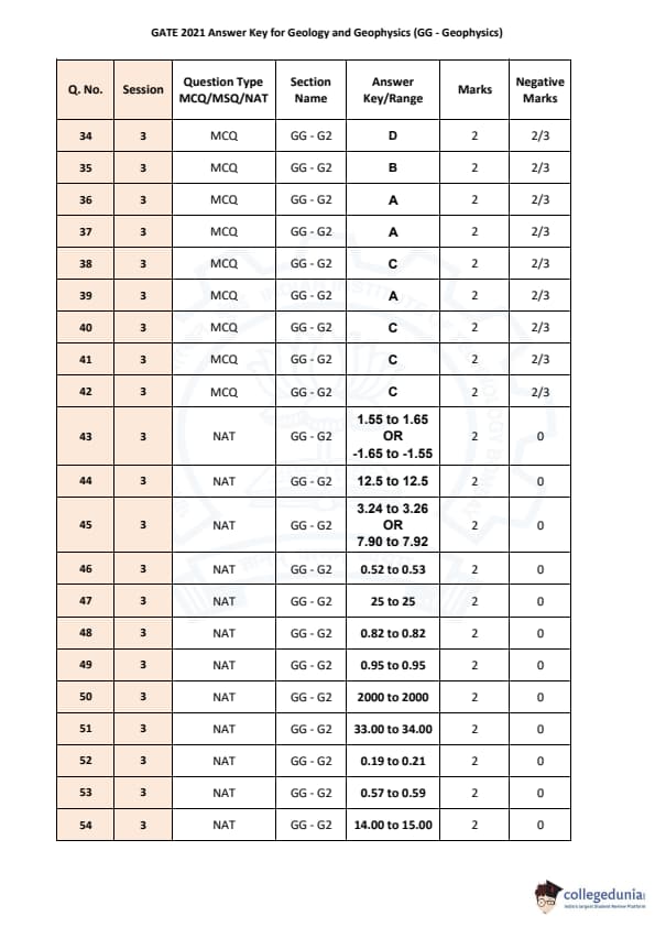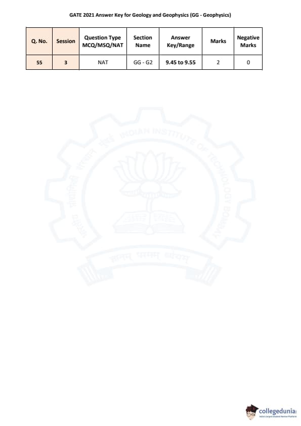 GATE 2021 Geology and Geophysics (GG) was concluded on 7th February by IIT Bombay. Students can download the GATE 2021 (Geophysics) Question Paper and Answer Key from this page. This year, the number of questions appearing in GATE 2021 GG were the same as GATE 2020 GG. 65 questions appeared in the question paper as MCQs (Multiple Choice Questions) and NAT (Numerical Answer Types). The overall difficulty level of GATE 2021 GG (Geophysics) was easy to moderate.