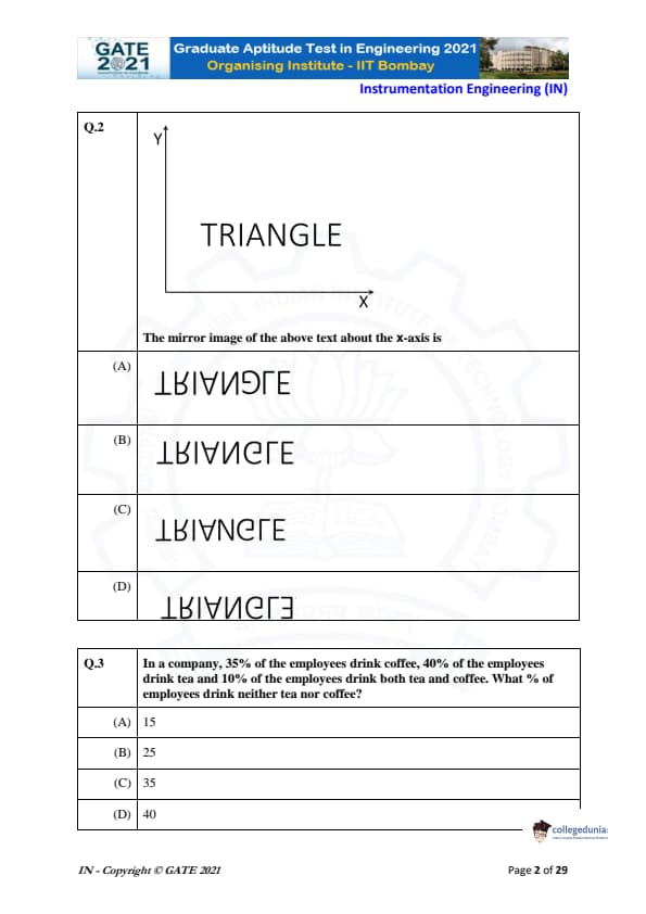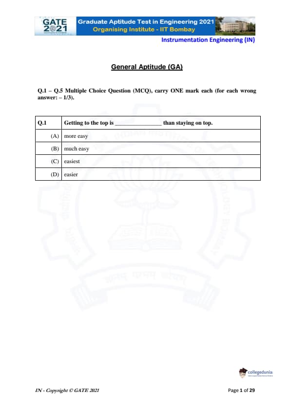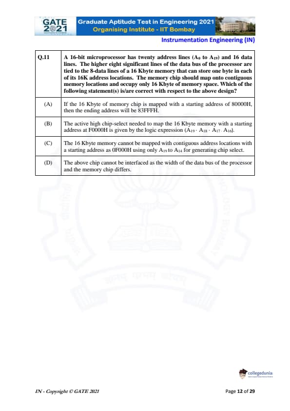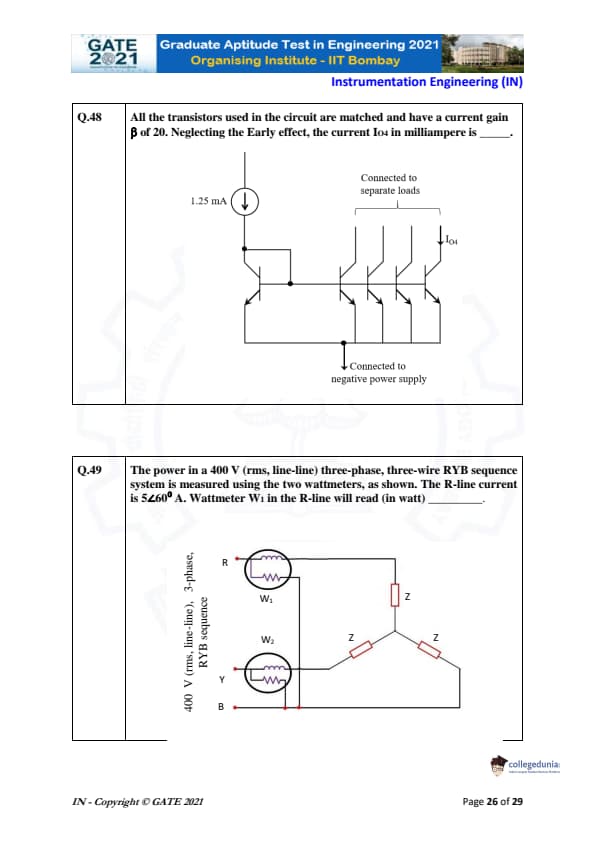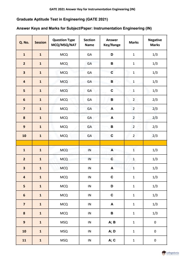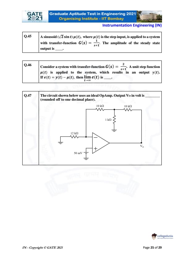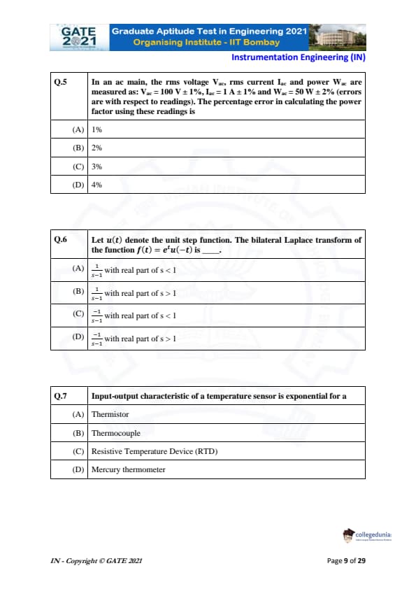 | GATE 2021 Instrumentation Engineering (IN) Question Paper | Check Solutions |