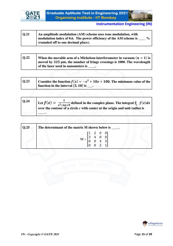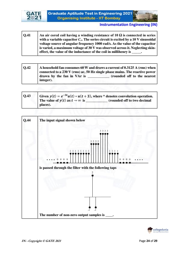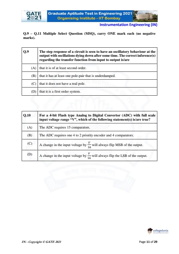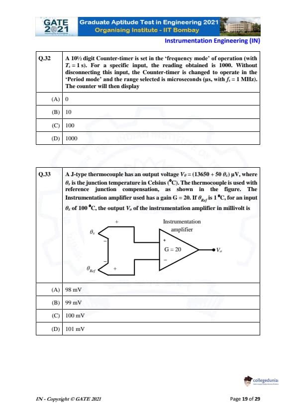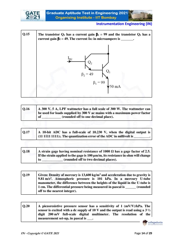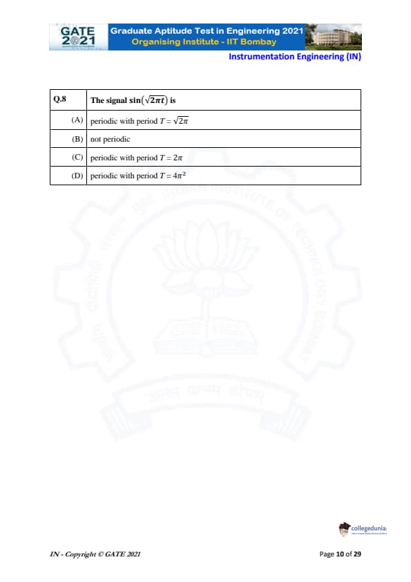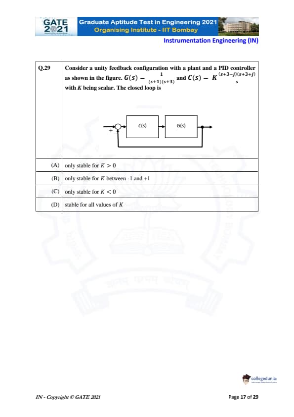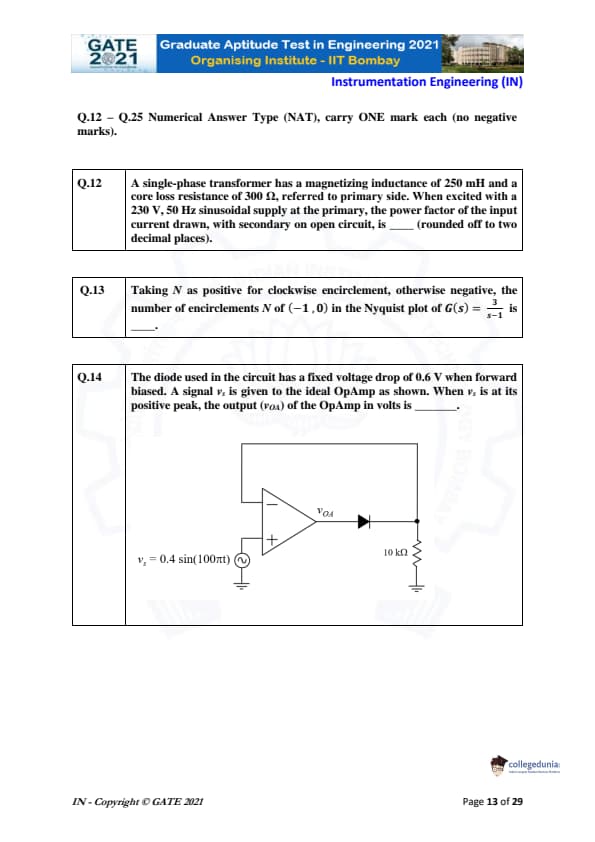 GATE 2021 Instrumentation Engineering (IN) Question Paper with Solutions