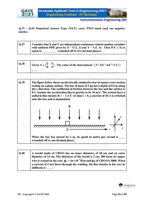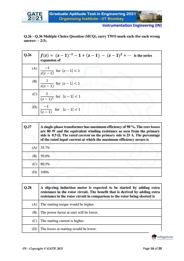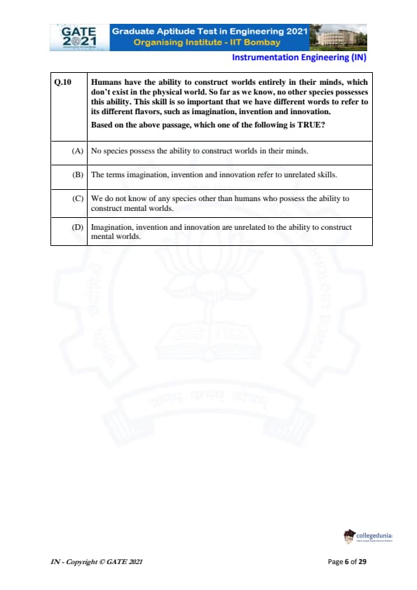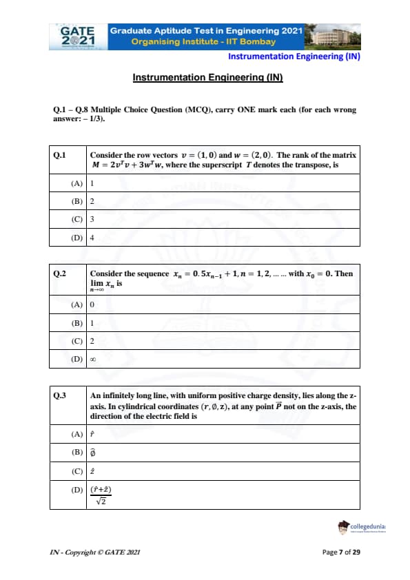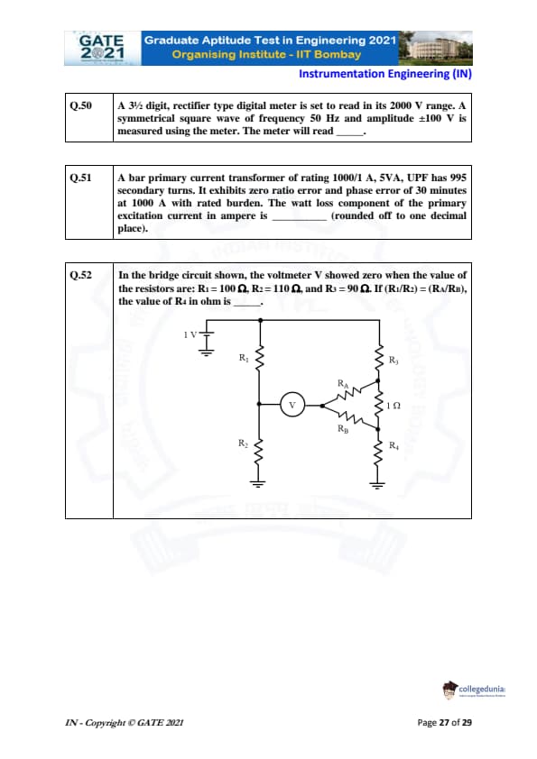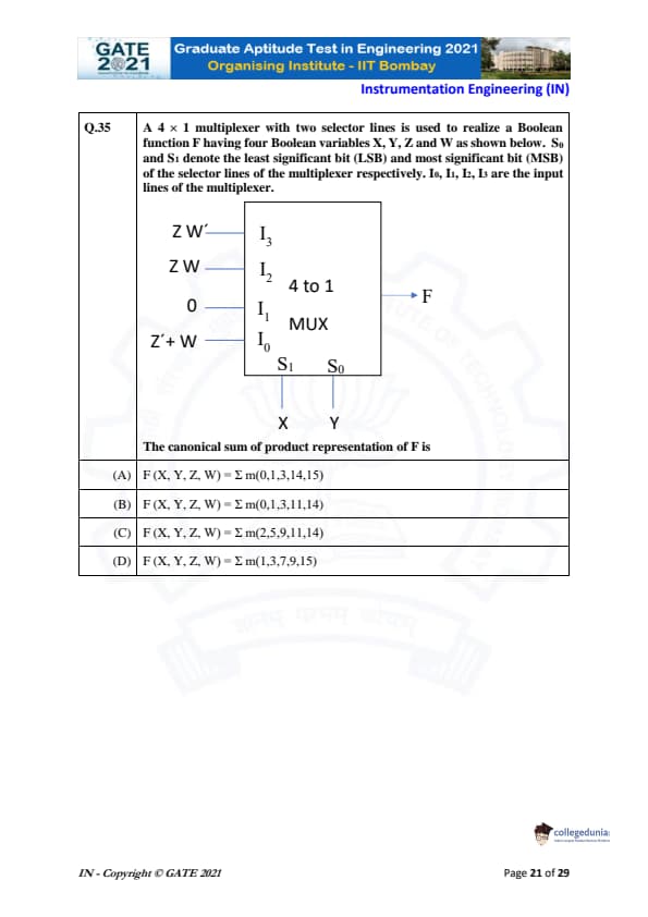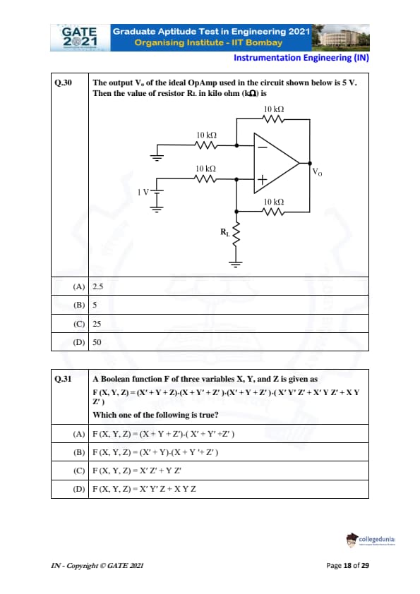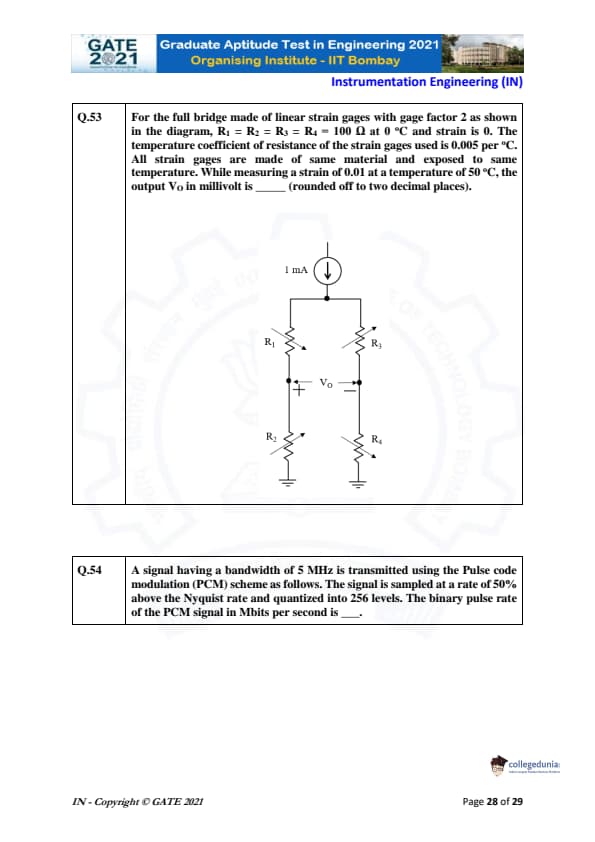 GATE 2021 Instrumentation Engineering (IN) Question Paper with Solutions