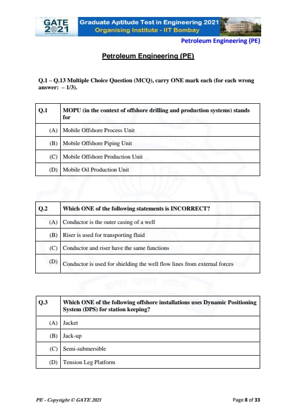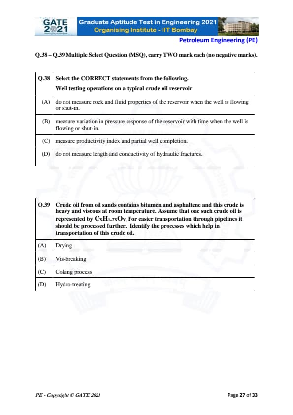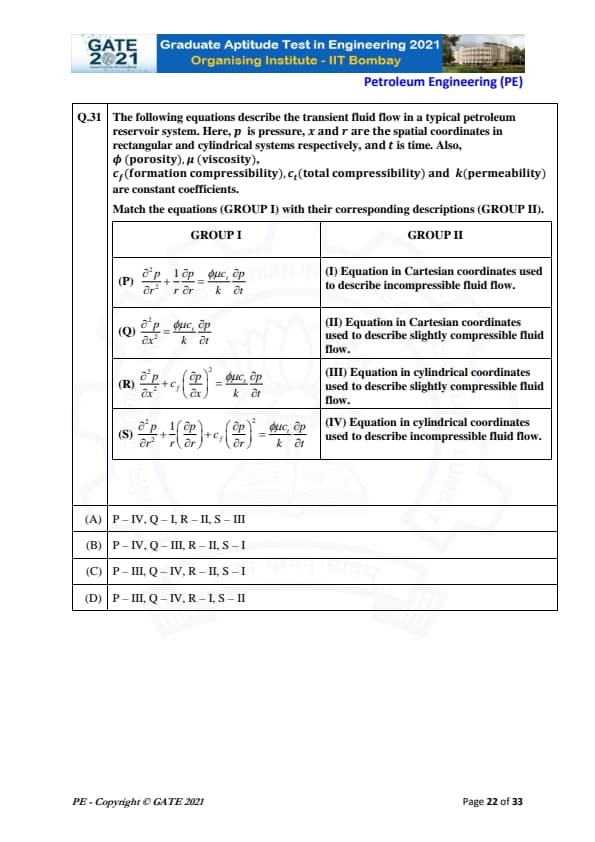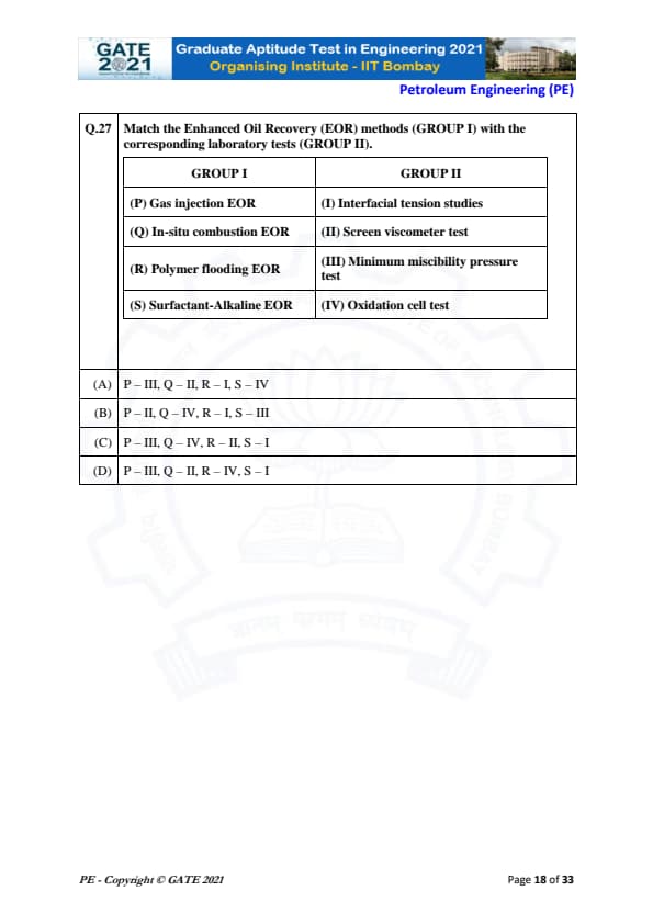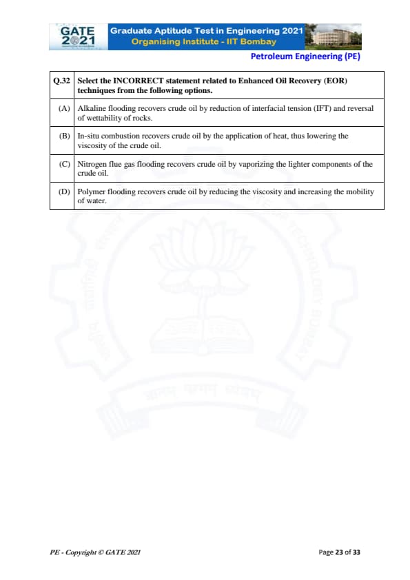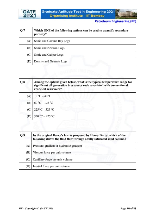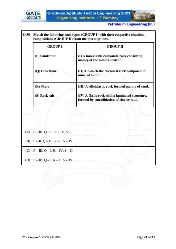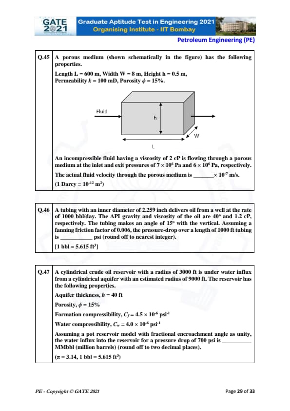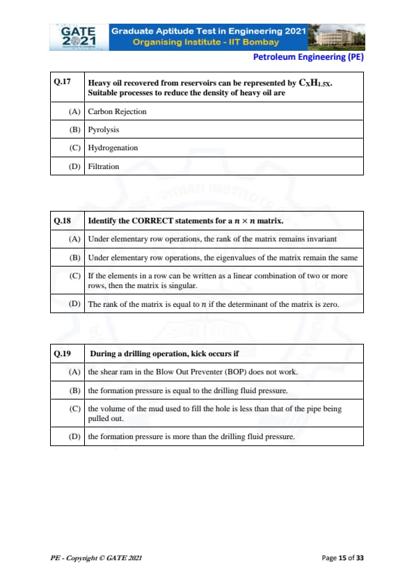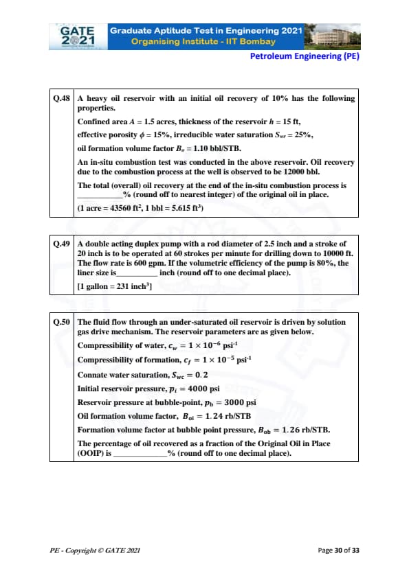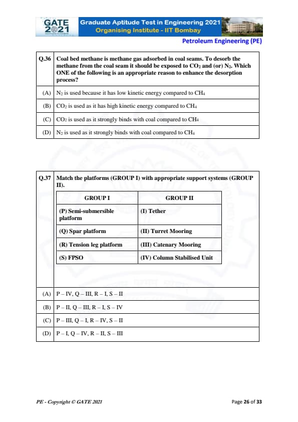 | GATE 2021 Petroleum Engineering (PE) Question Paper | Check Solutions |