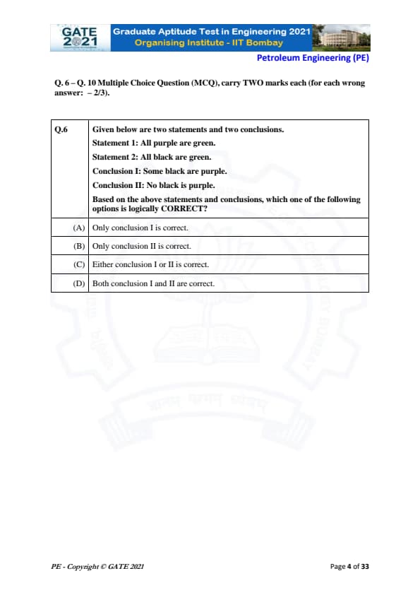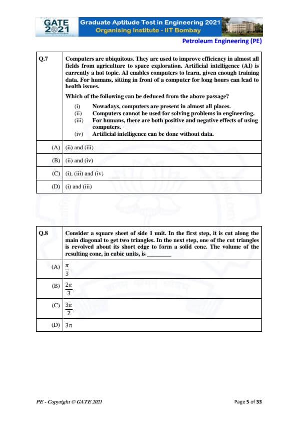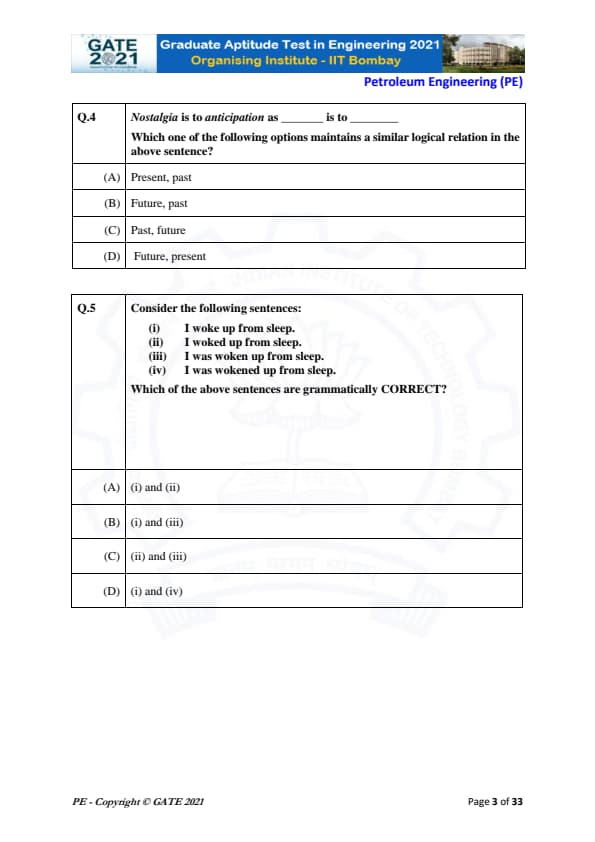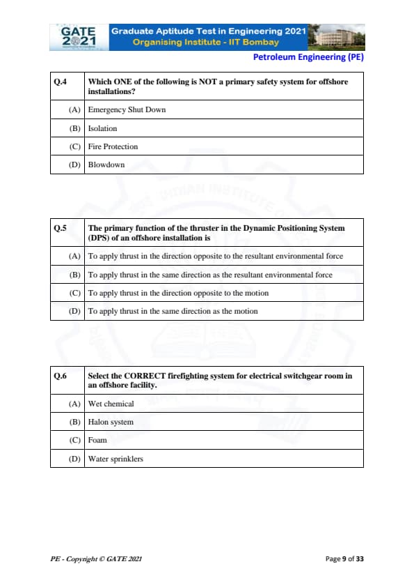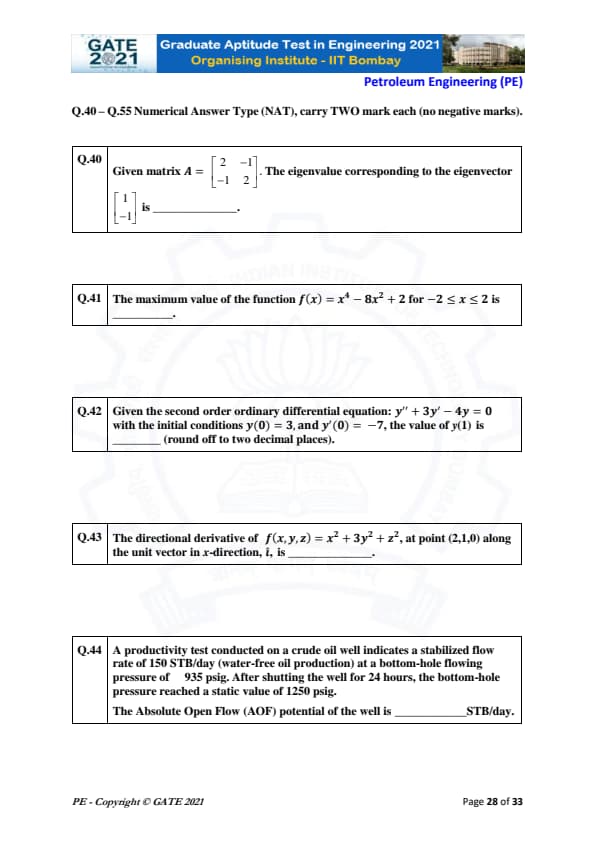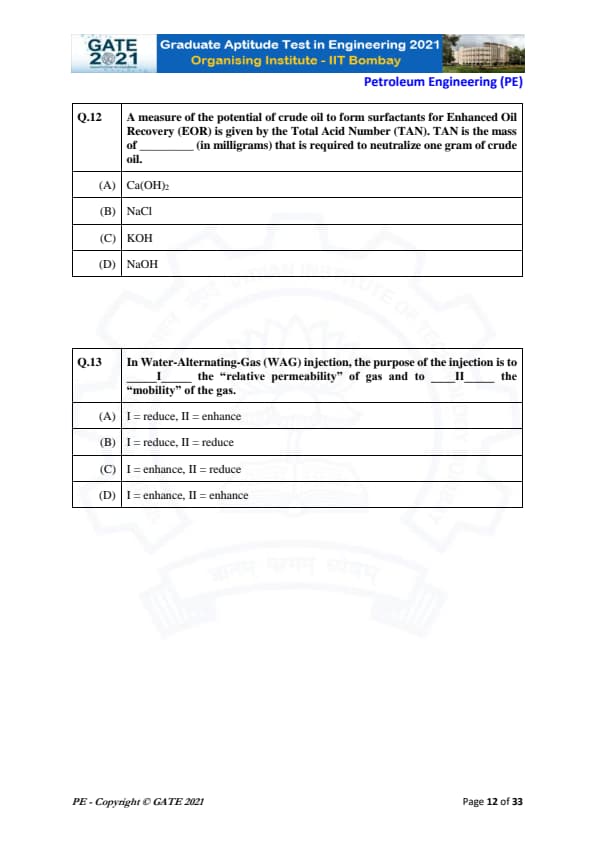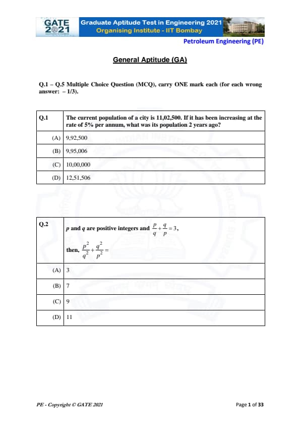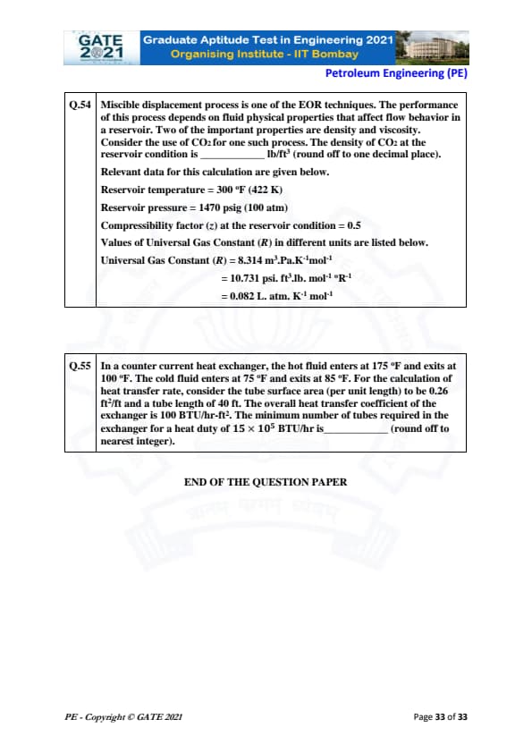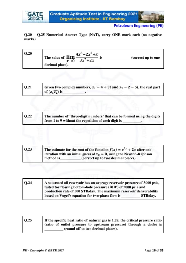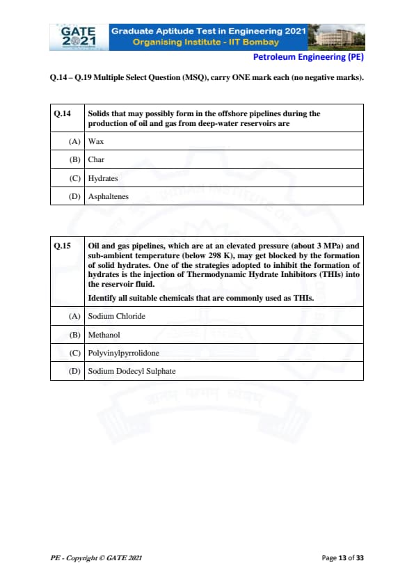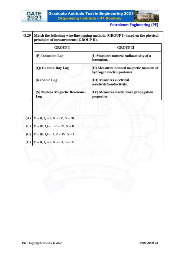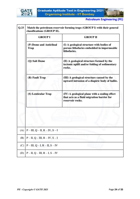 | GATE 2021 Petroleum Engineering (PE) Question Paper | Check Solutions |