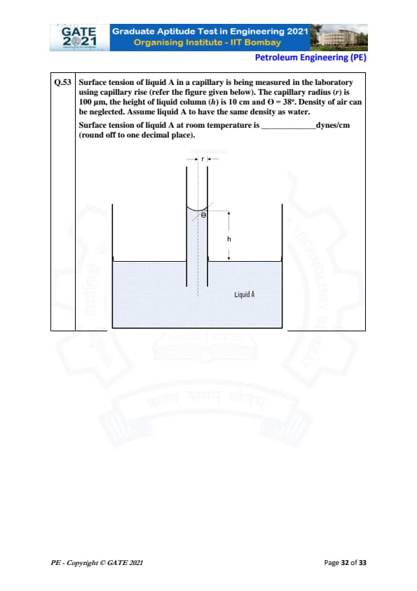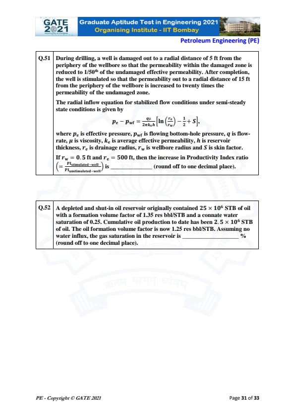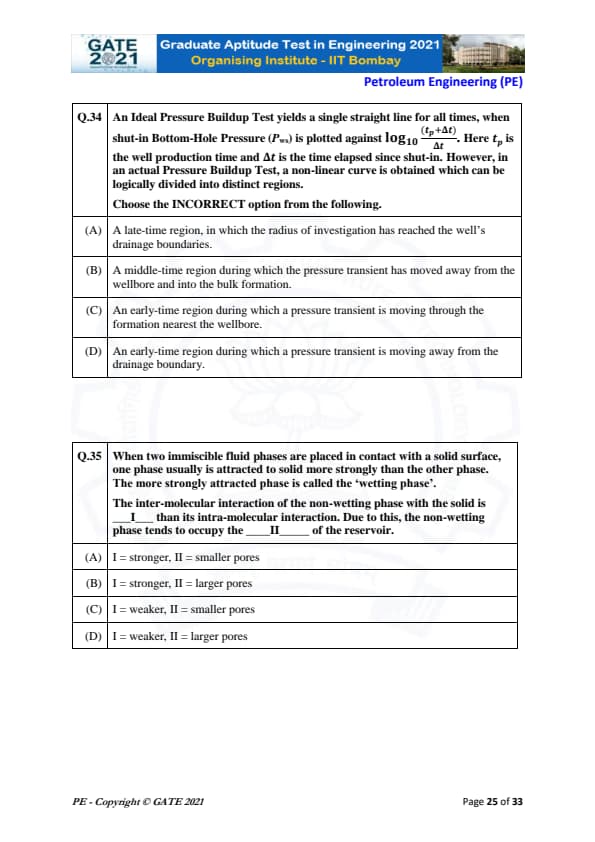 GATE 2021 Petroleum Engineering (PE) Question Paper with Solutions