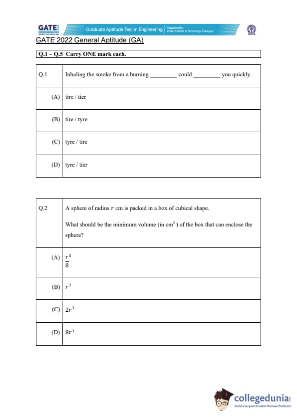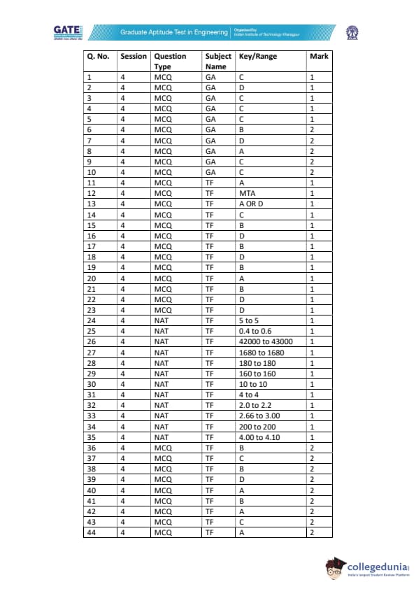 - GATE 2022 TF asked both MCQs and NATs. It was held online via CBT mode