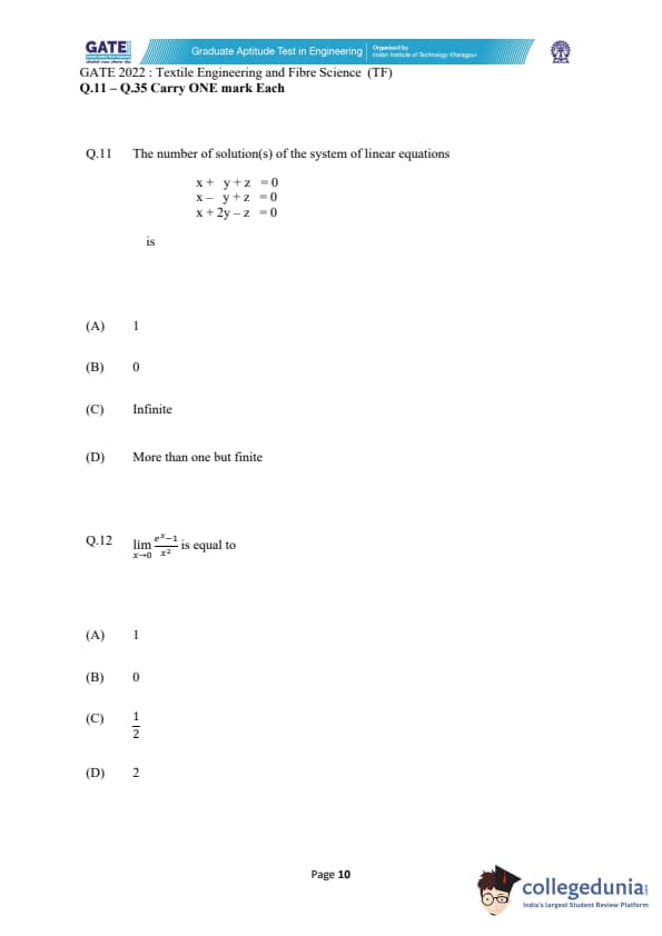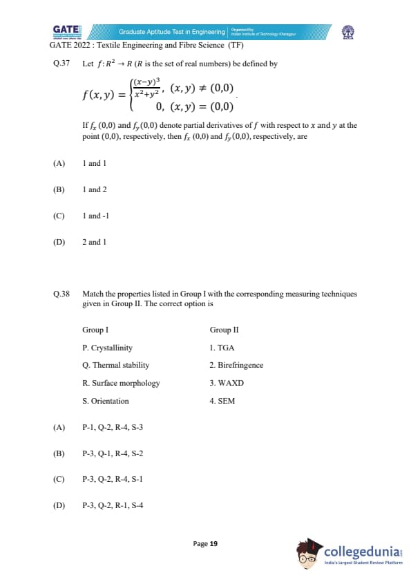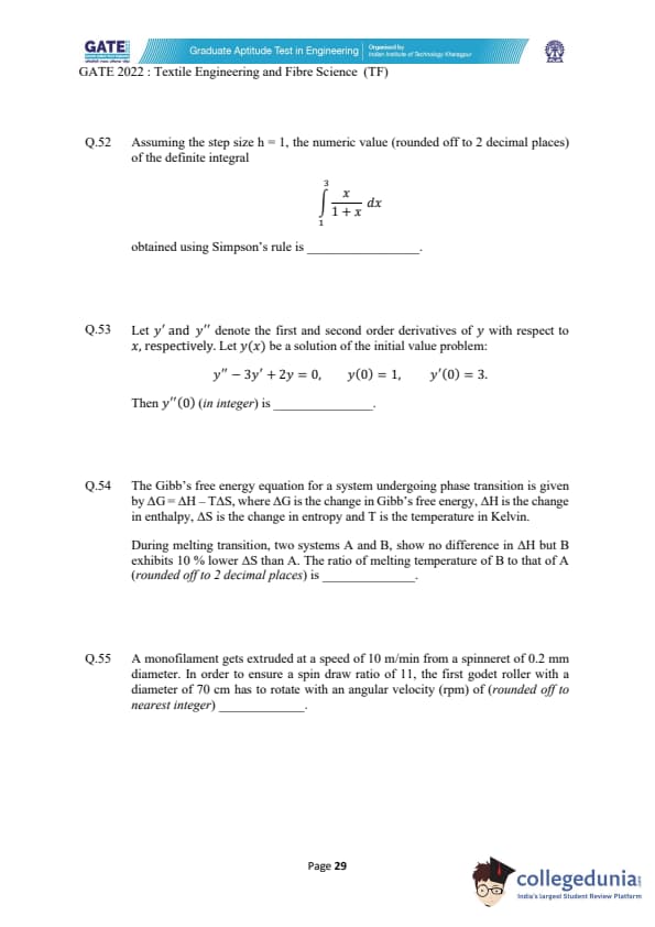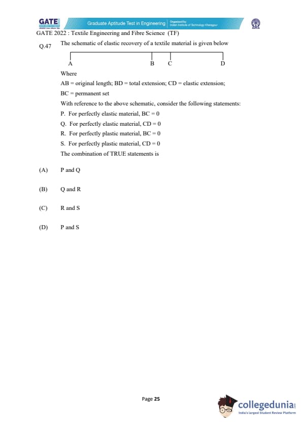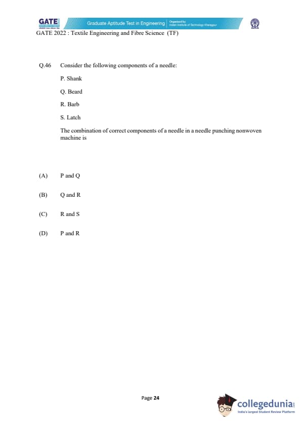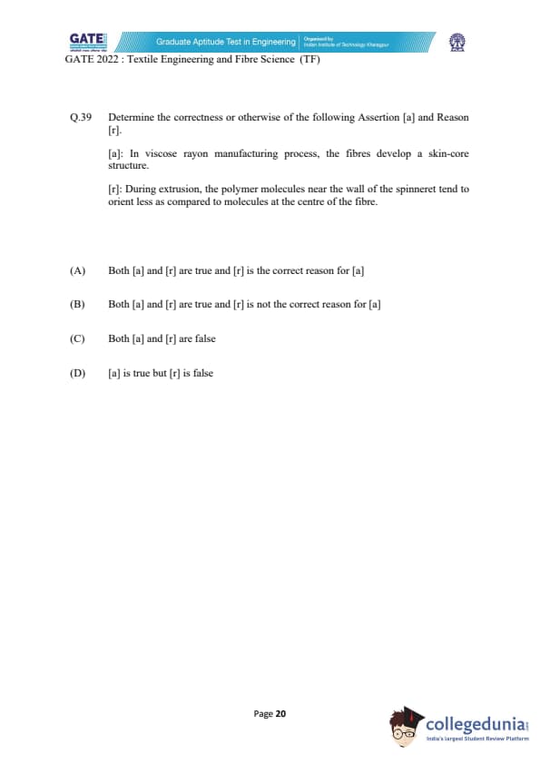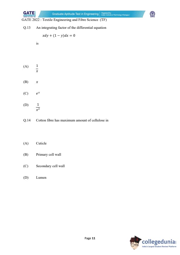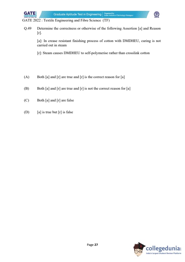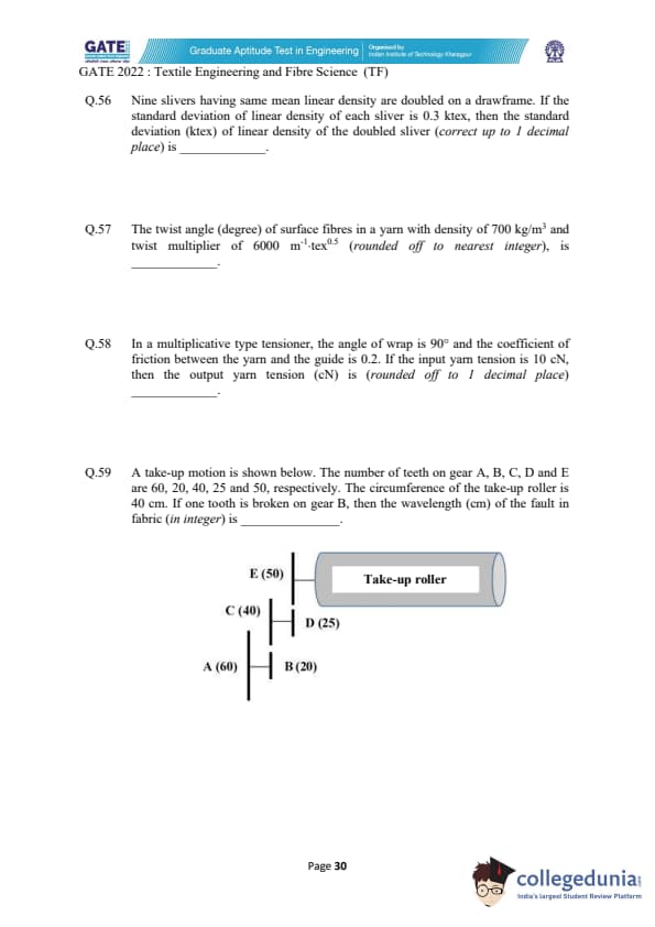 | GATE 2022 Textile Engineering and Fibre Science (TF) Question Paper | Check Solutions |