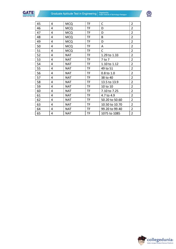 There were no revisions or modifications in the overall exam pattern. IIT Kharagpur listed MCQs (Multiple Choice Questions) and NATs (Numerical Answer Type) questions in the exam. Follow the below-mentioned table, describing the details of questions appeared in GATE 2022 TF as per the carried marks-