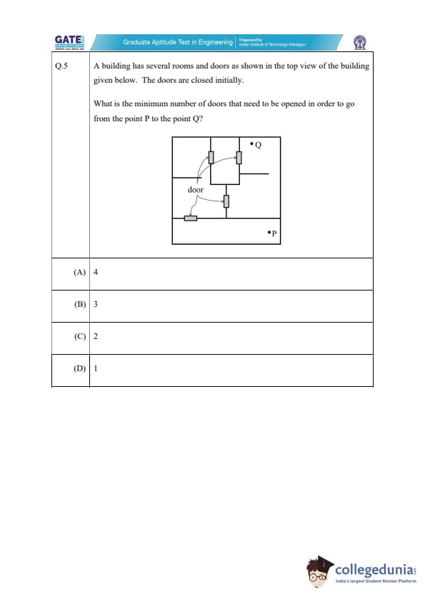 A building has several rooms and doors as shown in the top view of the building given below. The doors are closed initially.