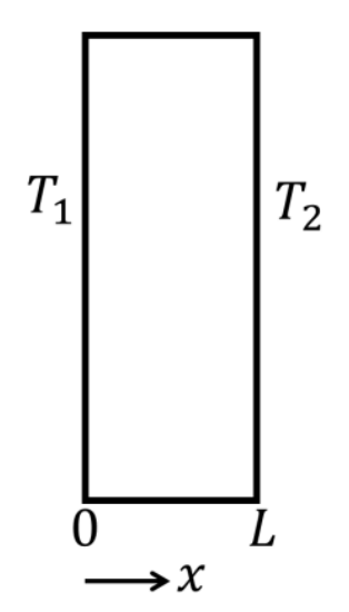 A slab of thickness \(L\), as shown in the figure, has cross-sectional area \(A\) and constant thermal conductivity \(k\). \(T_1\) and \(T_2\) are the temperatures at \(x=0\) and \(x=L\), respectively. Which one of the following options is the CORRECT expression of the thermal resistance for steady-state one-dimensional heat conduction?
