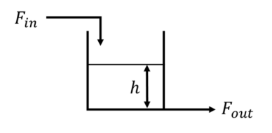 A liquid surge tank has \(F_{in}\) and \(F_{out}\) as the inlet and outlet flow rates respectively, as shown in the figure. \(F_{out}\) is proportional to the square root of the liquid level \(h\). The cross-sectional area of the tank is \(20~cm^2\). Density of the liquid is constant everywhere in the system. At steady state, \(F_{in}=F_{out}=10~cm^3s^{-1}\) and \(h=16~cm\). The variation of \(h\) with \(F_{in}\) is approximated as a first-order transfer function. Which one of the following is the CORRECT value of the time constant (in seconds) of this system?