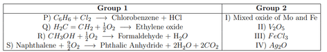 Q) Partial oxidation of ethylene to ethylene oxide is industrially carried out on silver catalysts; represented here as \(\mathrm{Ag_2O}\). Hence \(Q\rightarrow IV\).