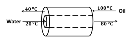 A perfectly insulated, concentric tube countercurrent heat exchanger is used to cool lubricating oil using water as a coolant. Oil enters the outer annulus at a mass flow rate of \(2\ \mathrm{kg\,s^{-1}}\) with a temperature of \(100^{\circ}\mathrm{C}\) and leaves at \(40^{\circ}\mathrm{C}\). Water enters the inner tube at \(1\ \mathrm{kg\,s^{-1}}\) with a temperature of \(20^{\circ}\mathrm{C}\) and leaves at \(80^{\circ}\mathrm{C}\). Specific heats: \(c_{p,oil}=2089\ \mathrm{J\,kg^{-1}K^{-1}}\), \(c_{p,water}=4178\ \mathrm{J\,kg^{-1}K^{-1}}\). No phase change. Under steady state, the number of transfer units (NTU) is ____ (in integer).