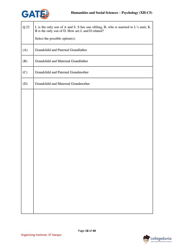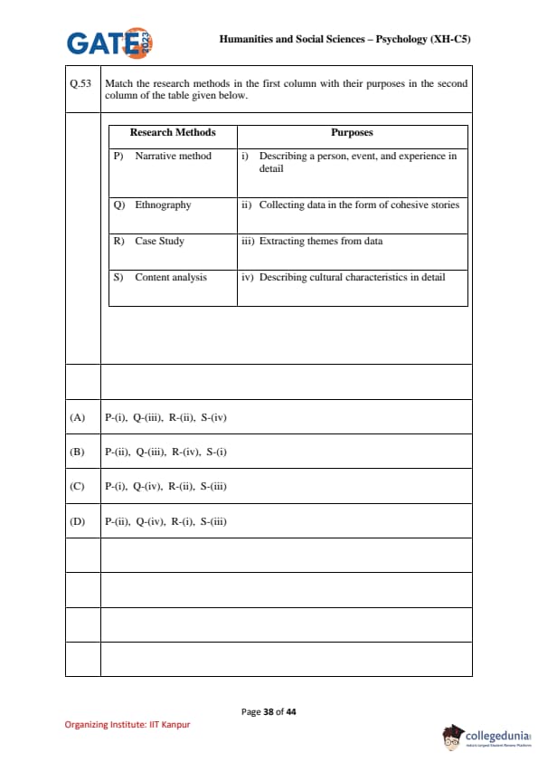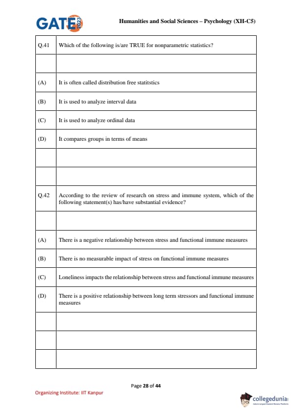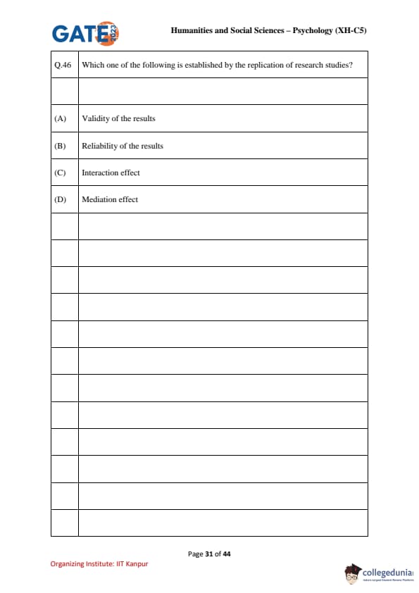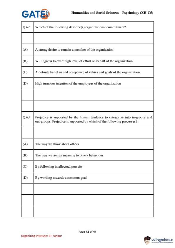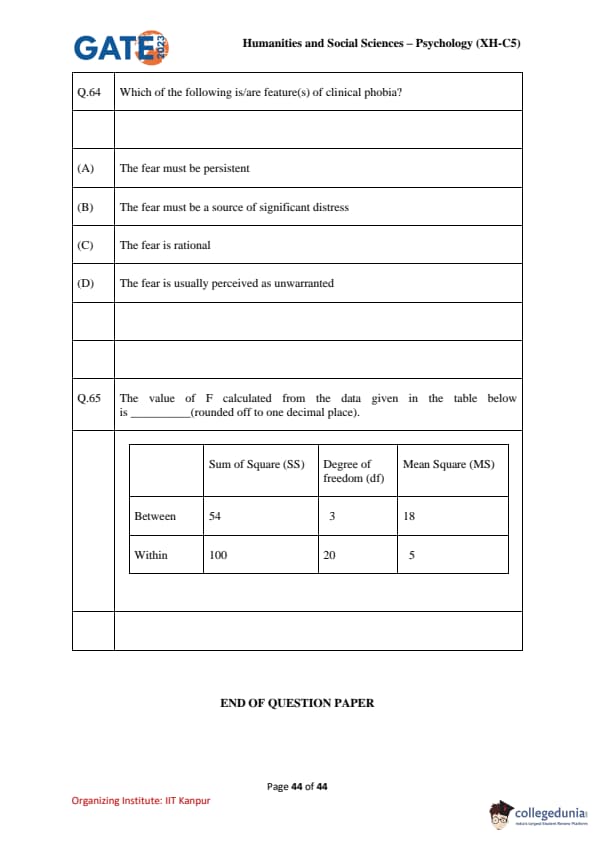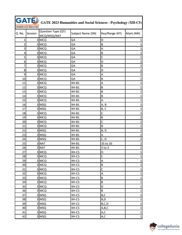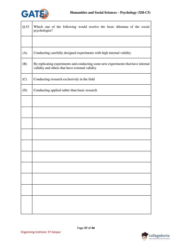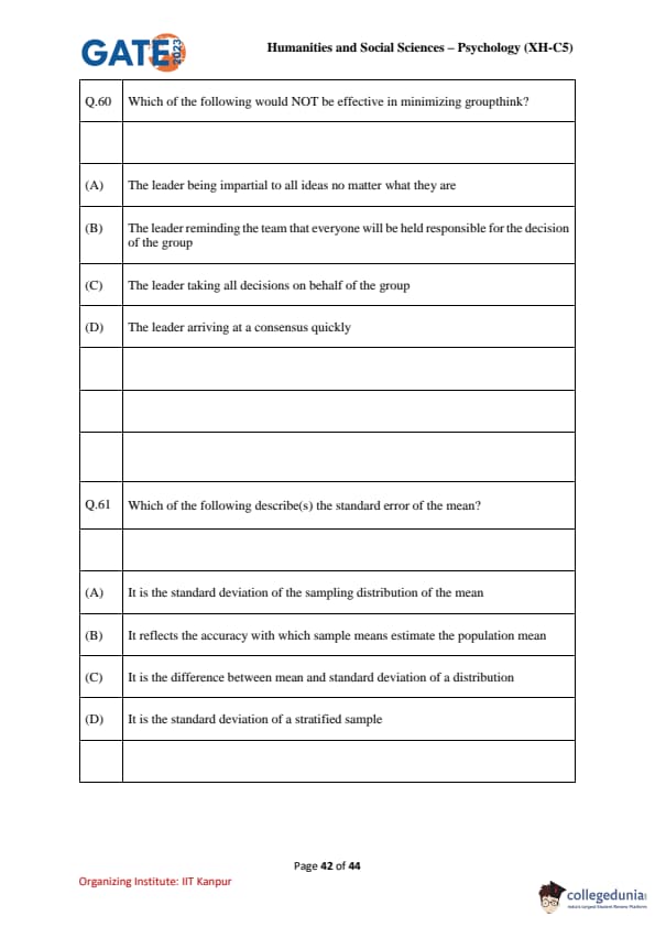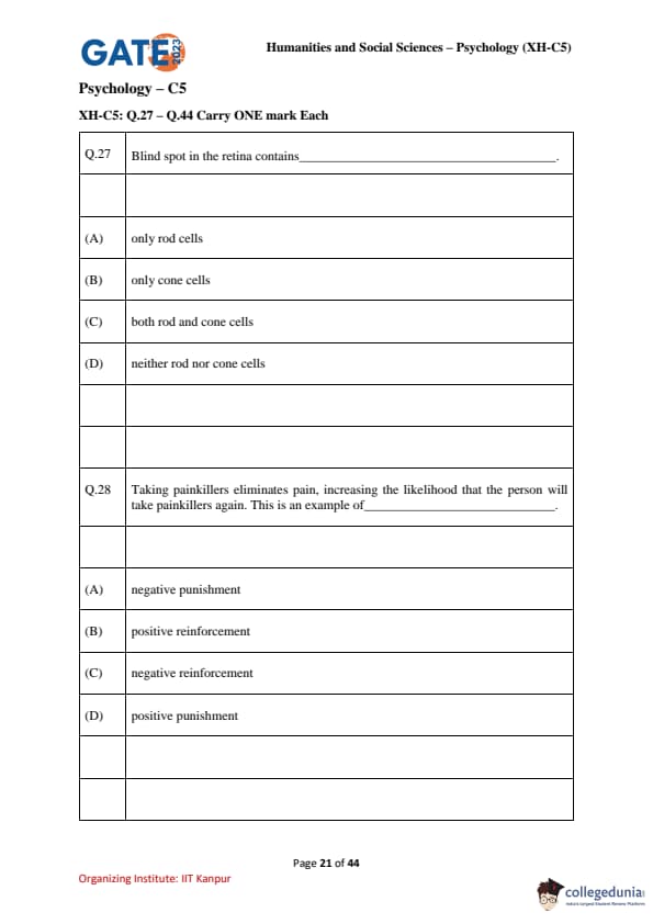 | GATE 2023 Humanities & Social Sciences Psychology Question Paper with Solutions | Check Solutions |