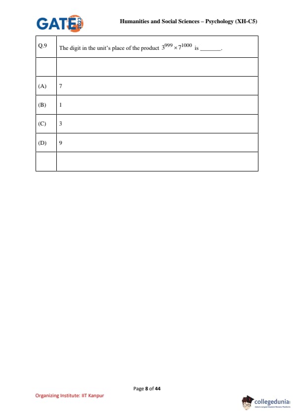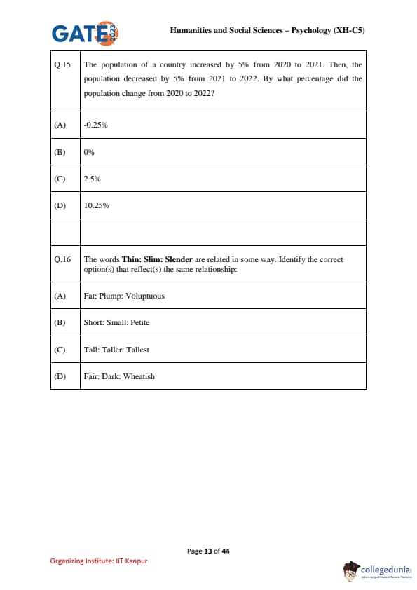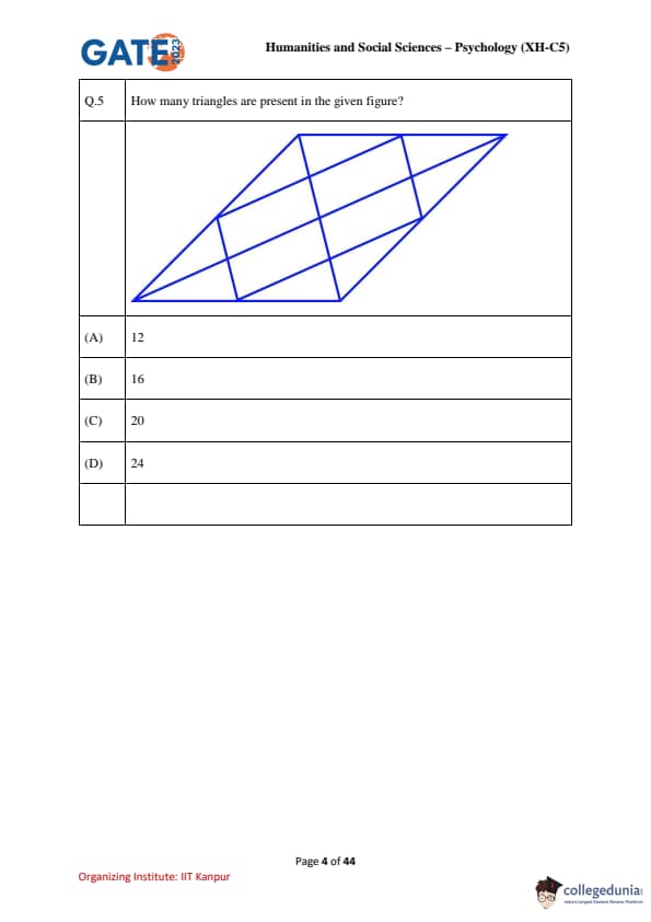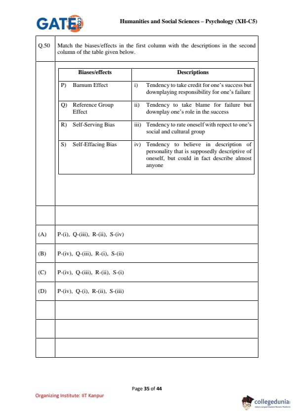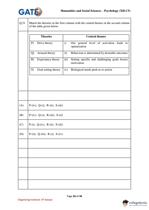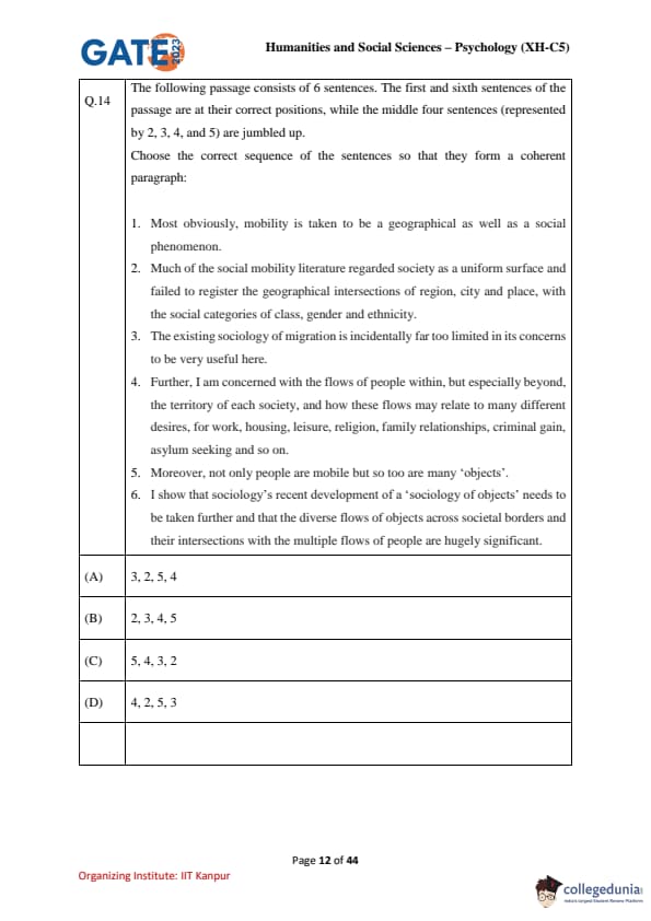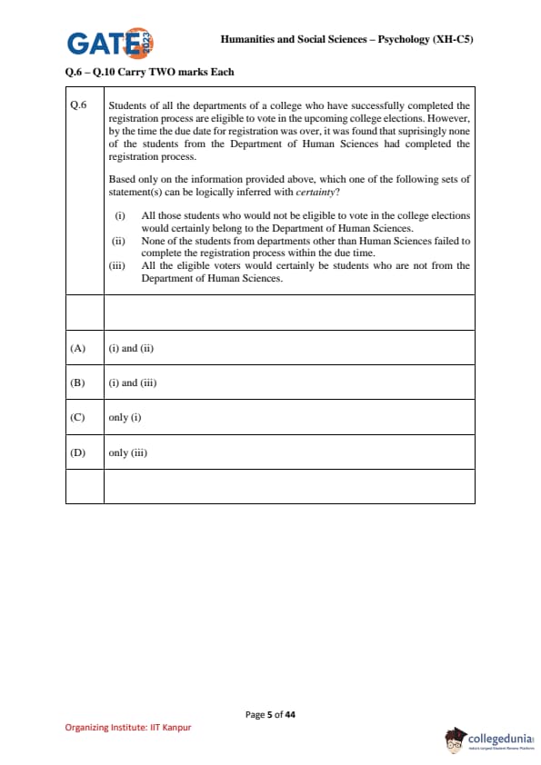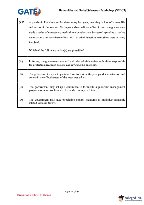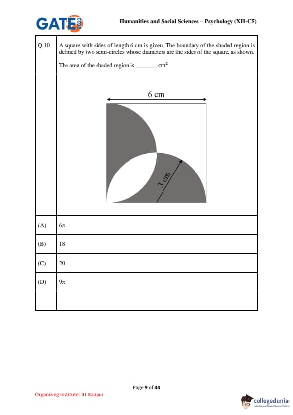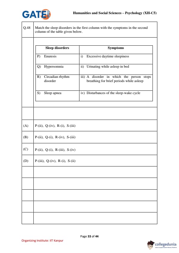| GATE 2023 Humanities & Social Sciences Psychology Question Paper with Solutions | Check Solutions |