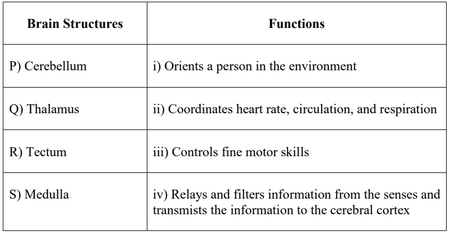 Match the structures of the brain in the first column with their respective functions in the second column.