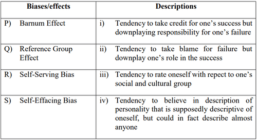 Match the biases/effects in the first column with the descriptions in the second column of the table given below.