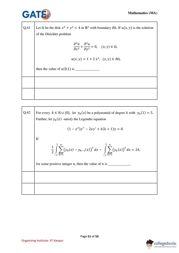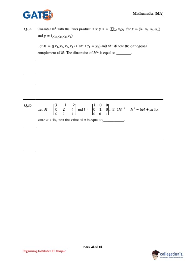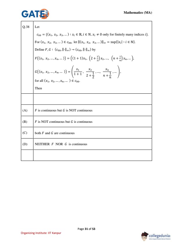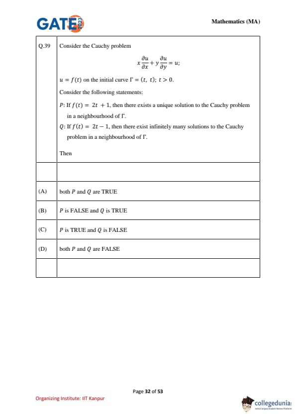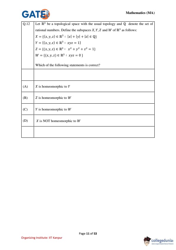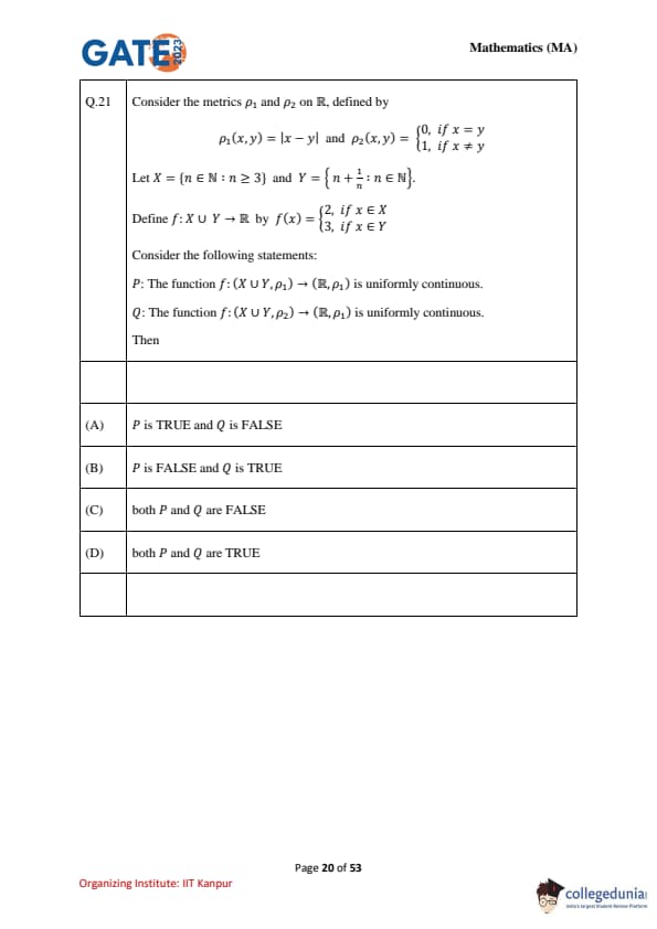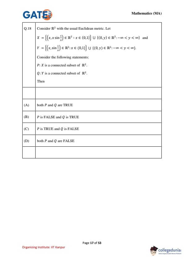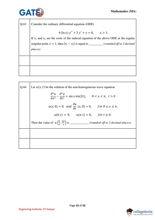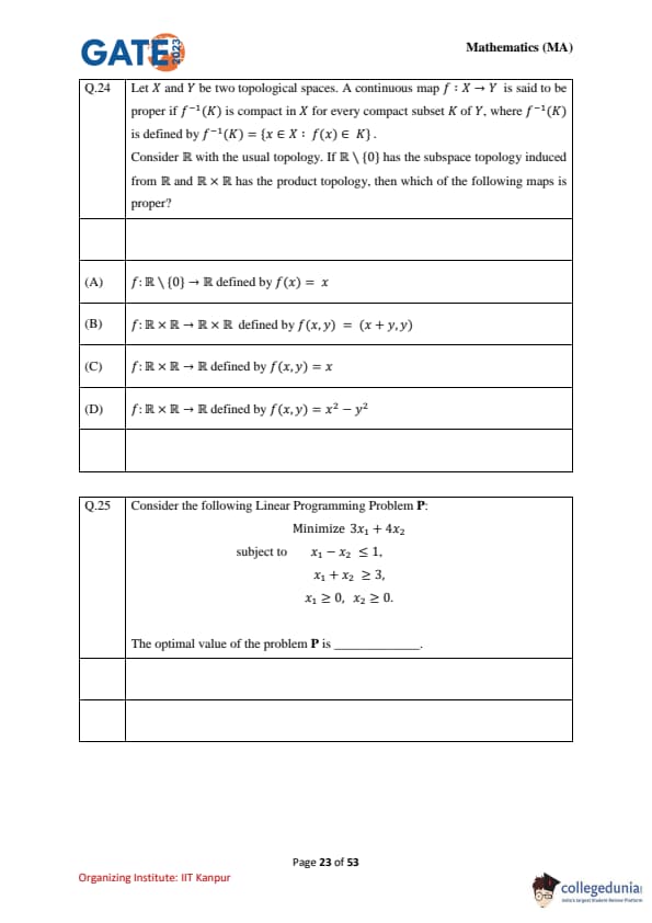 | GATE 2023 Mathematics (MA) Question Paper with Solutions | Check Solutions |