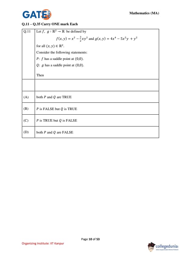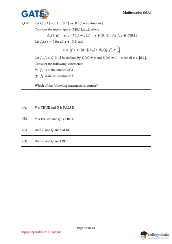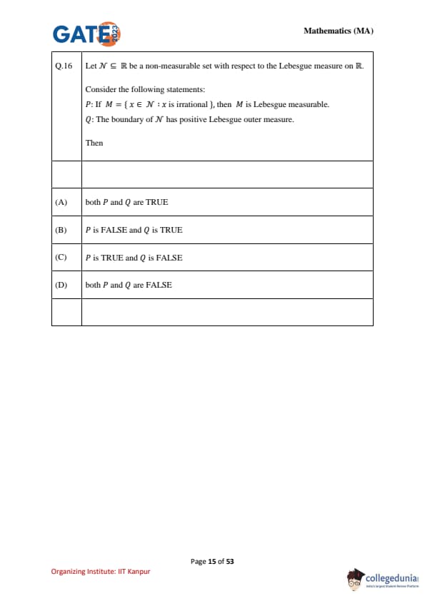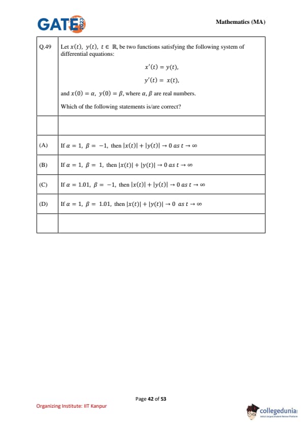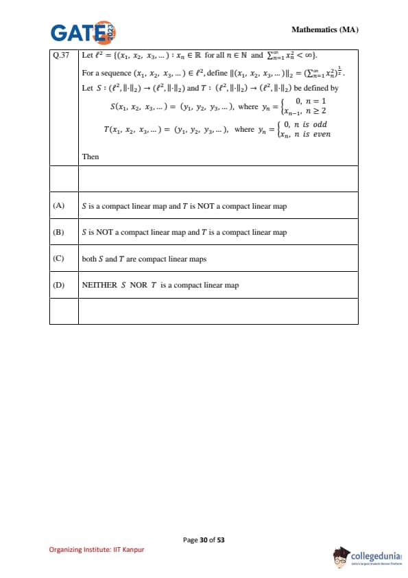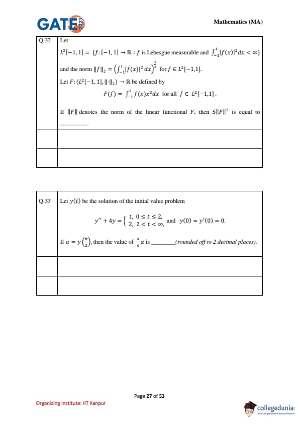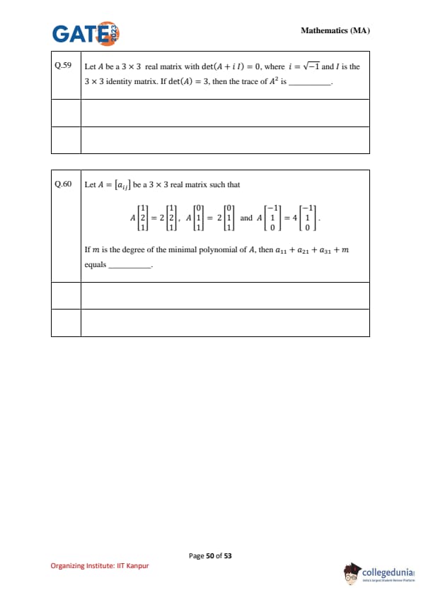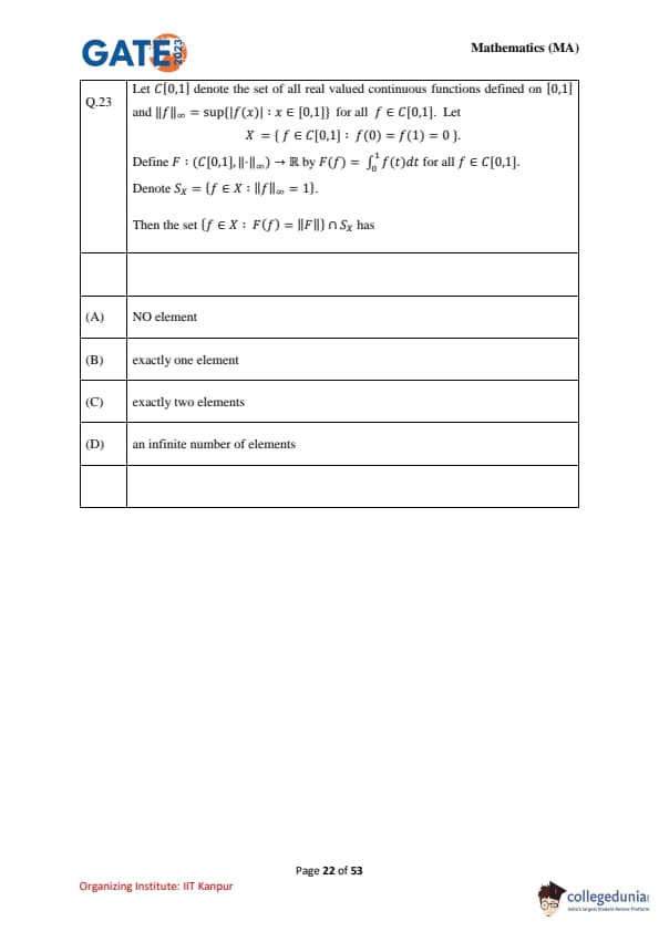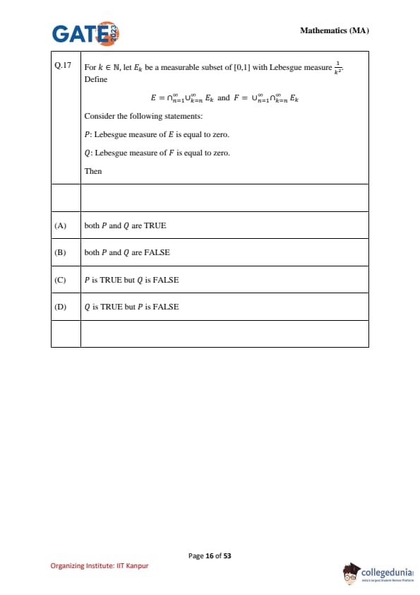 | GATE 2023 Mathematics (MA) Question Paper with Solutions | Check Solutions |
