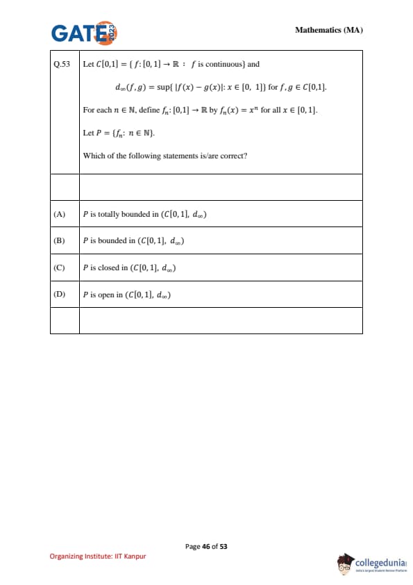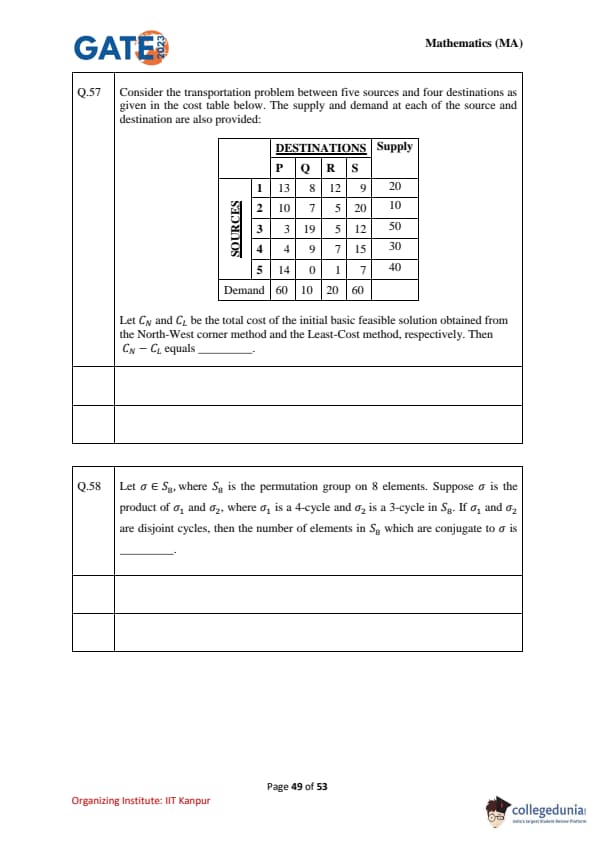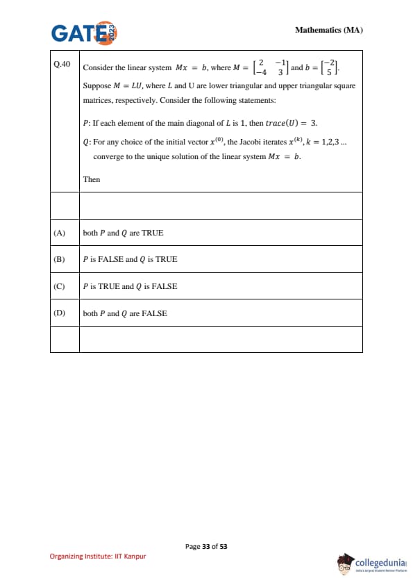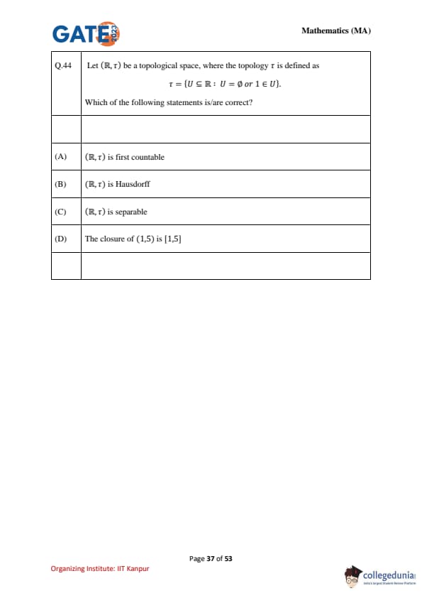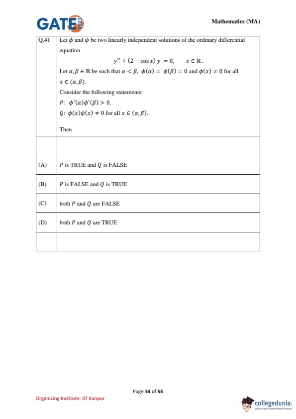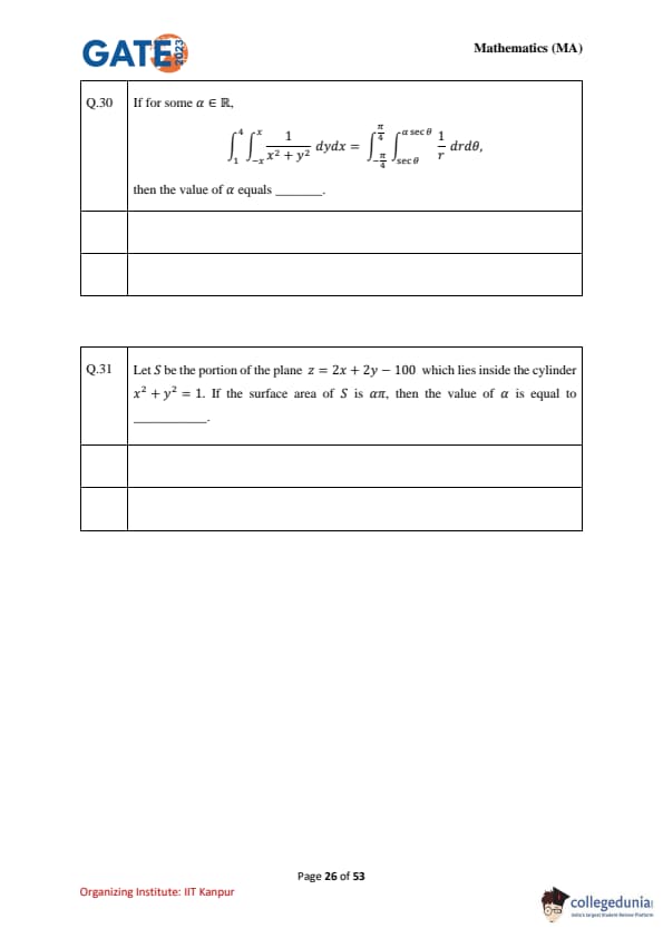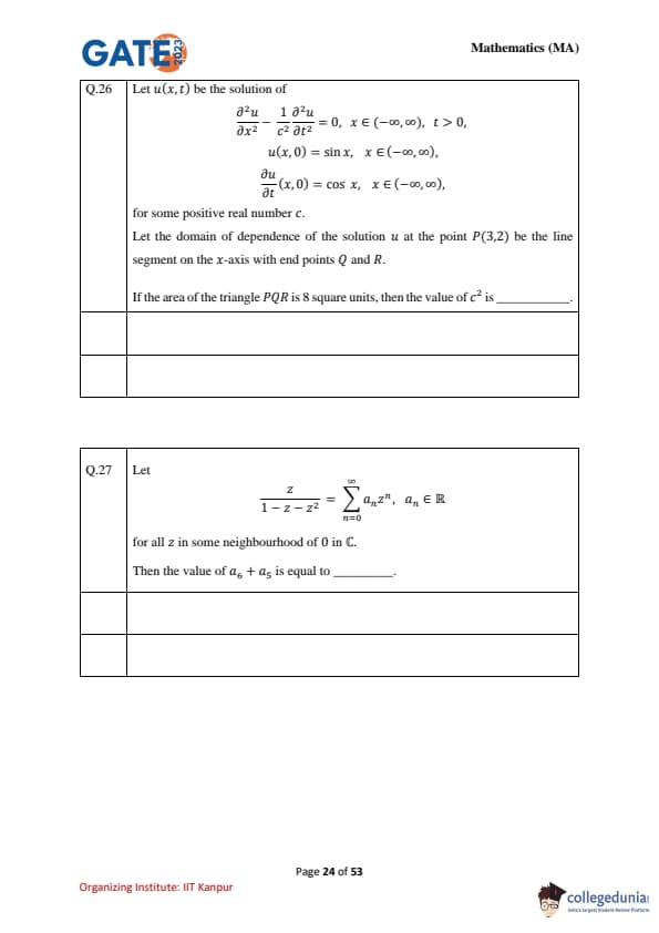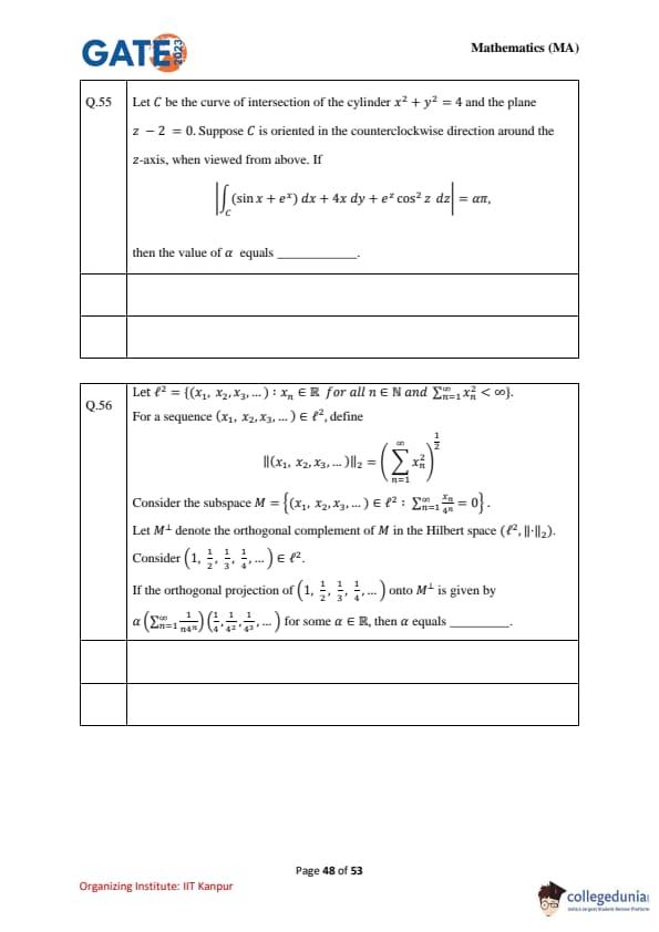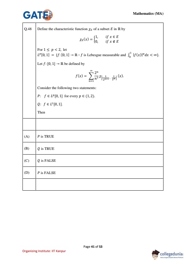 | GATE 2023 Mathematics (MA) Question Paper with Solutions | Check Solutions |