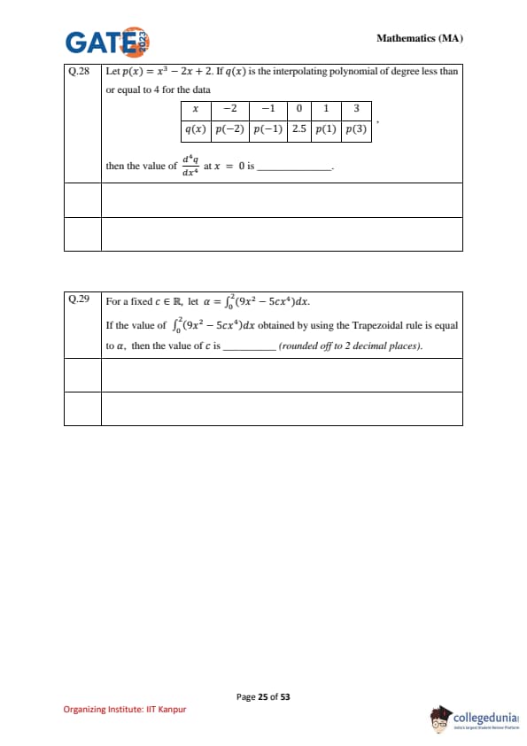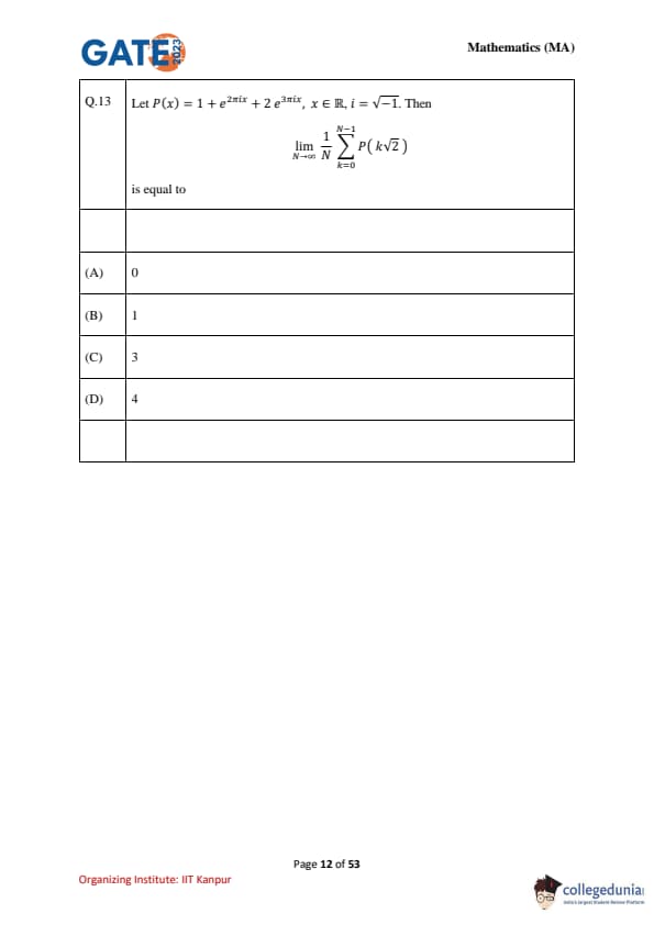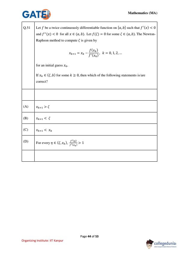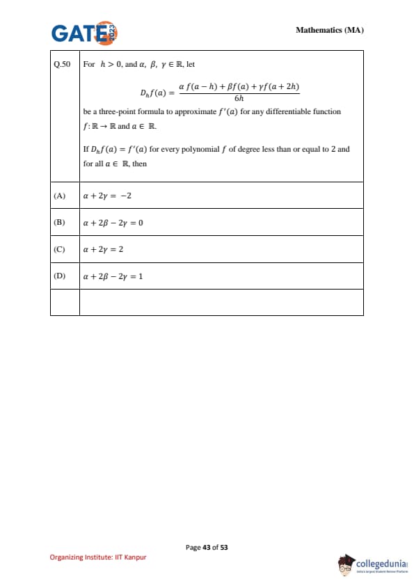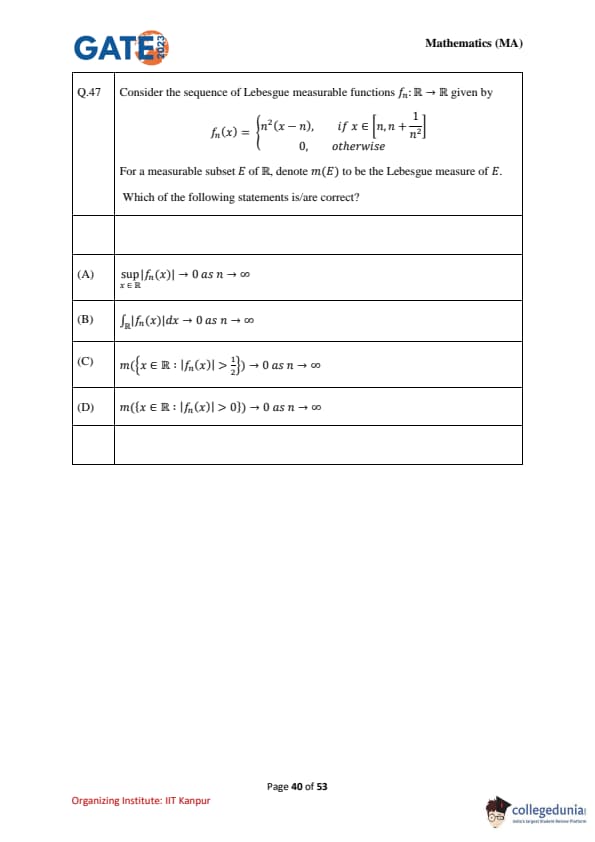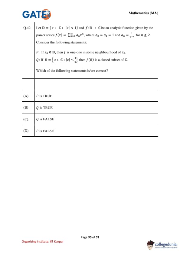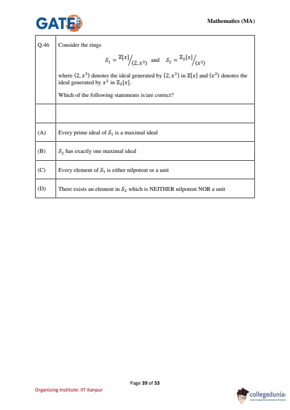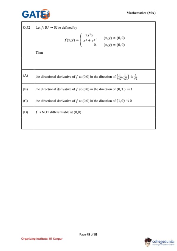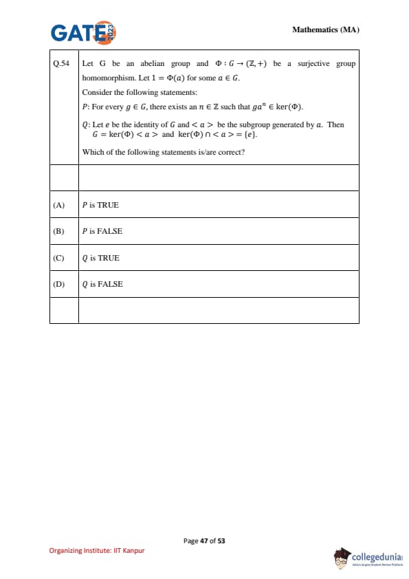 | GATE 2023 Mathematics (MA) Question Paper with Solutions | Check Solutions |