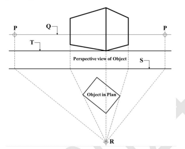 The reference points, lines, and planes for drawing a two-point perspective of an object are marked in the Figure below. Select the correct option(s) that match(es) with the corresponding nomenclature.