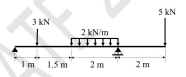 For the beam shown below, ignoring the self-weight, the maximum hogging moment (in \( kN-m \)) generated for the loads indicated is _______ (rounded off to one decimal place).