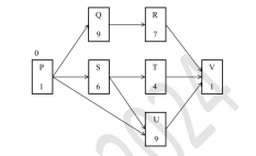 The network diagram of a construction project is shown in the following figure. The duration of each activity, in days, and the early start time of the project are denoted in the diagram. The total project duration along the critical path, in days, is _______ (in integer).
