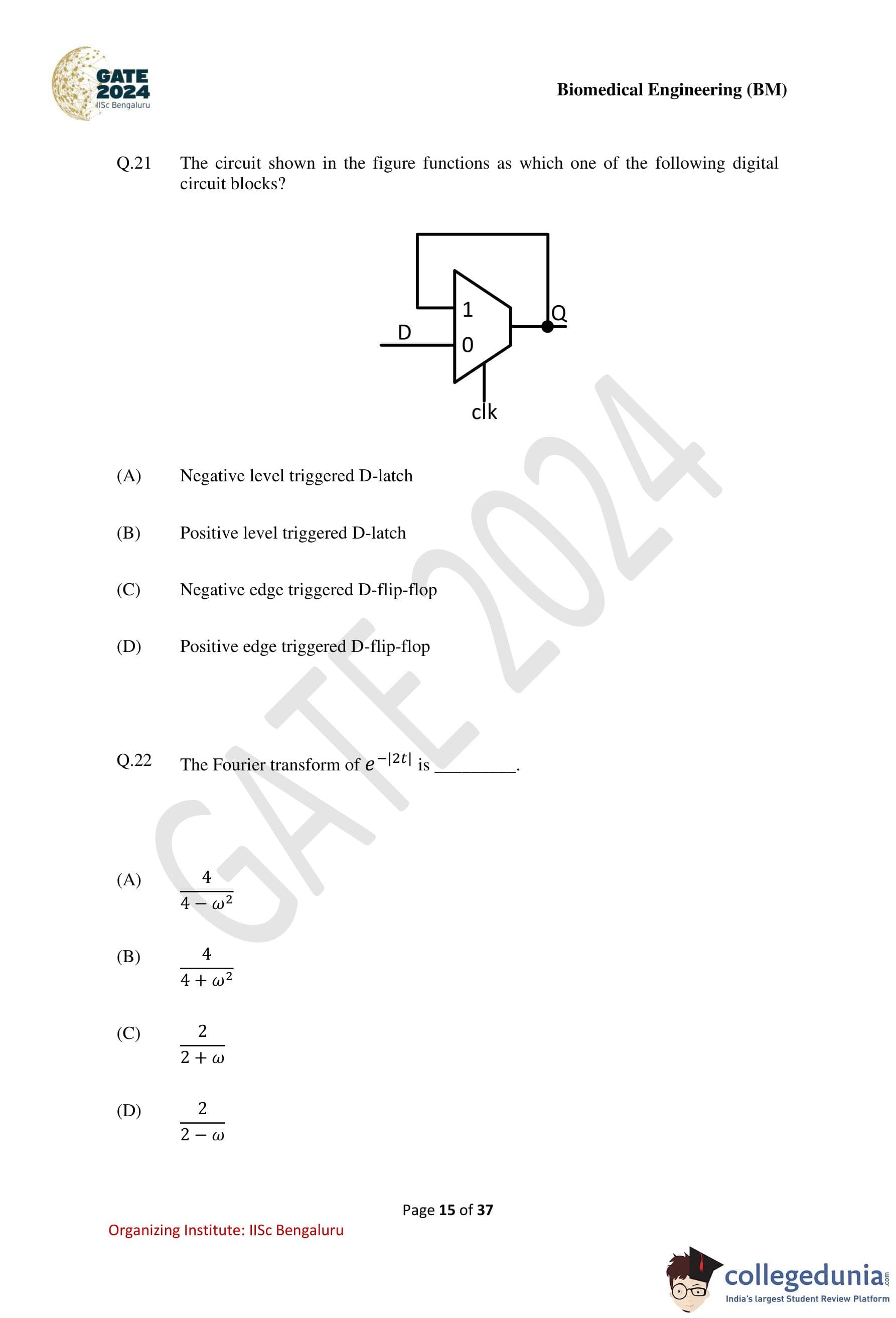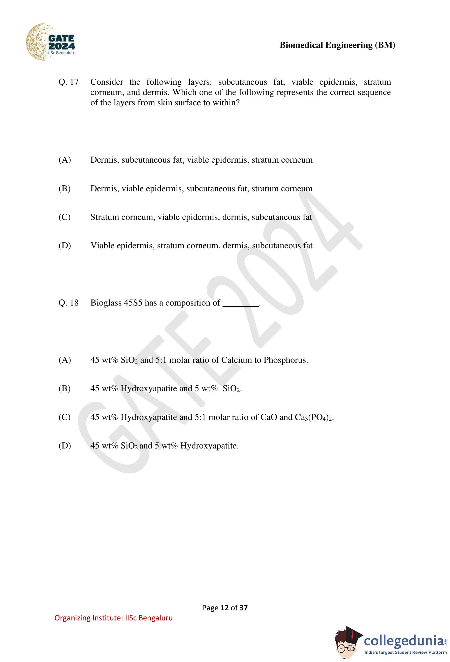 | GATE Biomedical Engineering Question Paper with Solution PDF | Download | Check Solutions |
