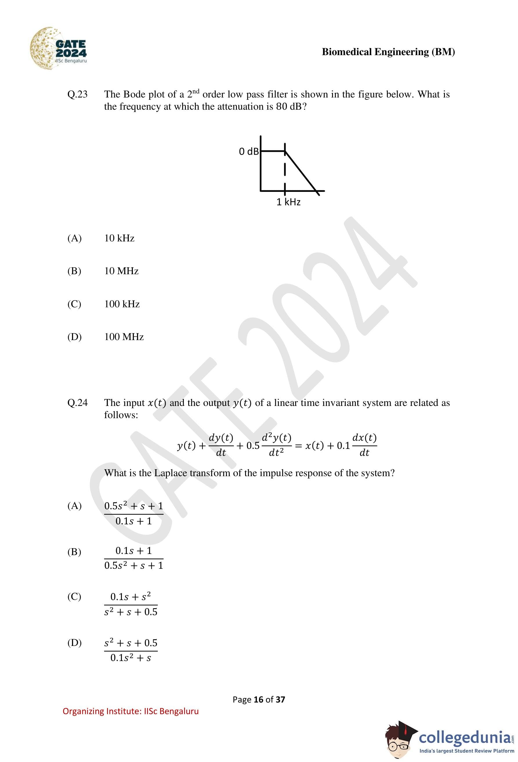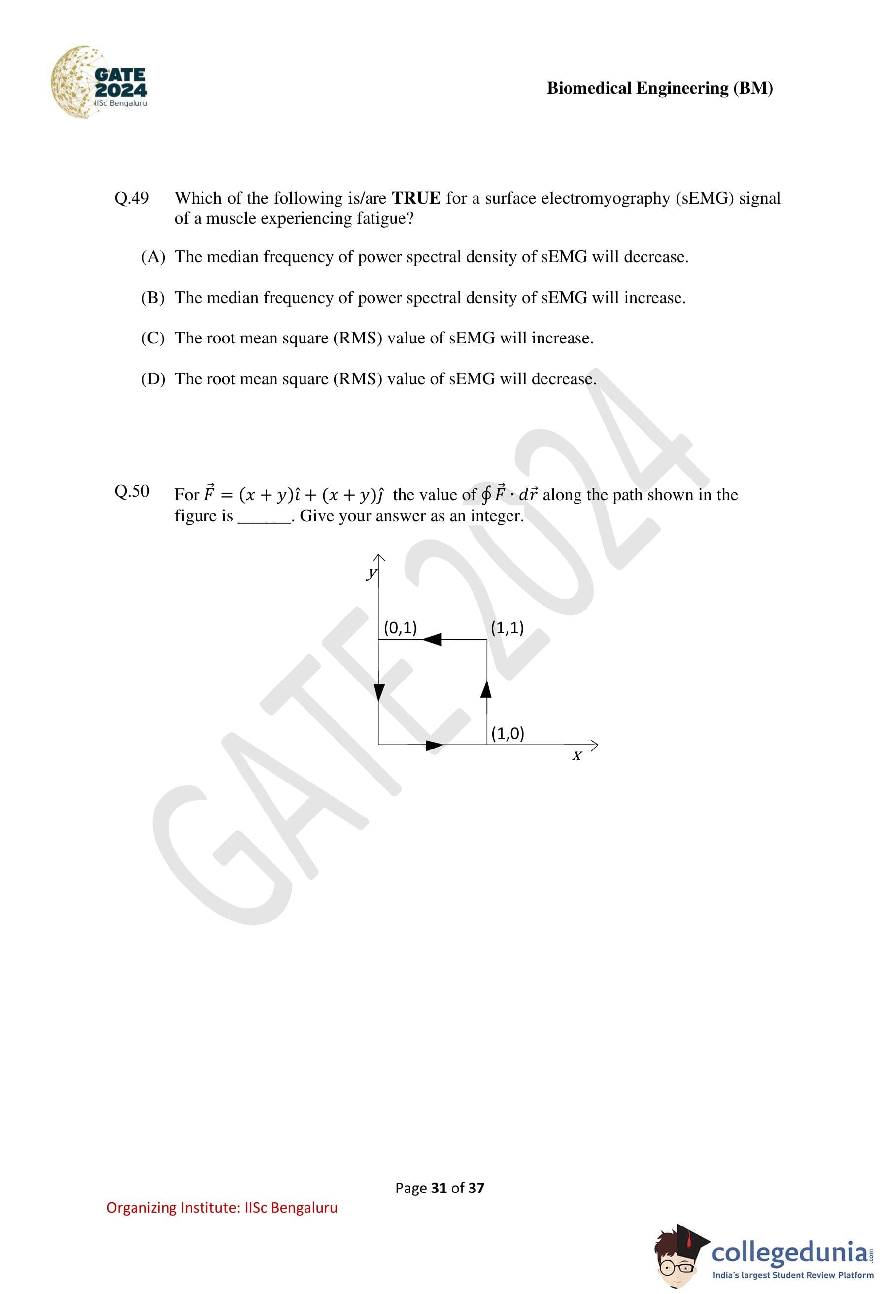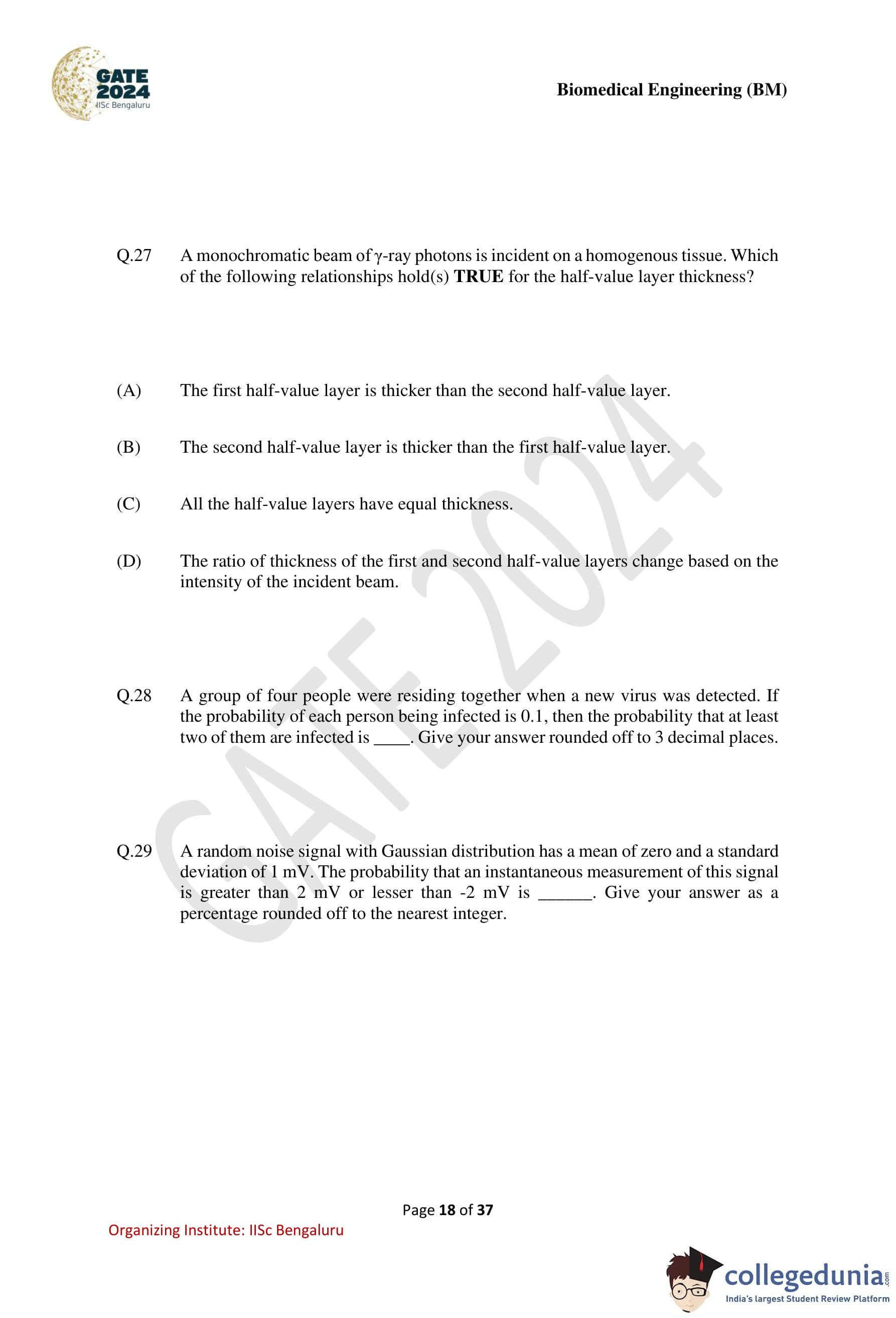 GATE Biomedical Engineering Question Paper with Solution PDF