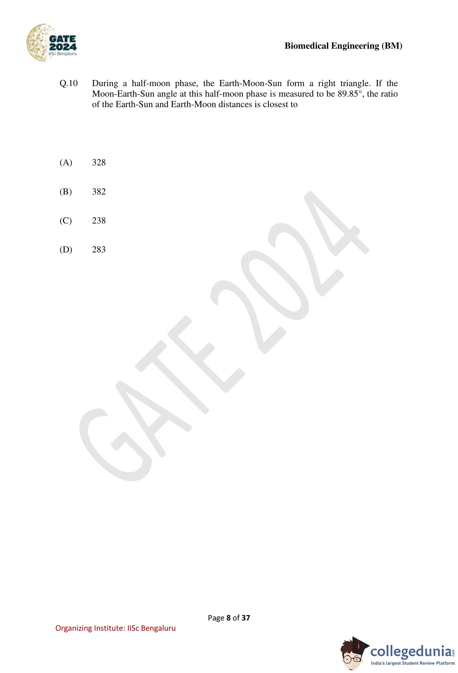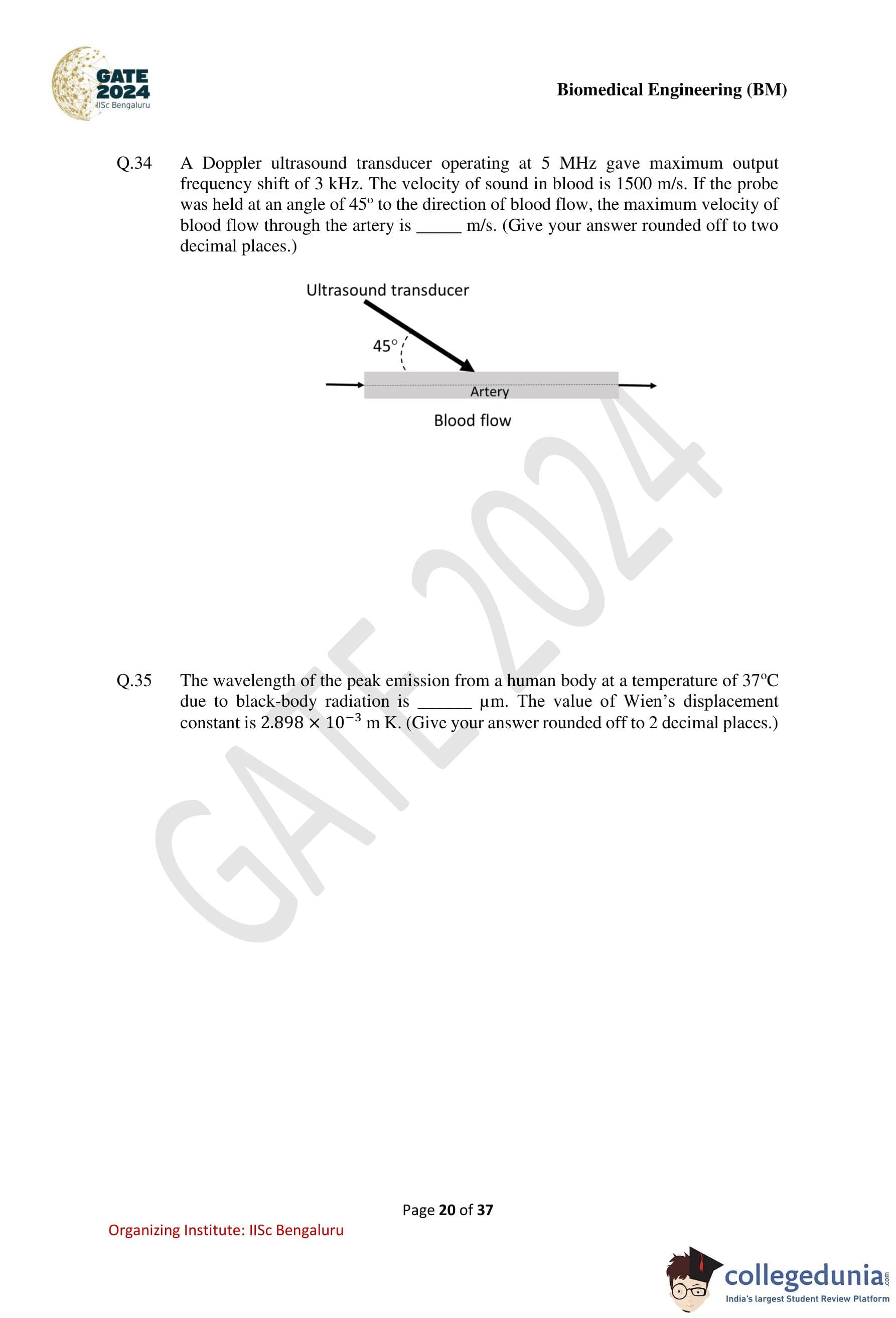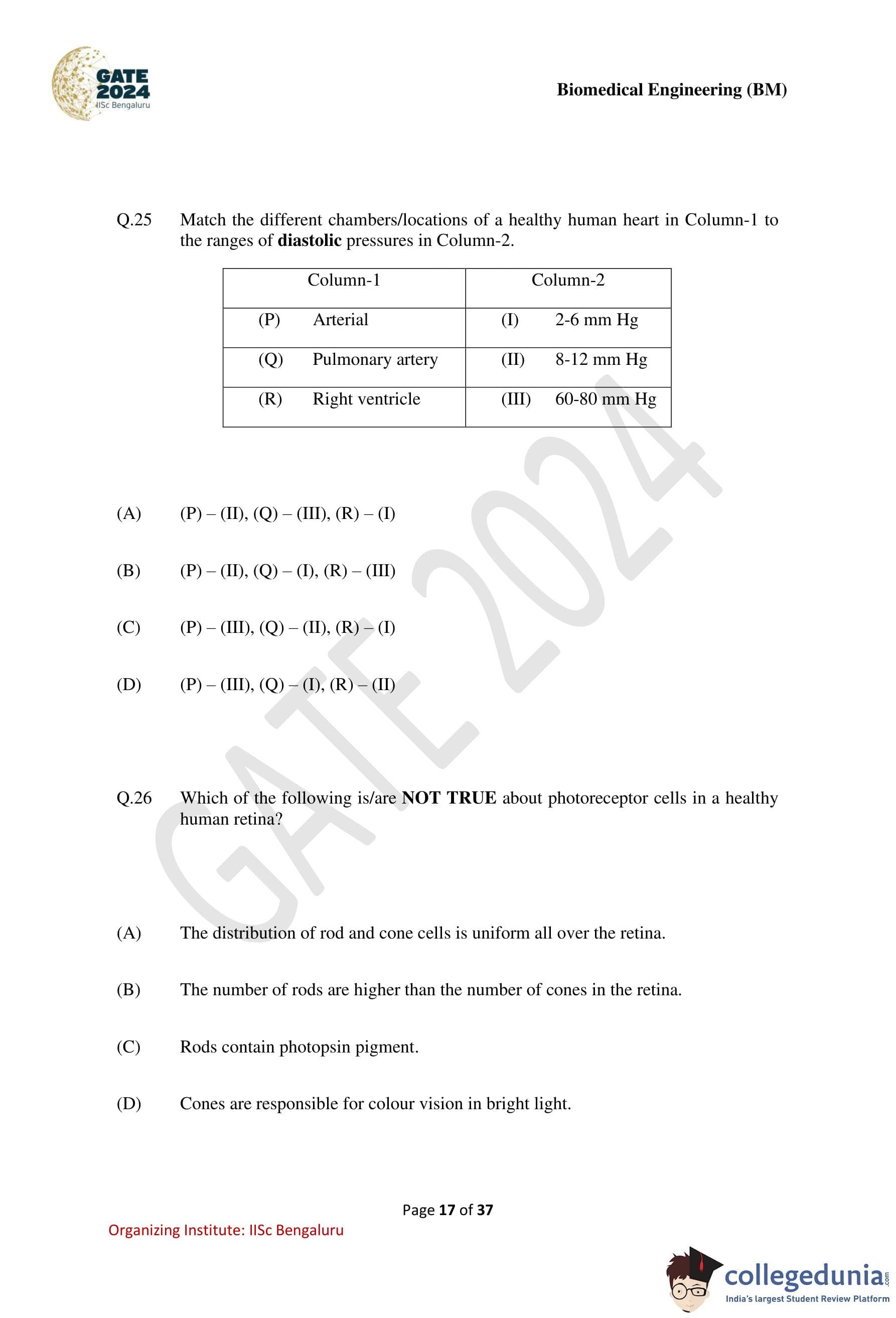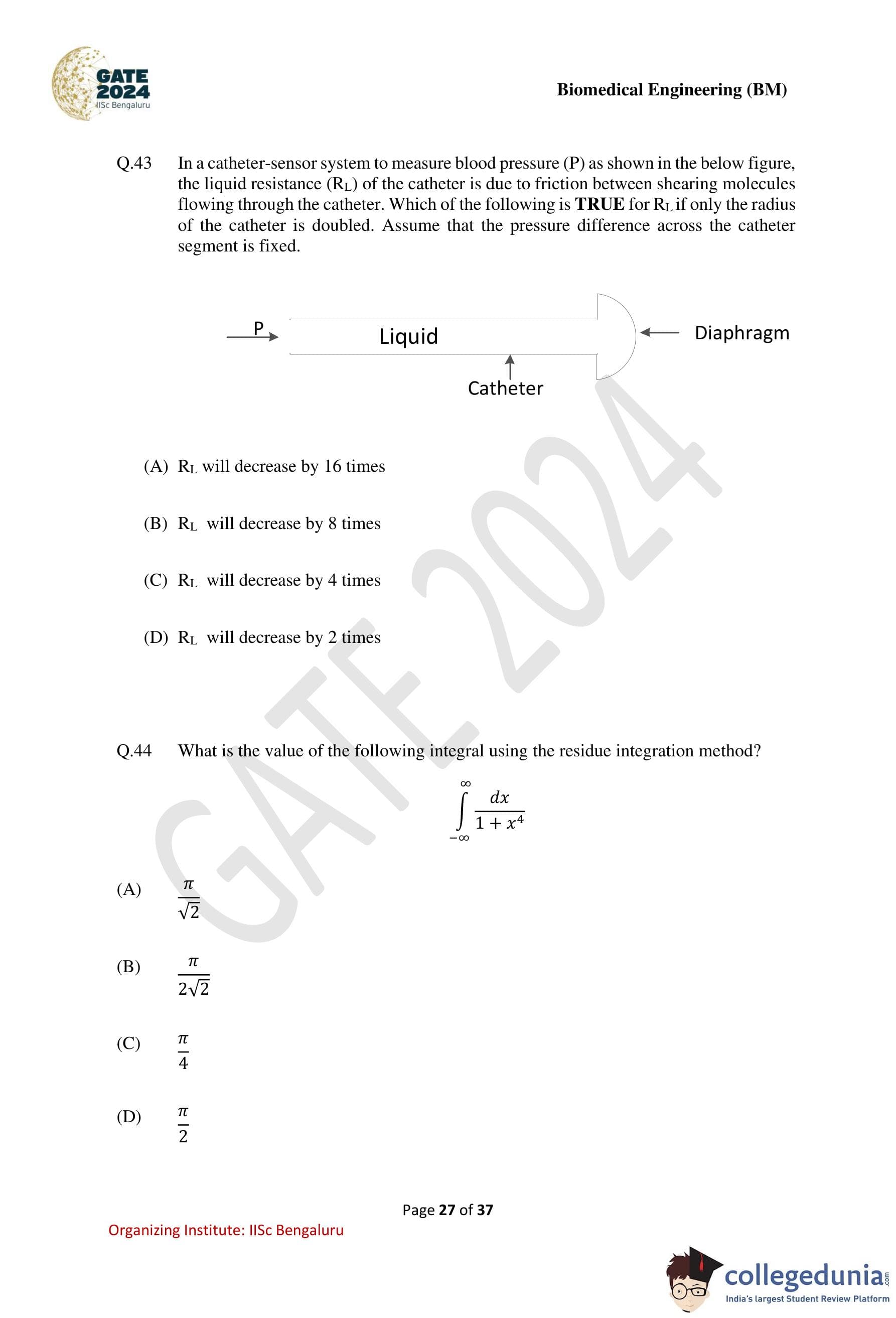 GATE Biomedical Engineering Question Paper with Solution PDF