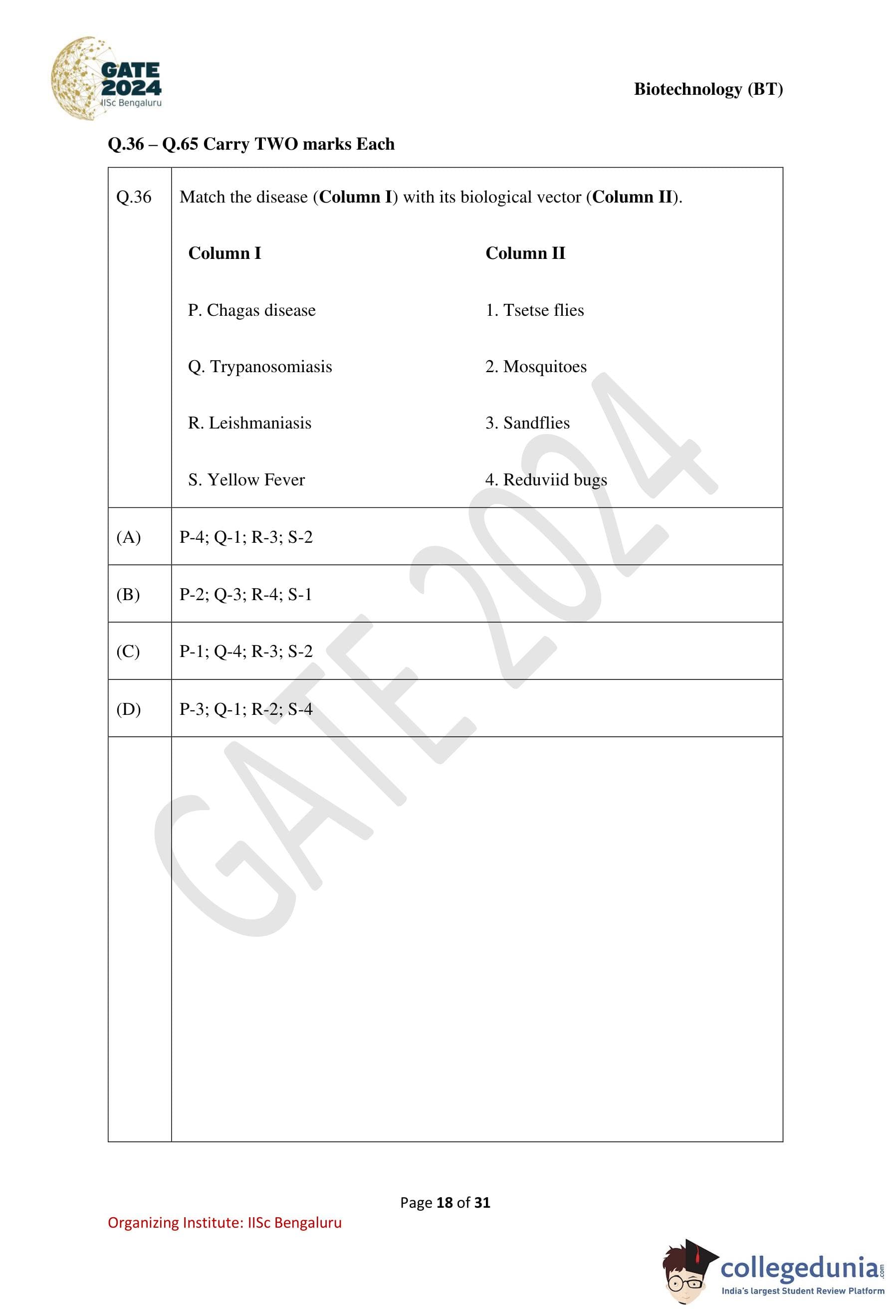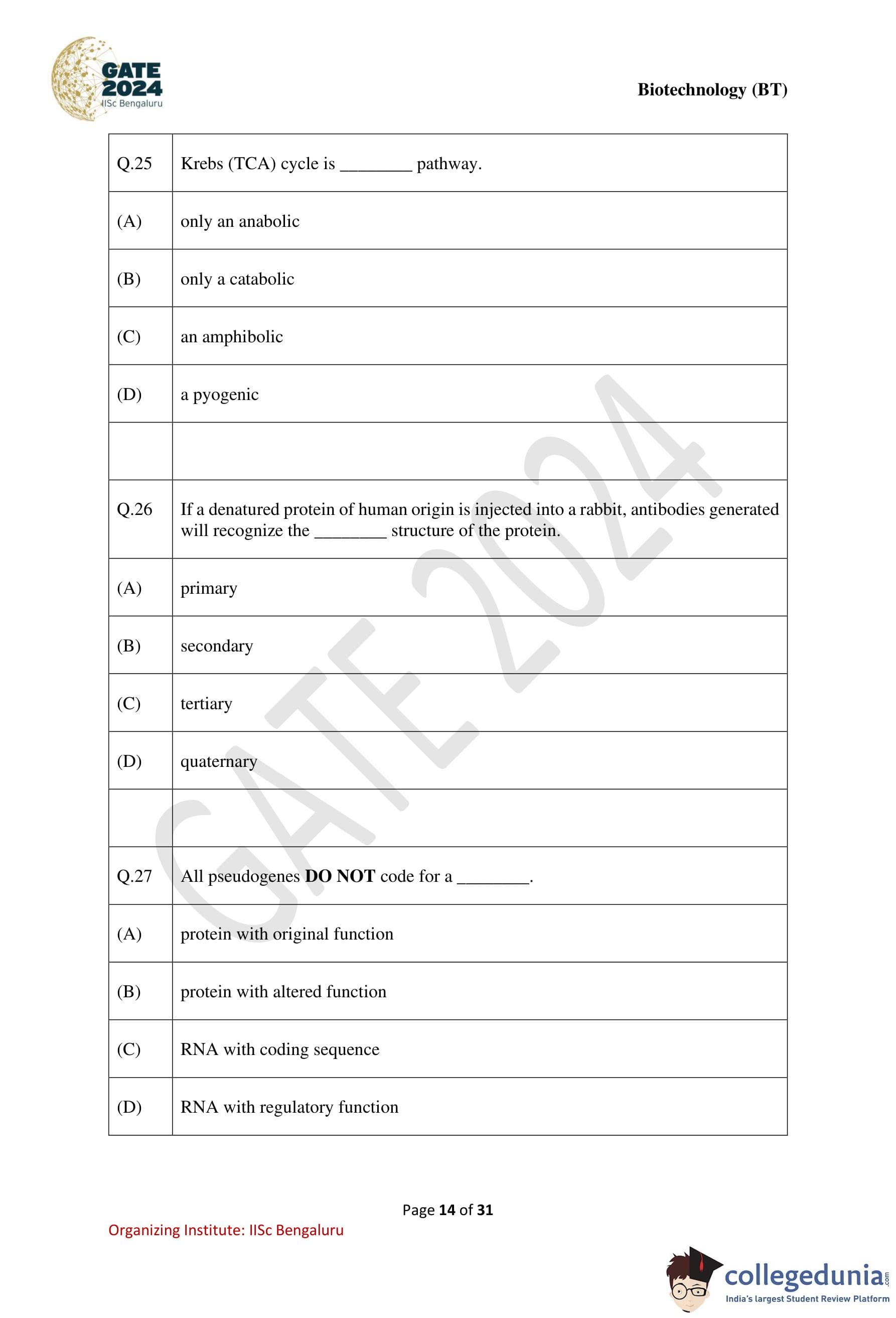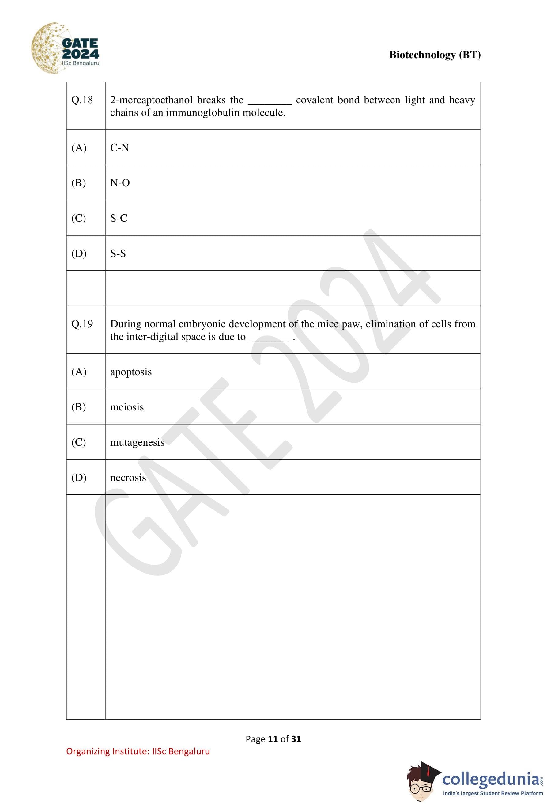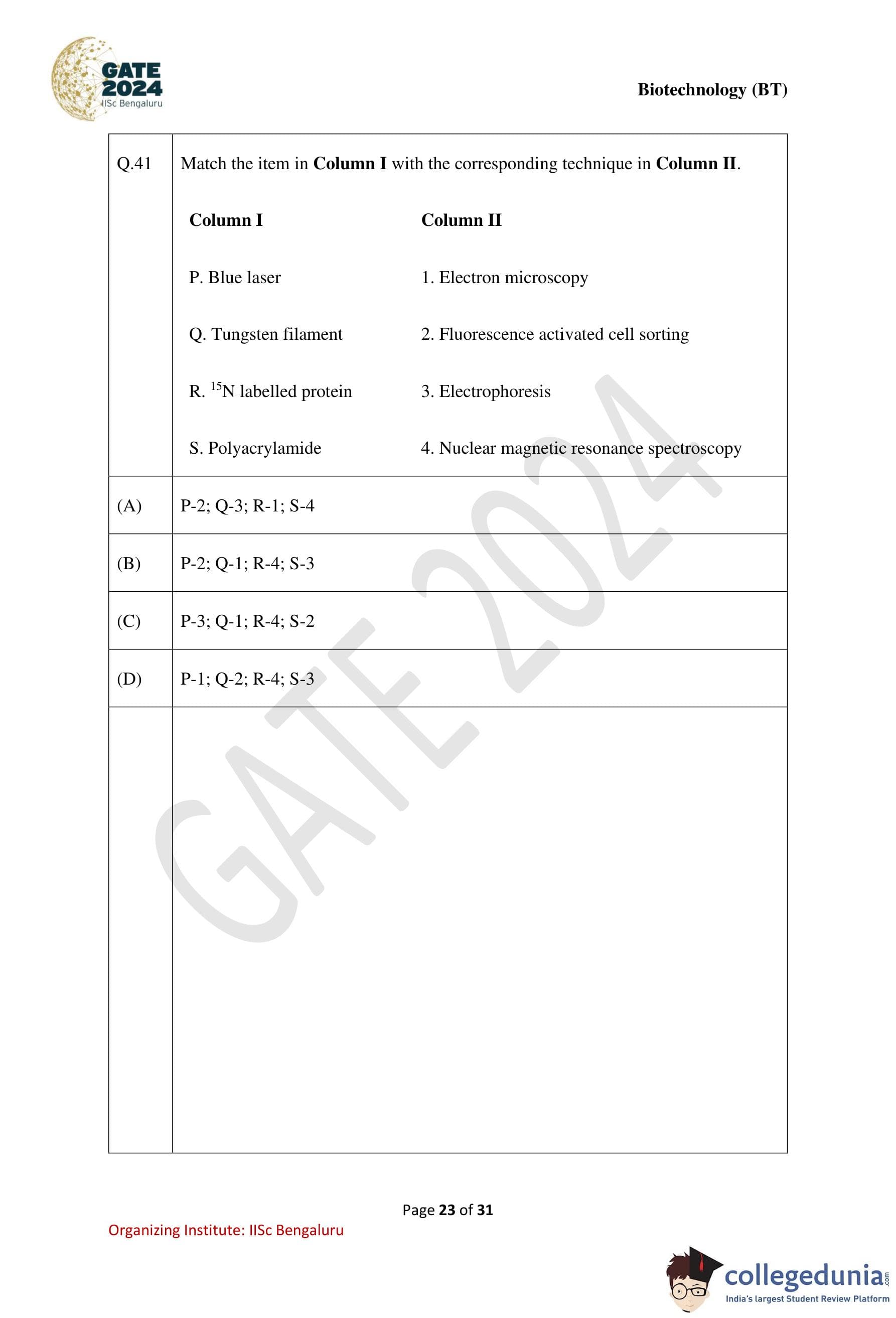 | GATE 2024 Biotechnology Question Paper with Solution PDF | Check Solutions |