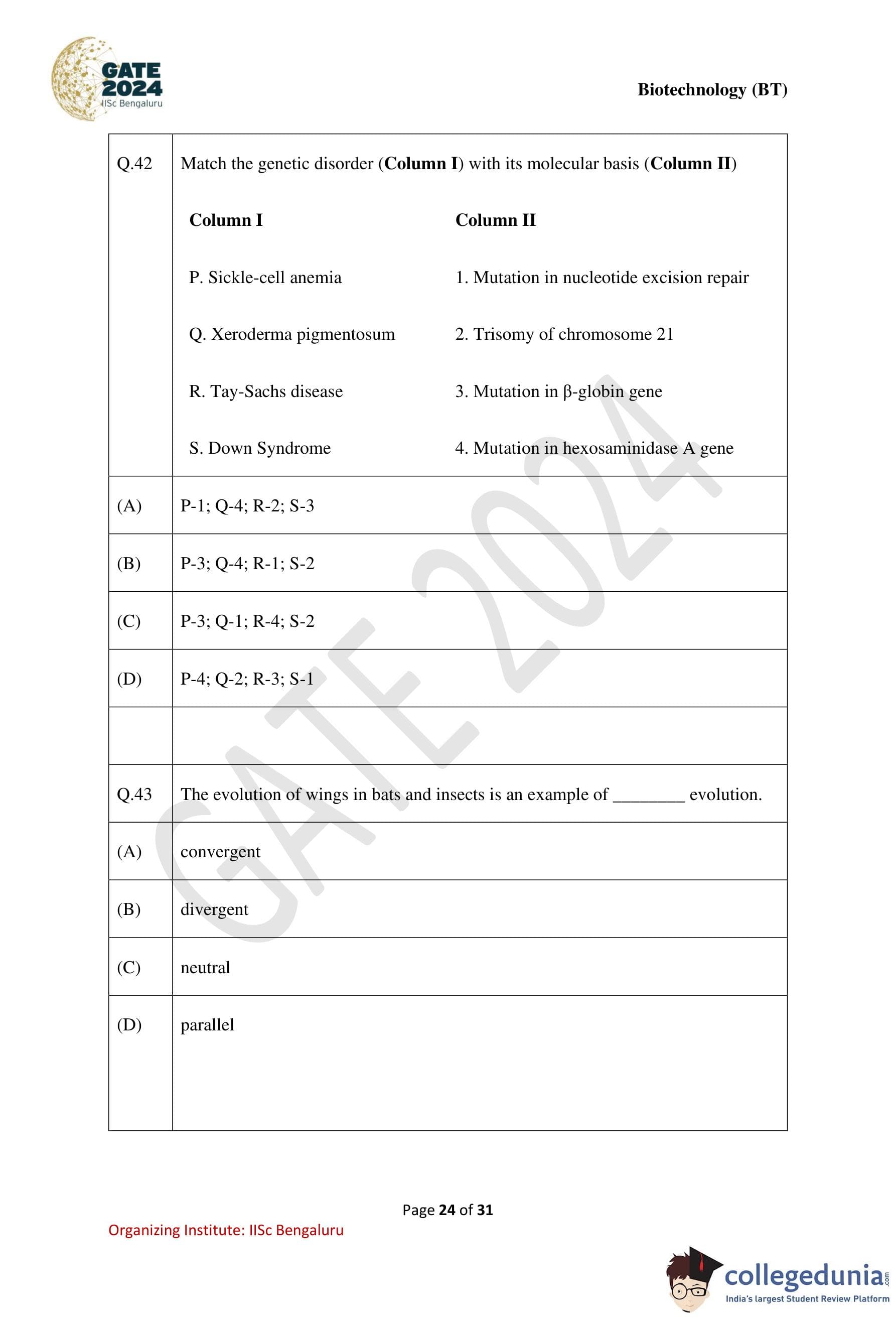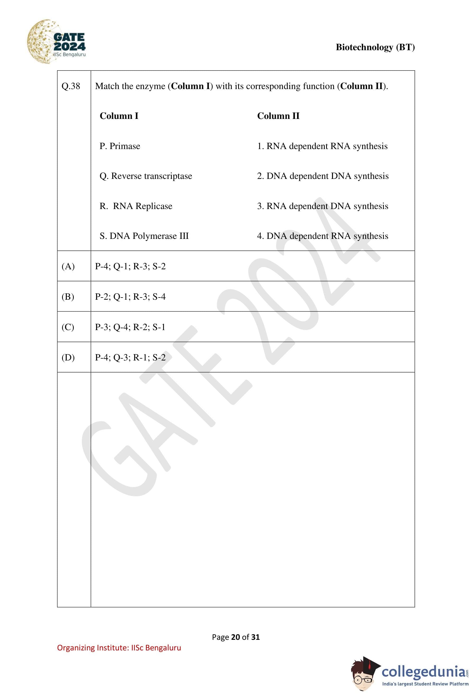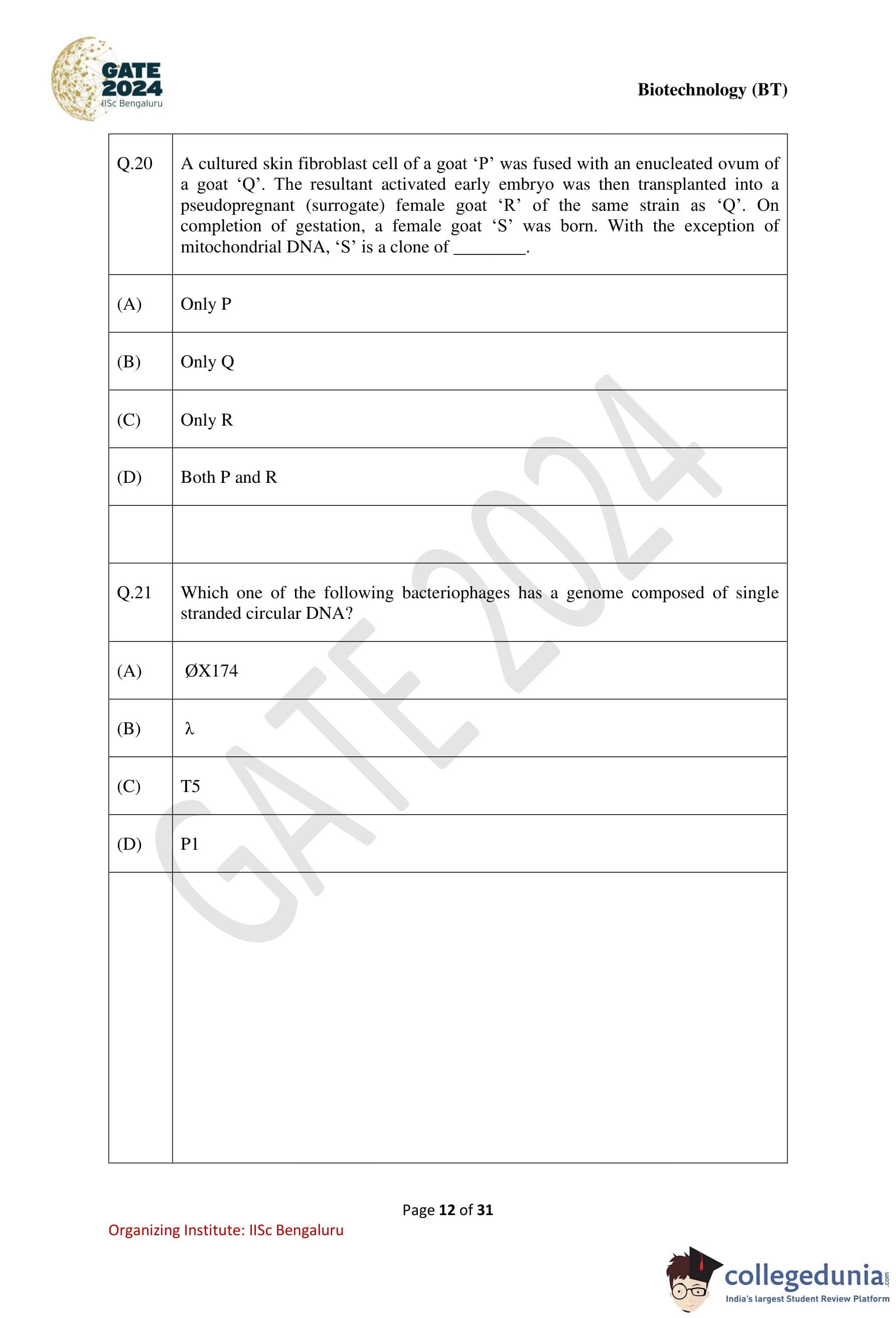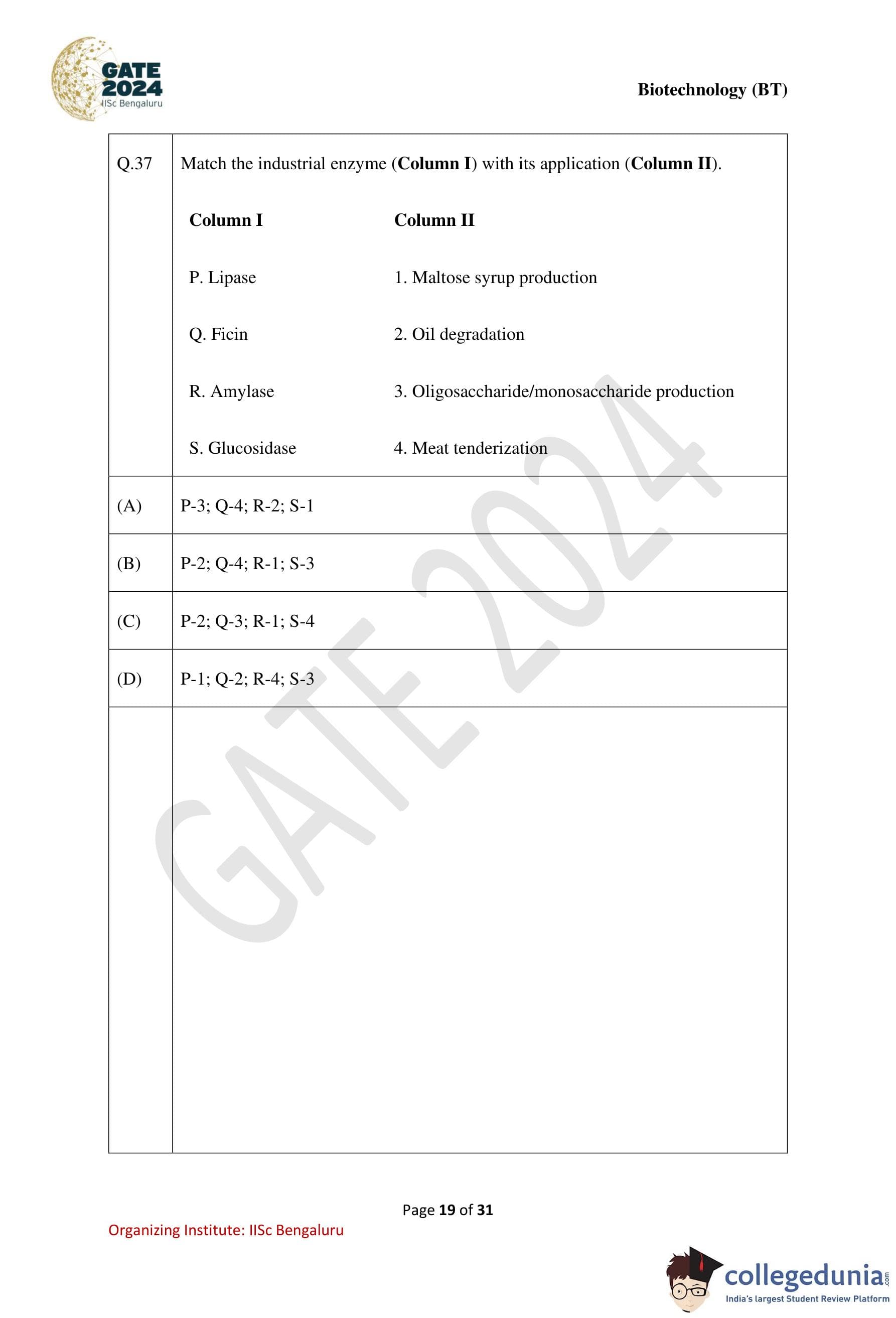 | GATE 2024 Biotechnology Question Paper with Solution PDF | Check Solutions |