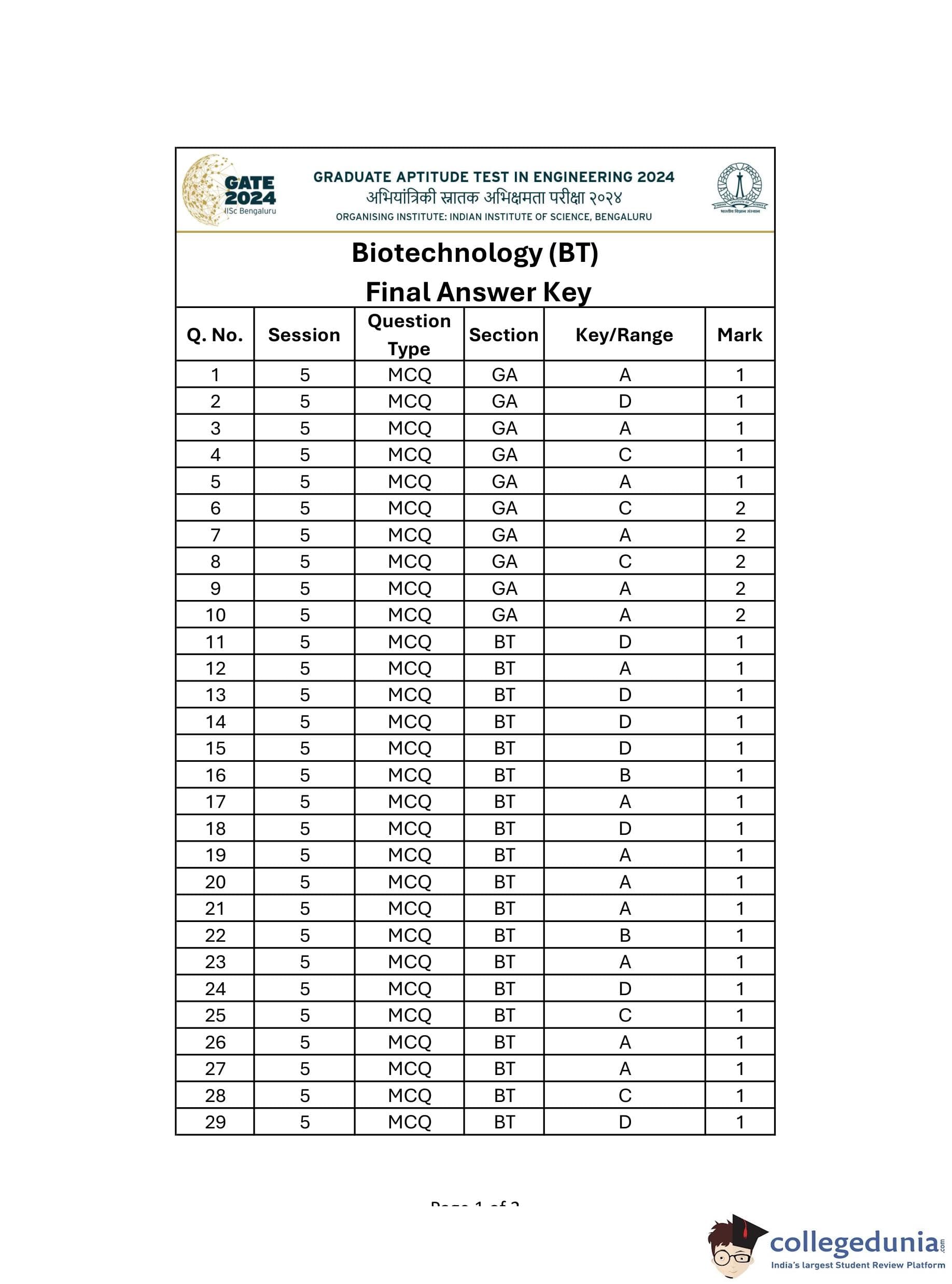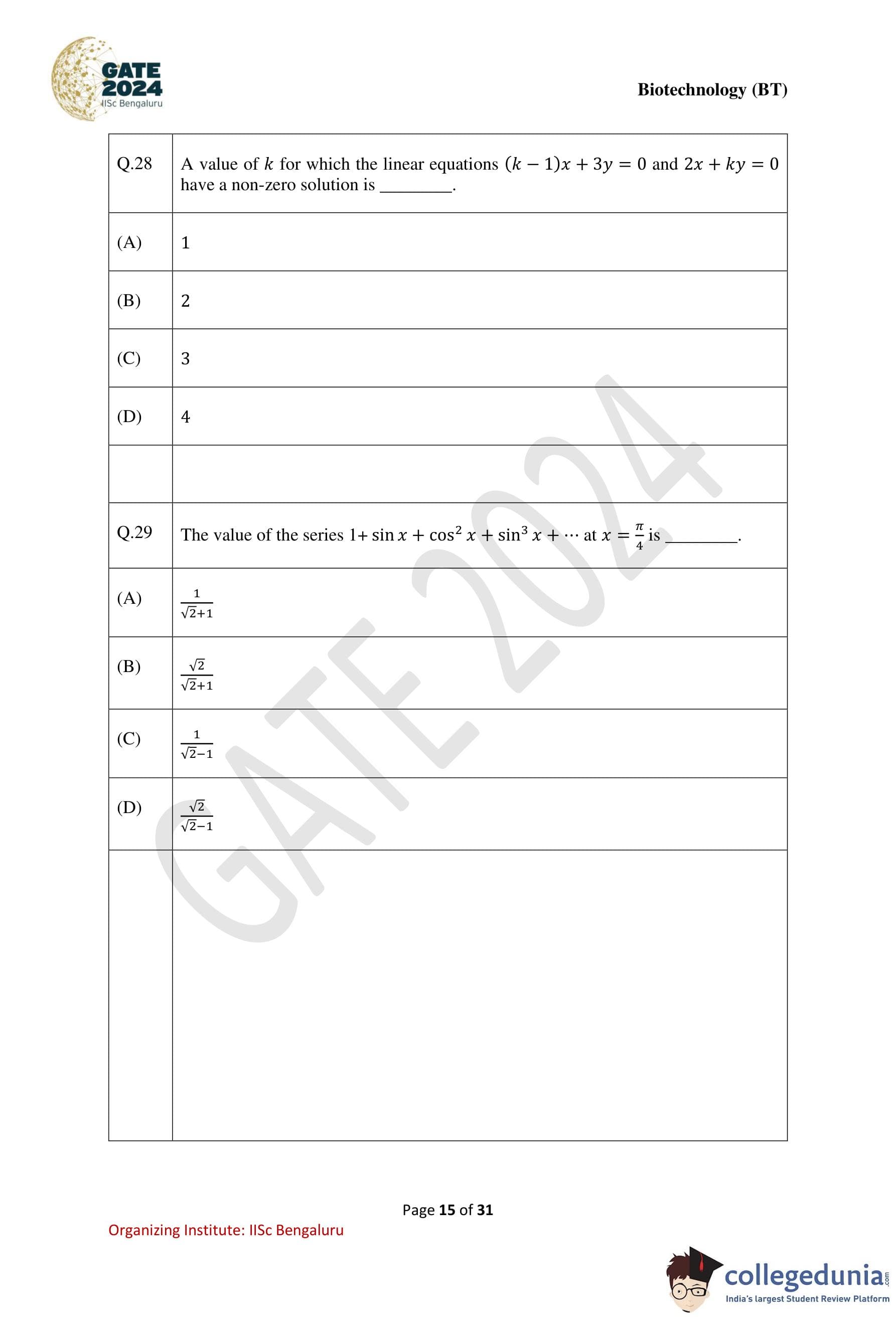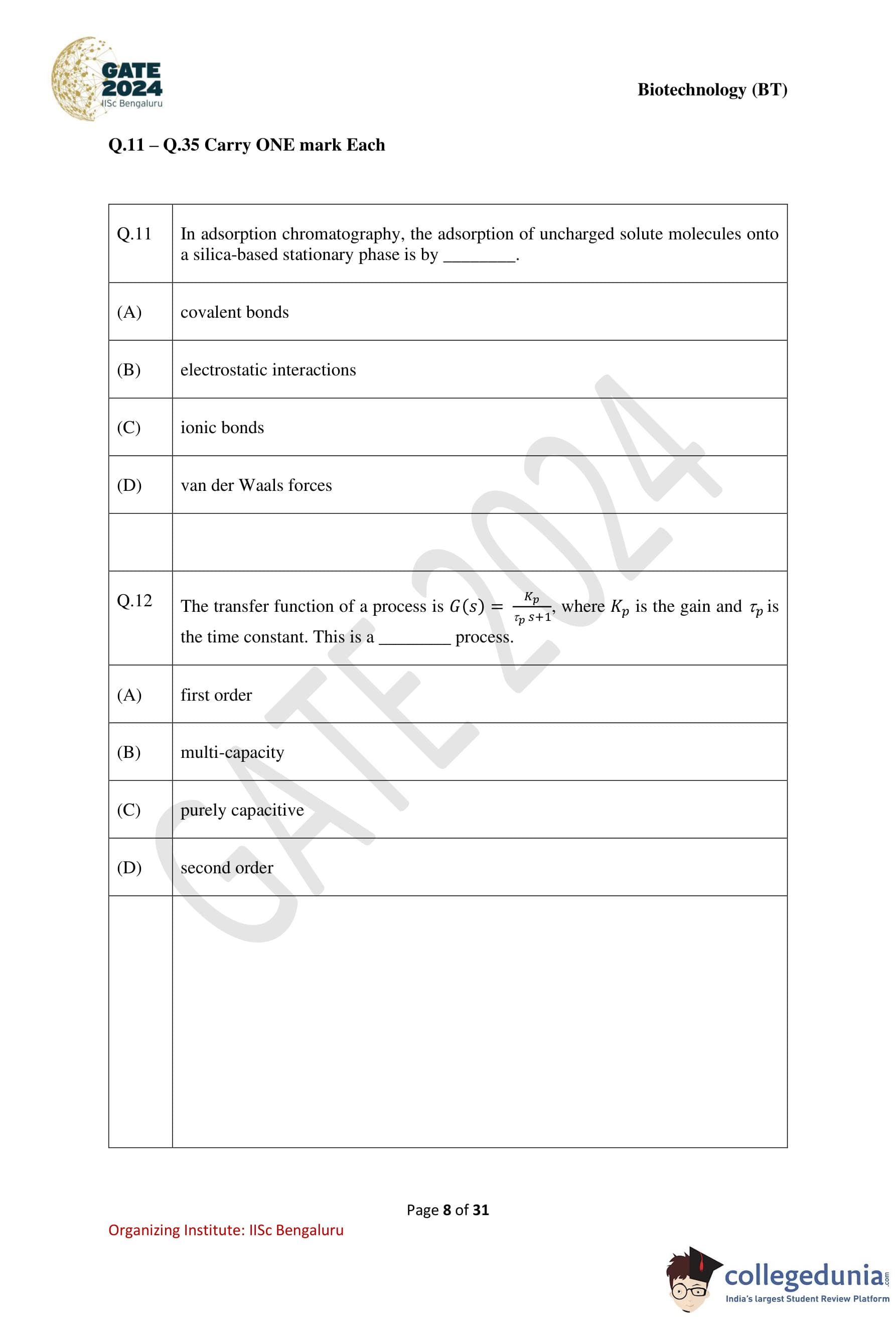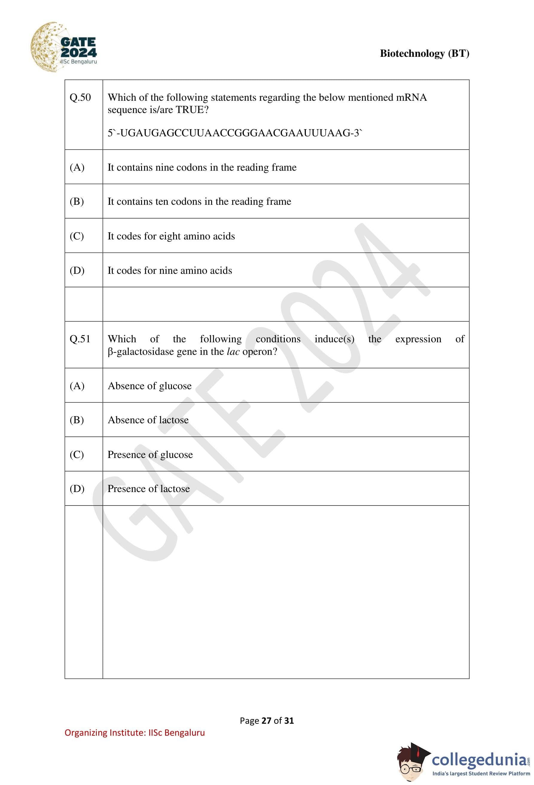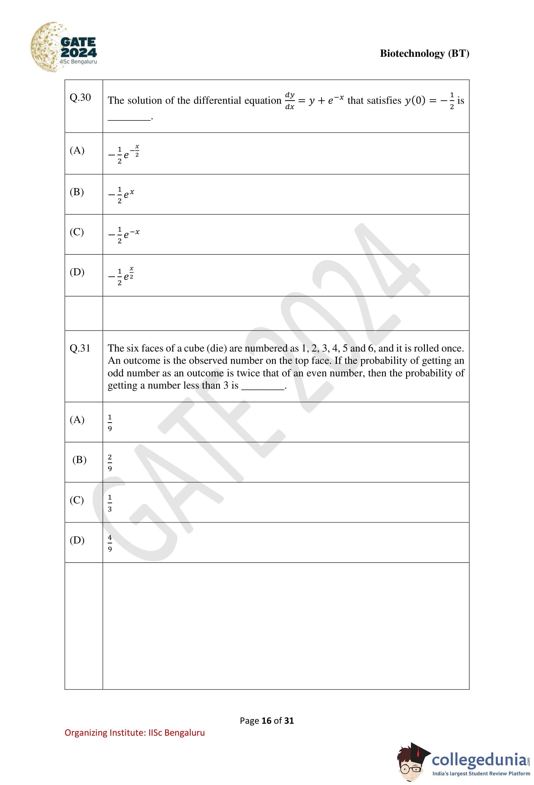 | GATE 2024 Biotechnology Question Paper with Solution PDF | Check Solutions |