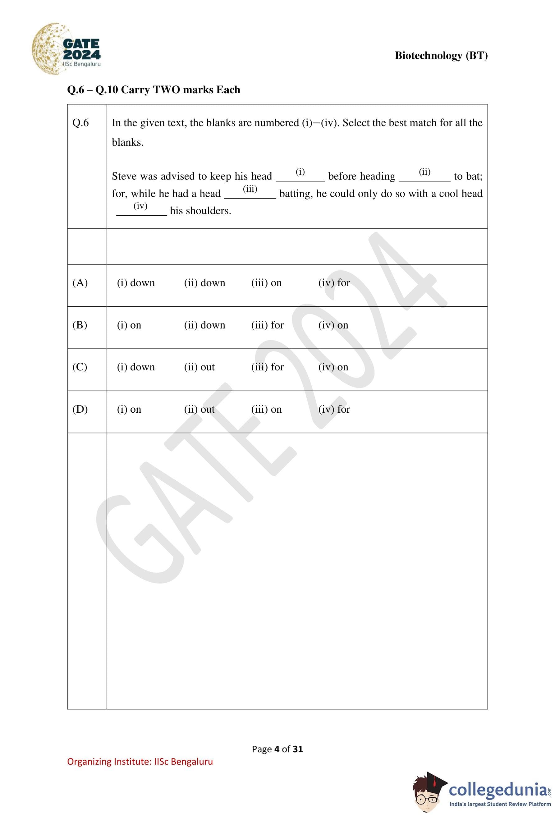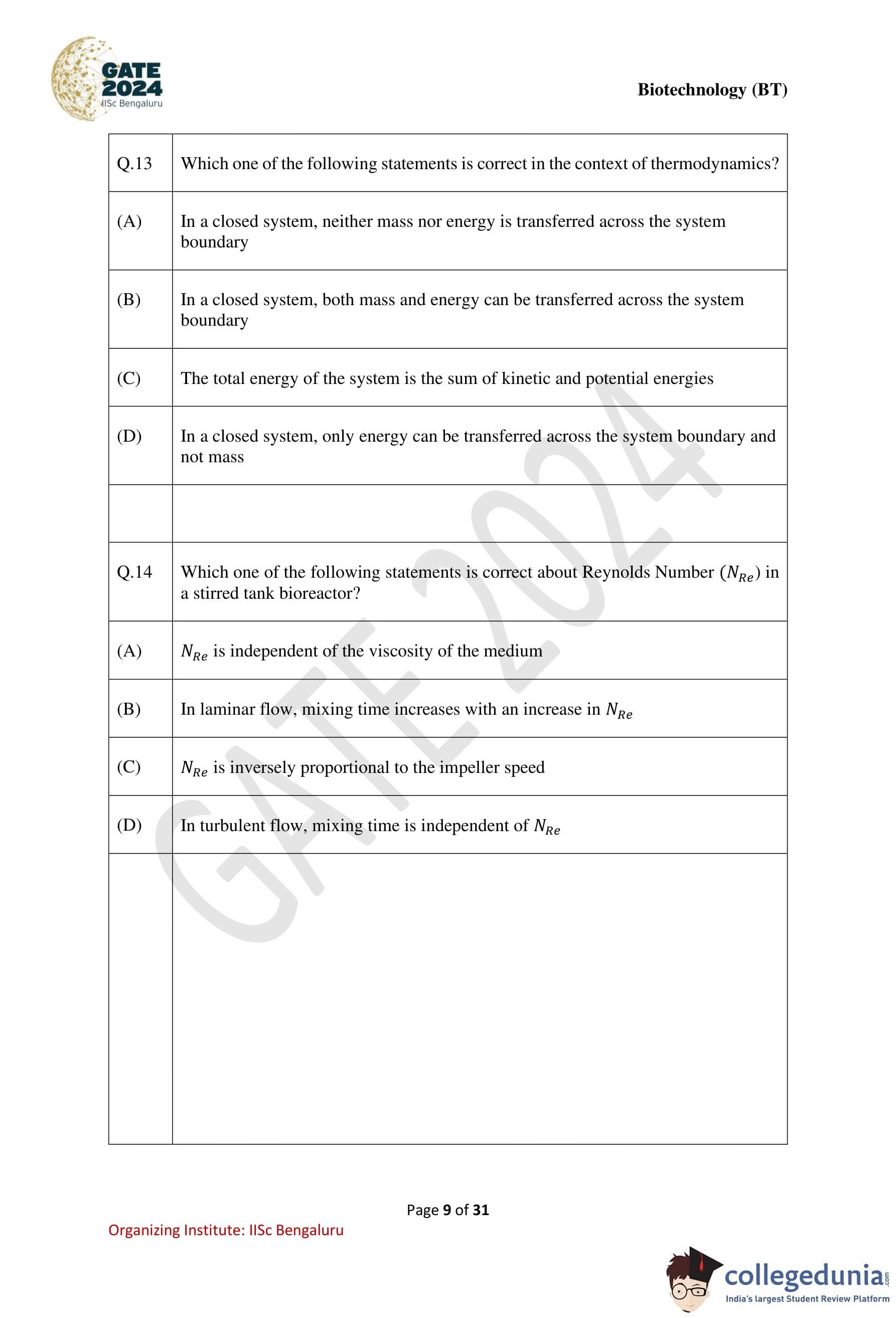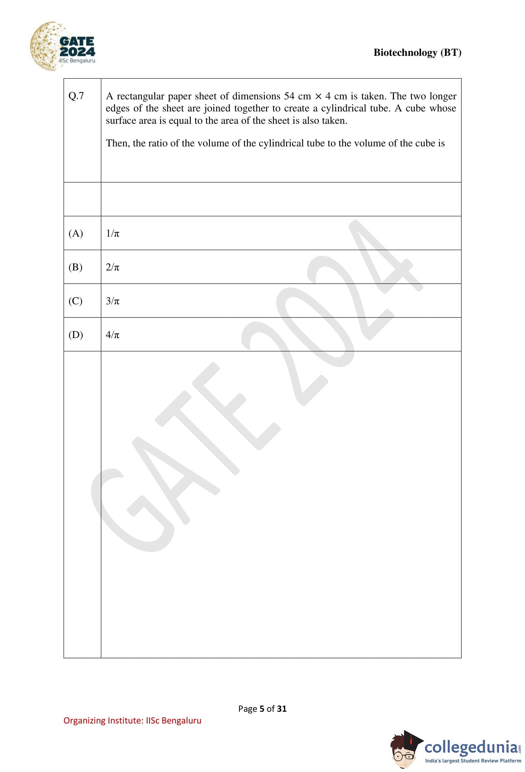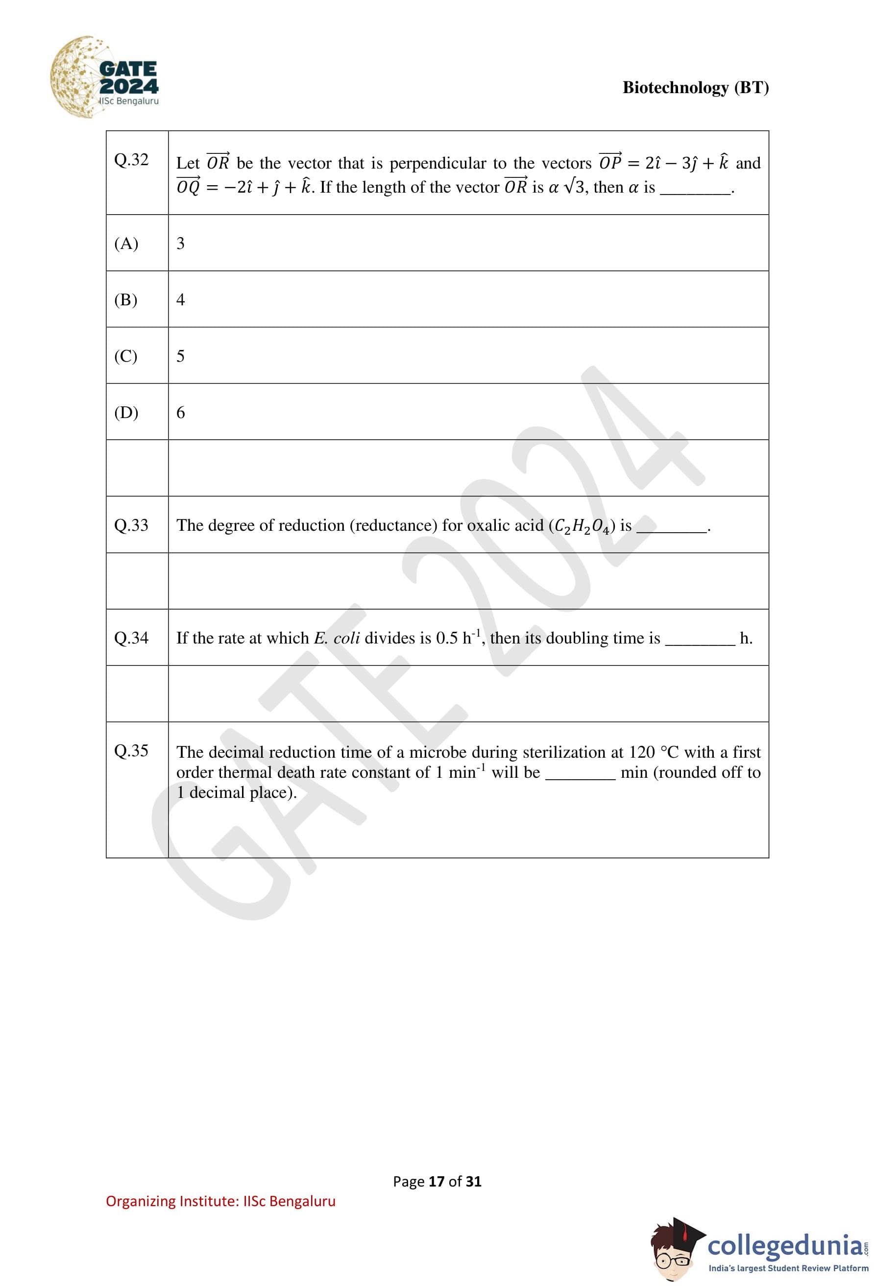 | GATE 2024 Biotechnology Question Paper with Solution PDF | Check Solutions |