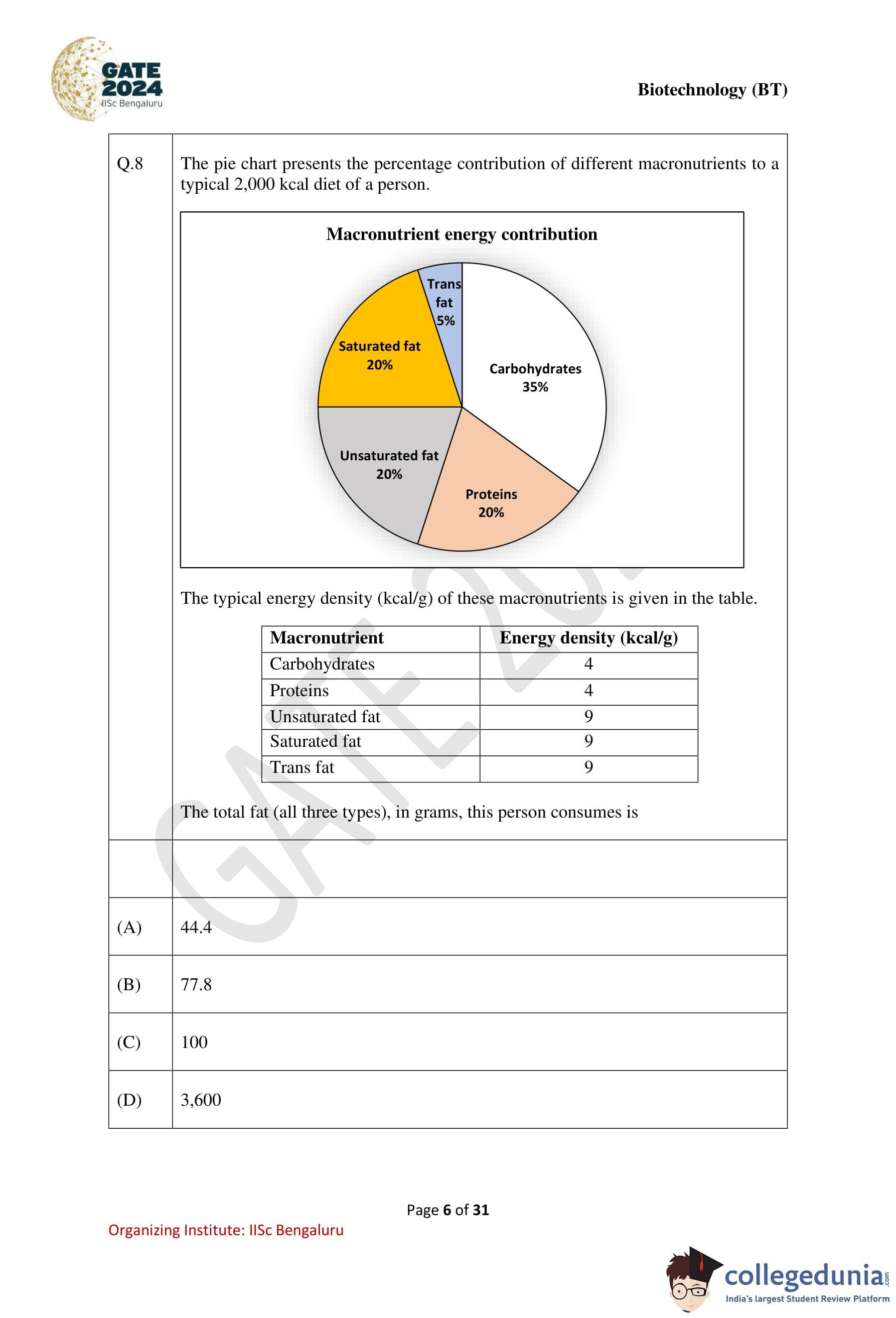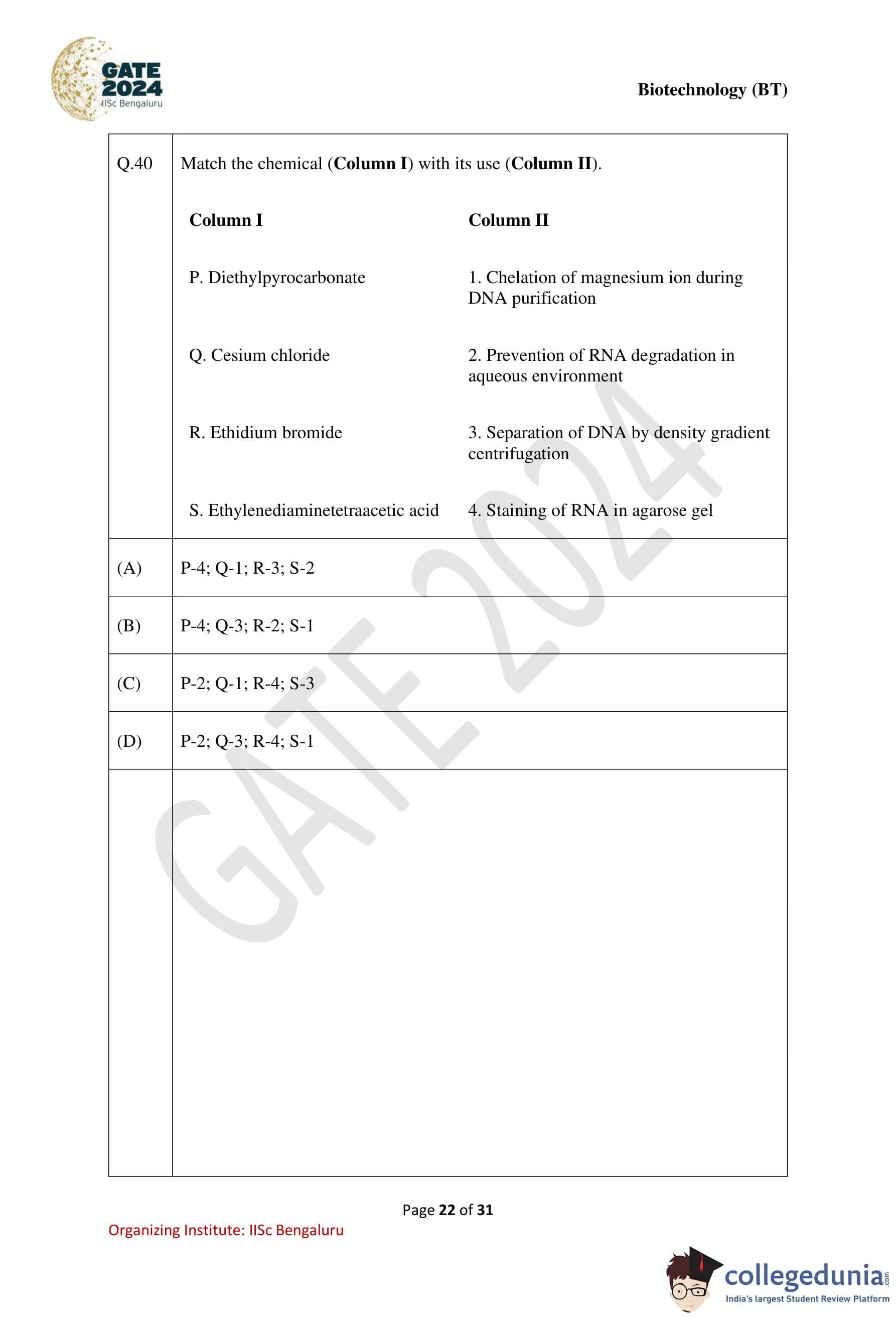 GATE 2024 Biotechnology Question Paper with Solution PDF