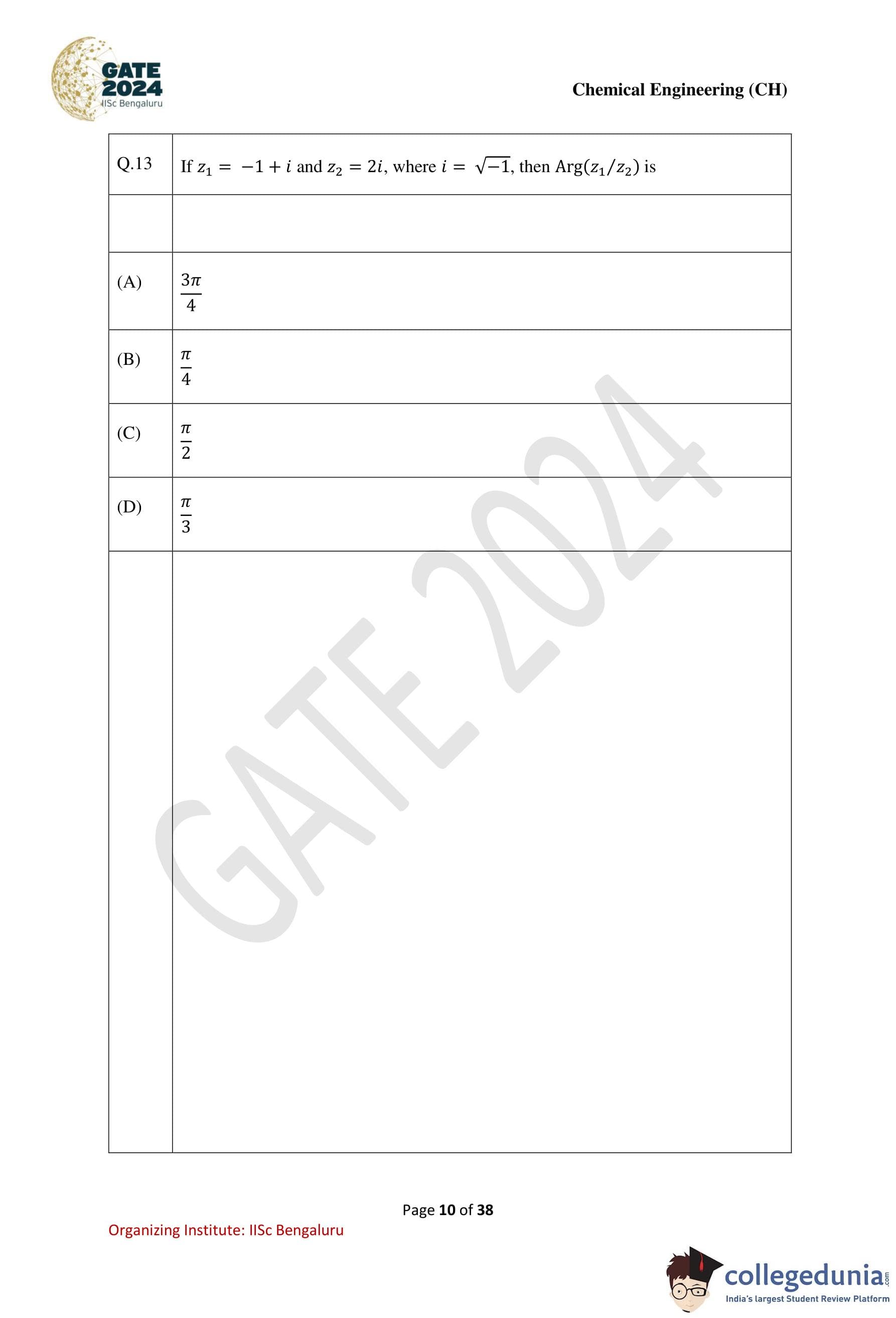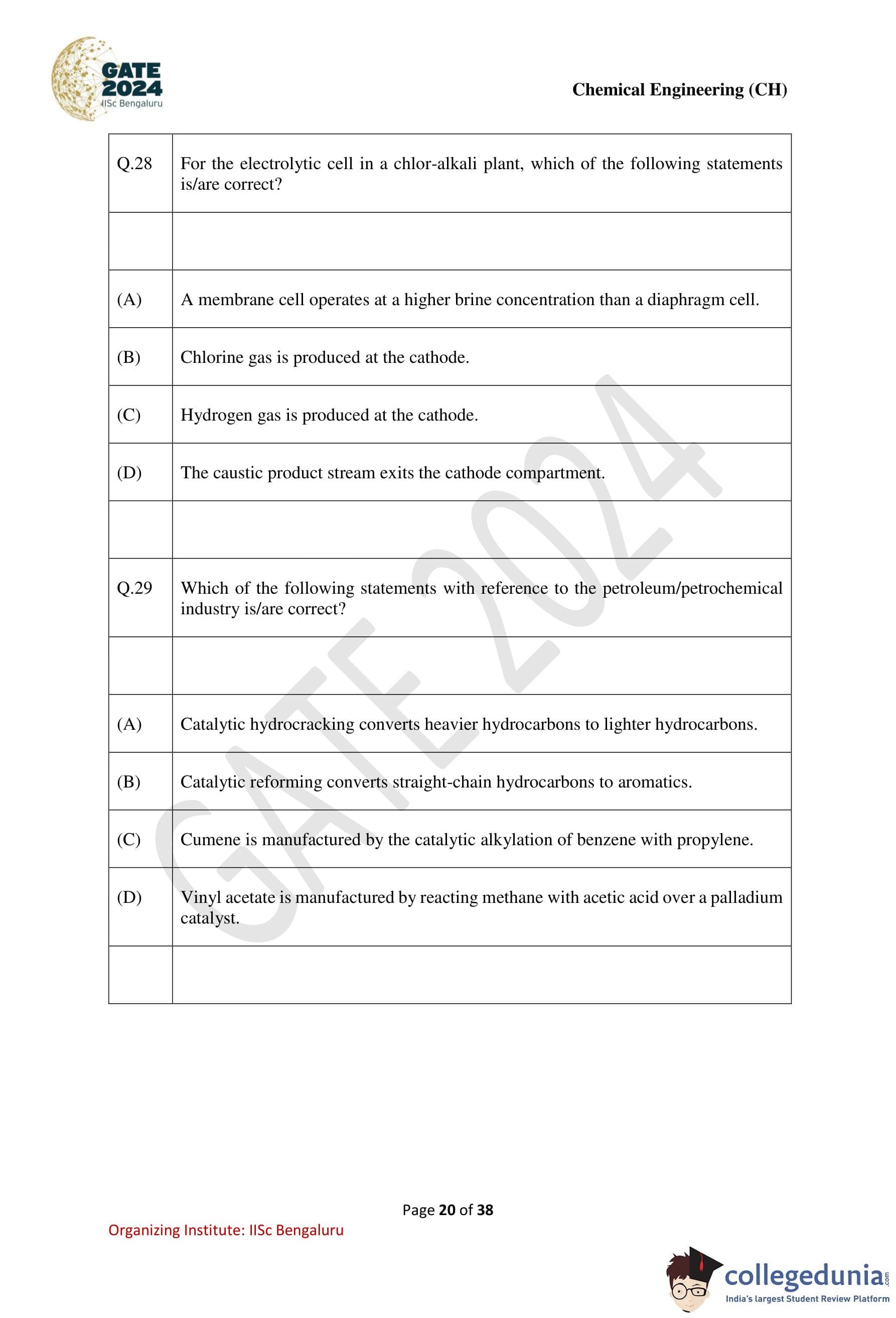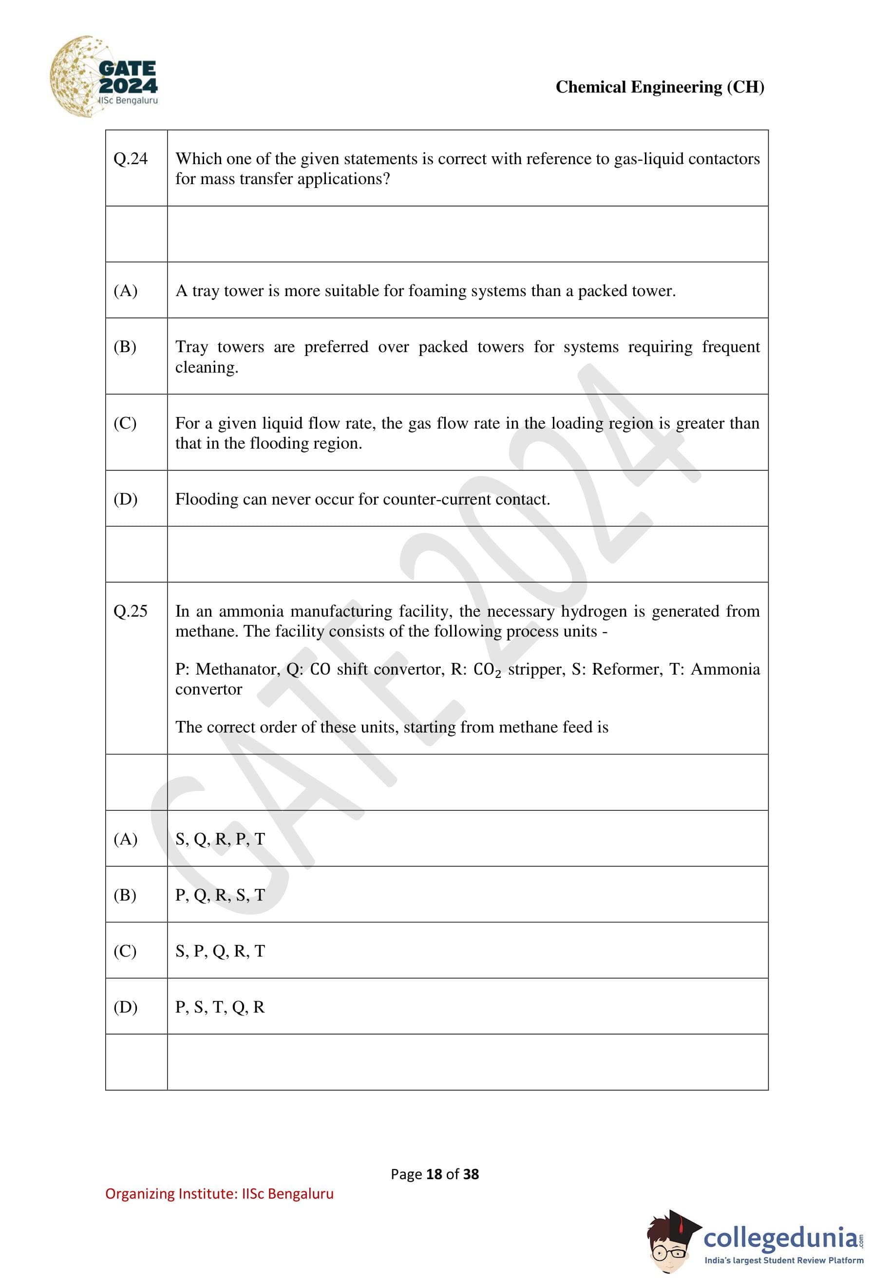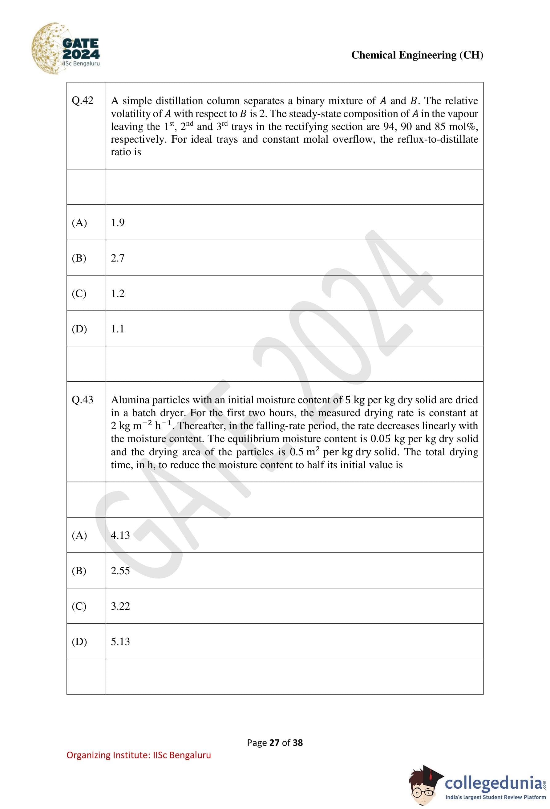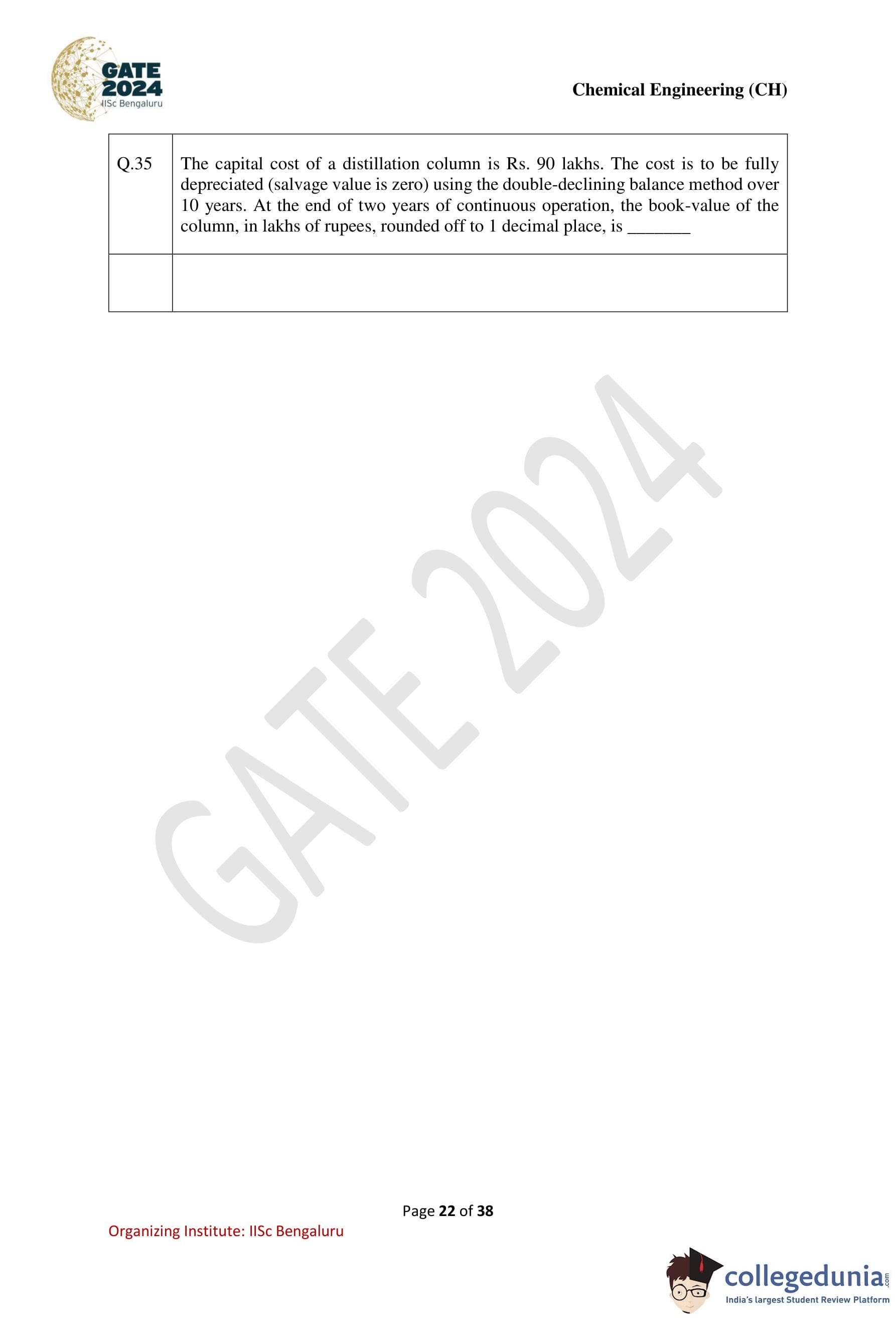 | GATE 2024 Chemical Engineering Question Paper PDF | Check Solutions |