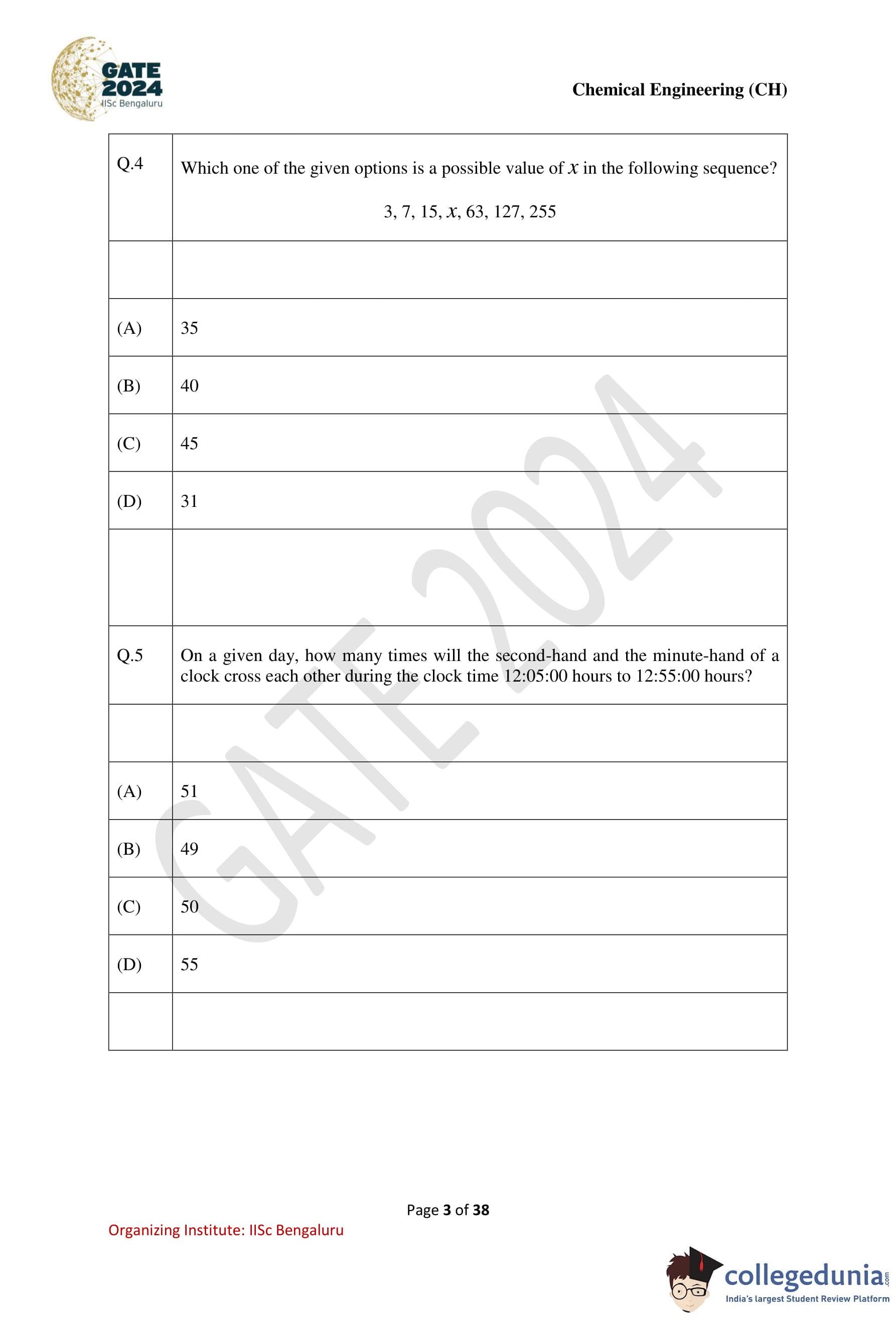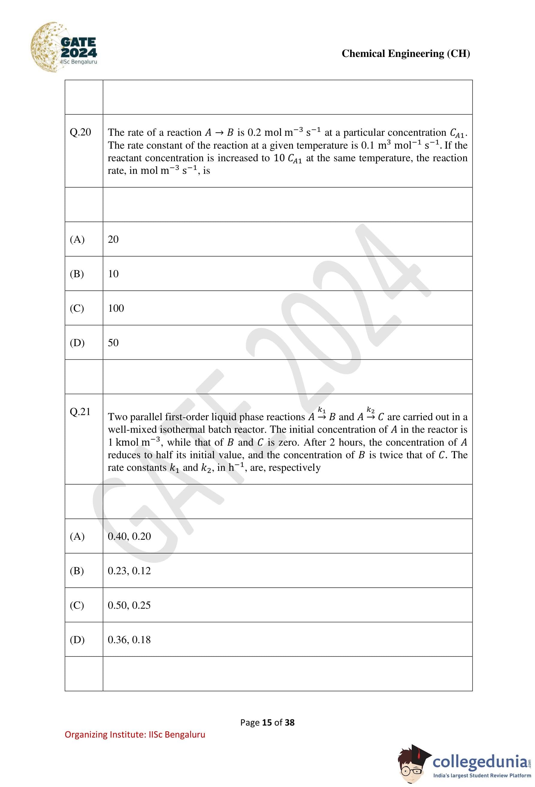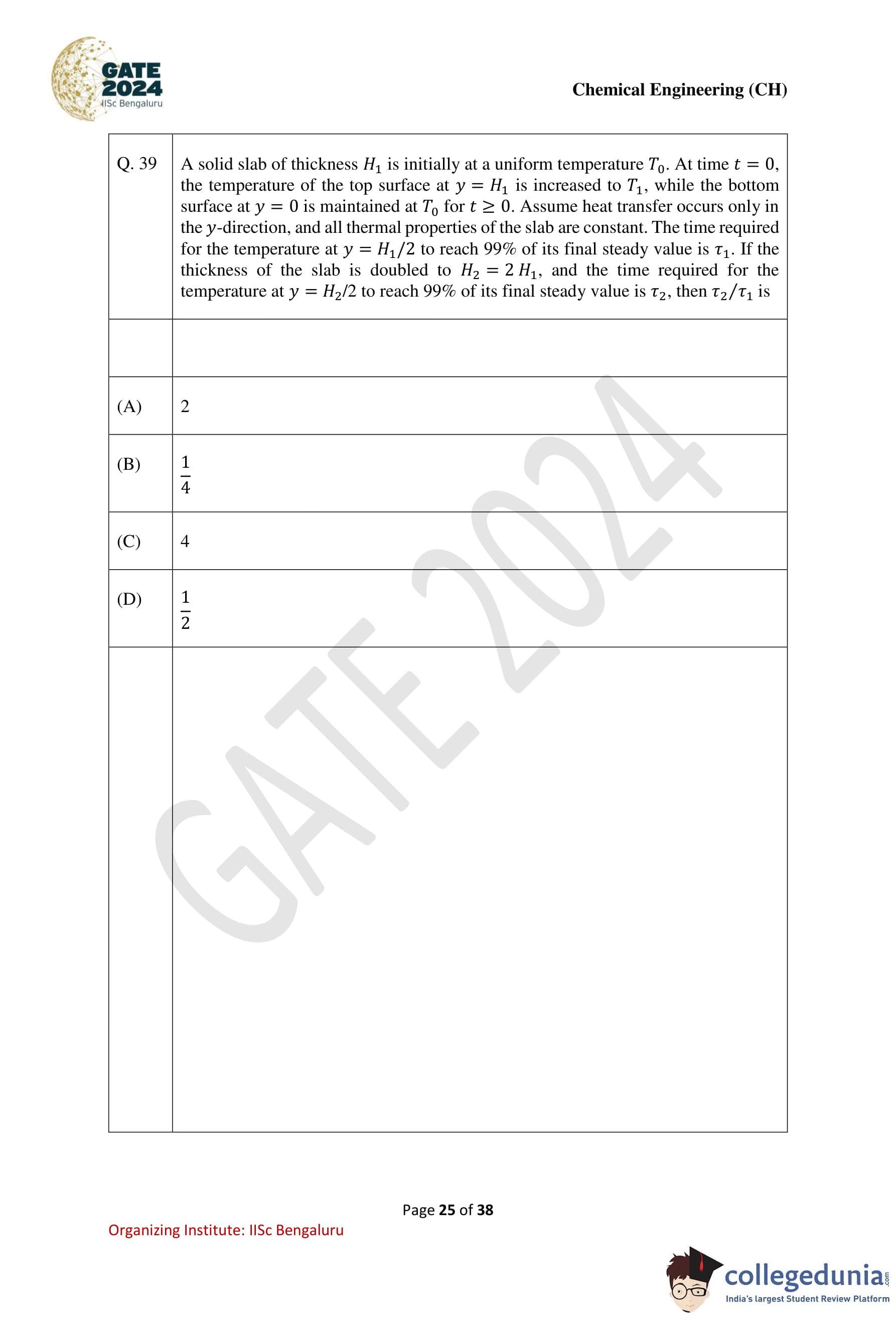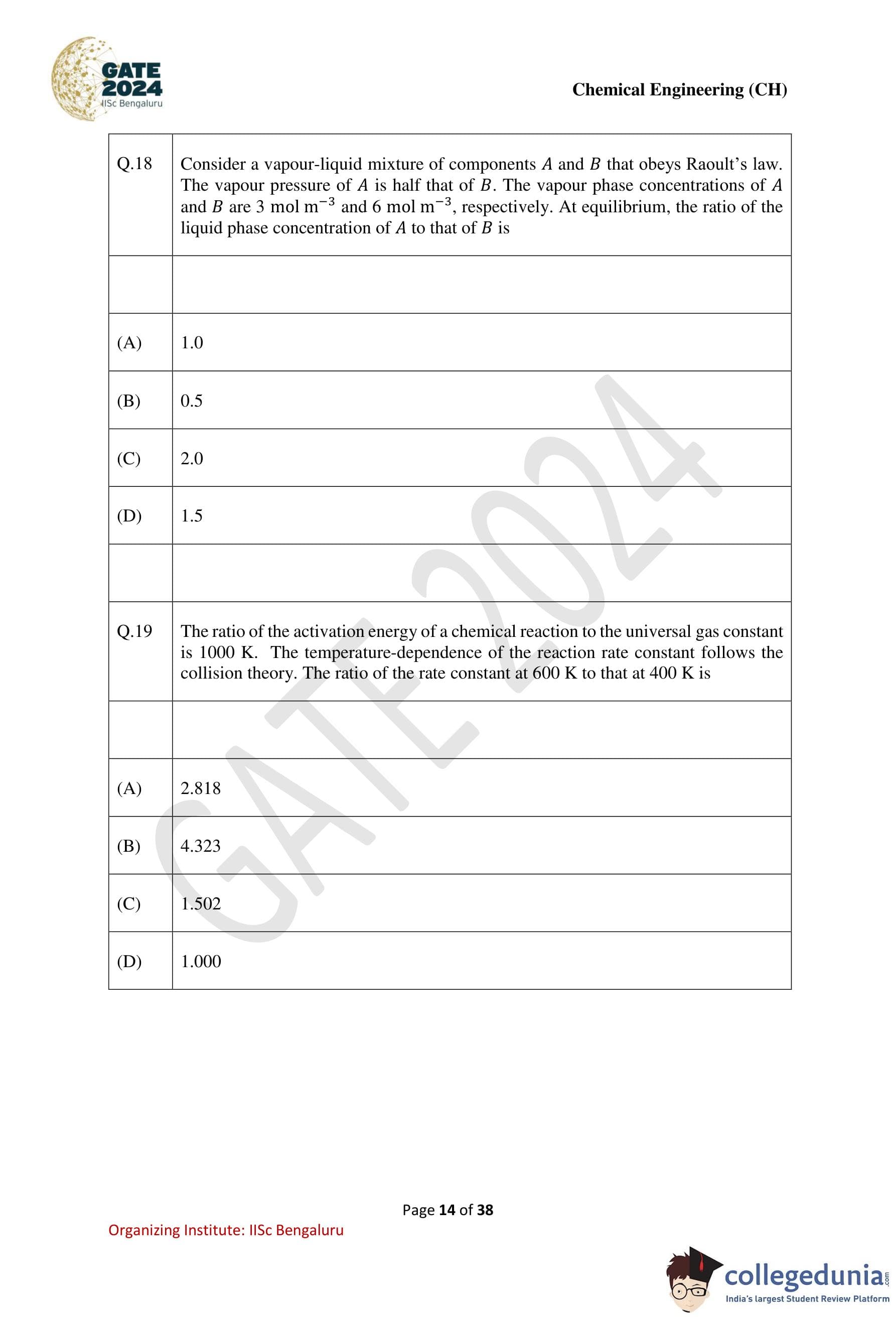 | GATE 2024 Chemical Engineering Question Paper PDF | Check Solutions |