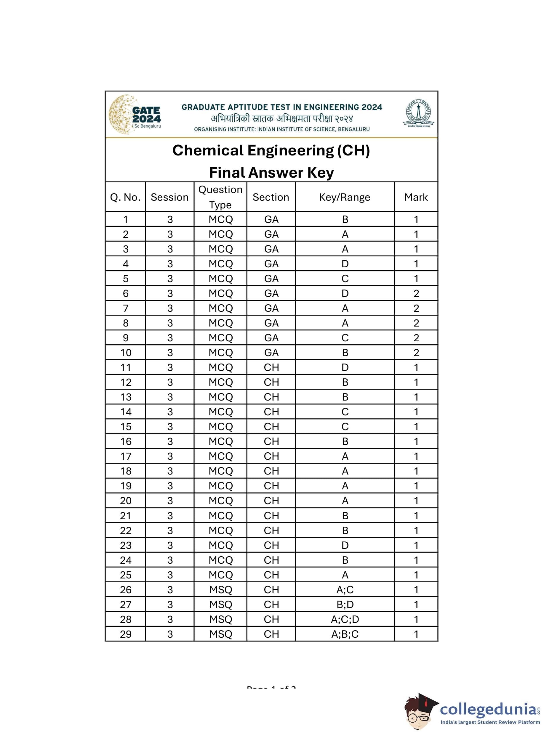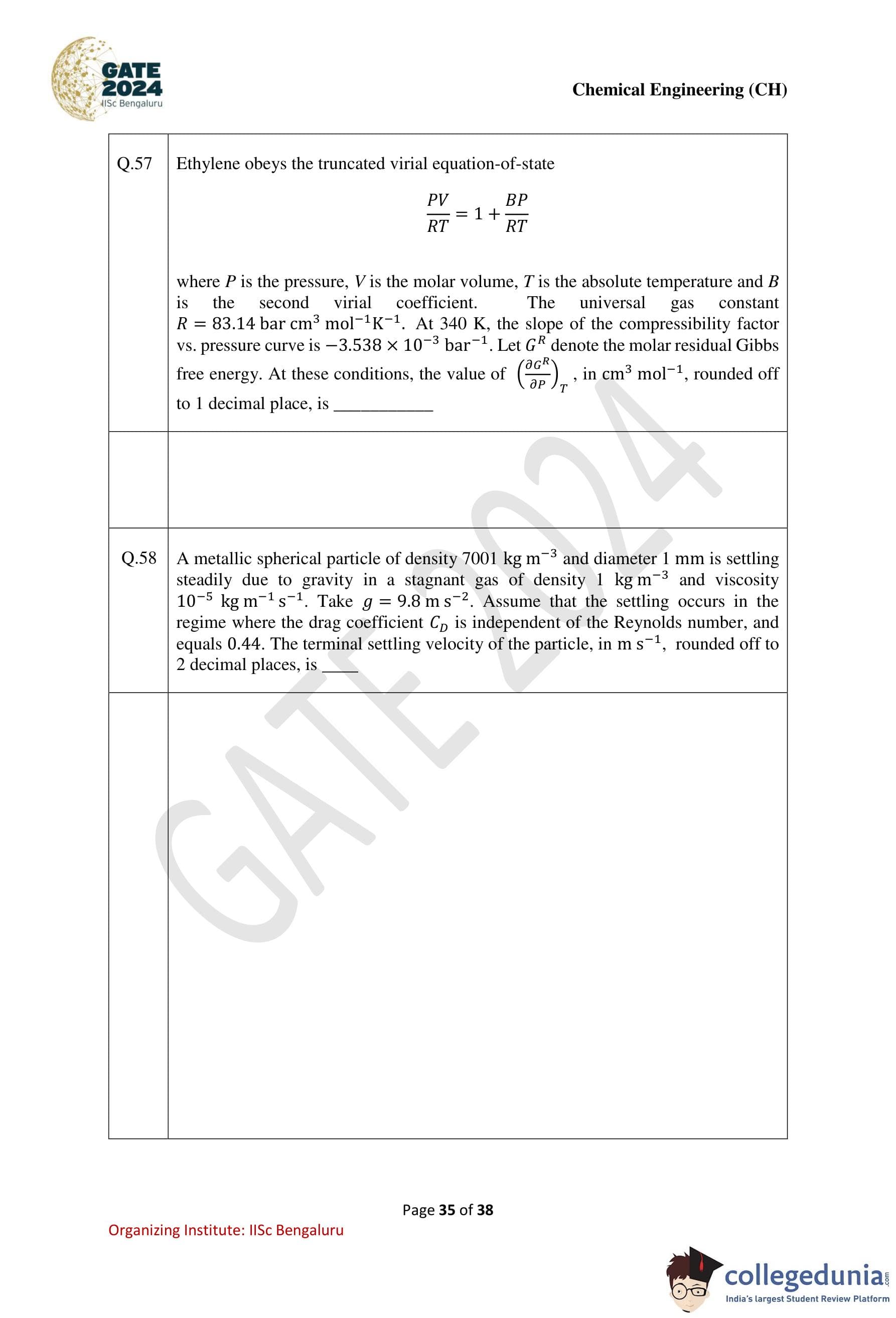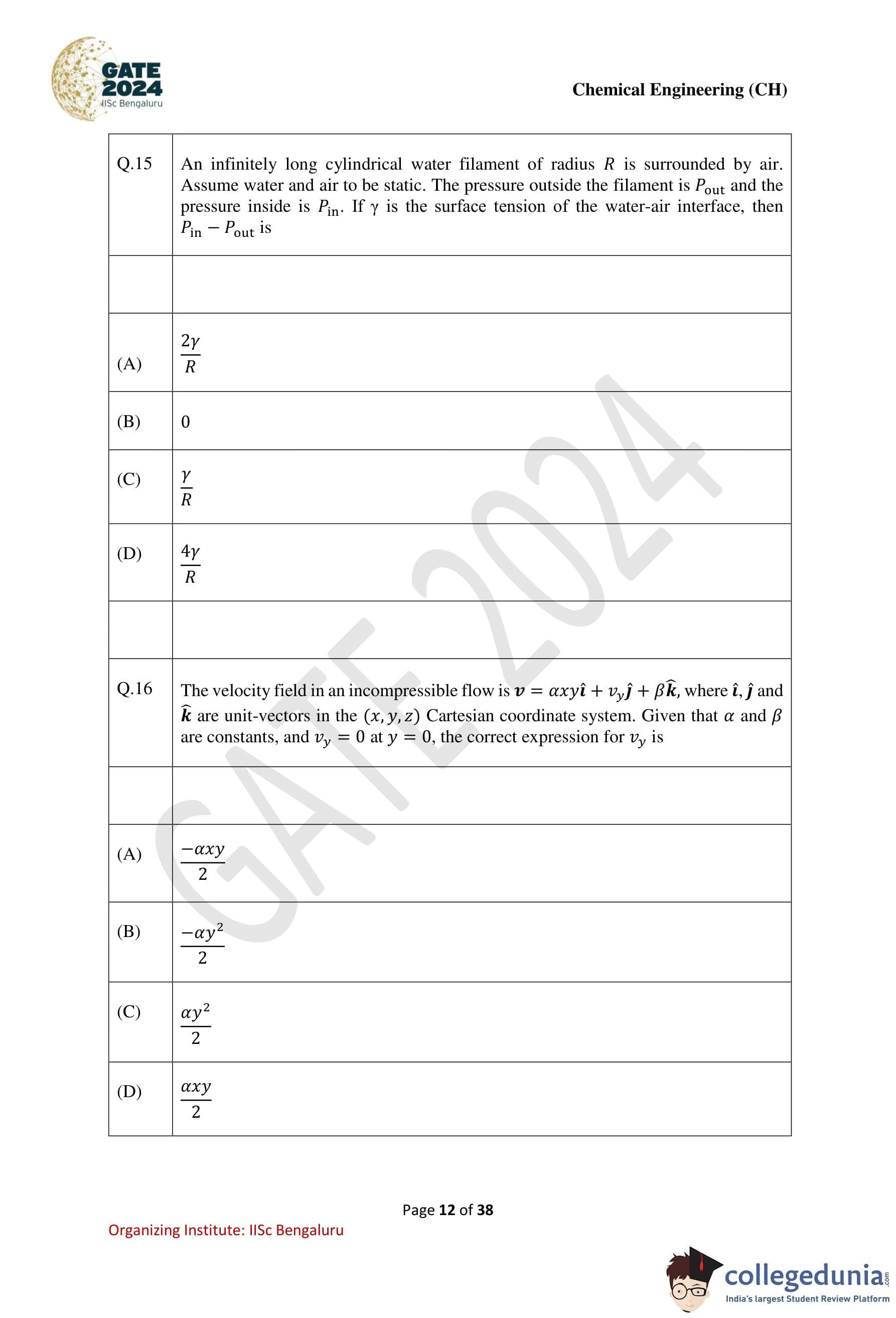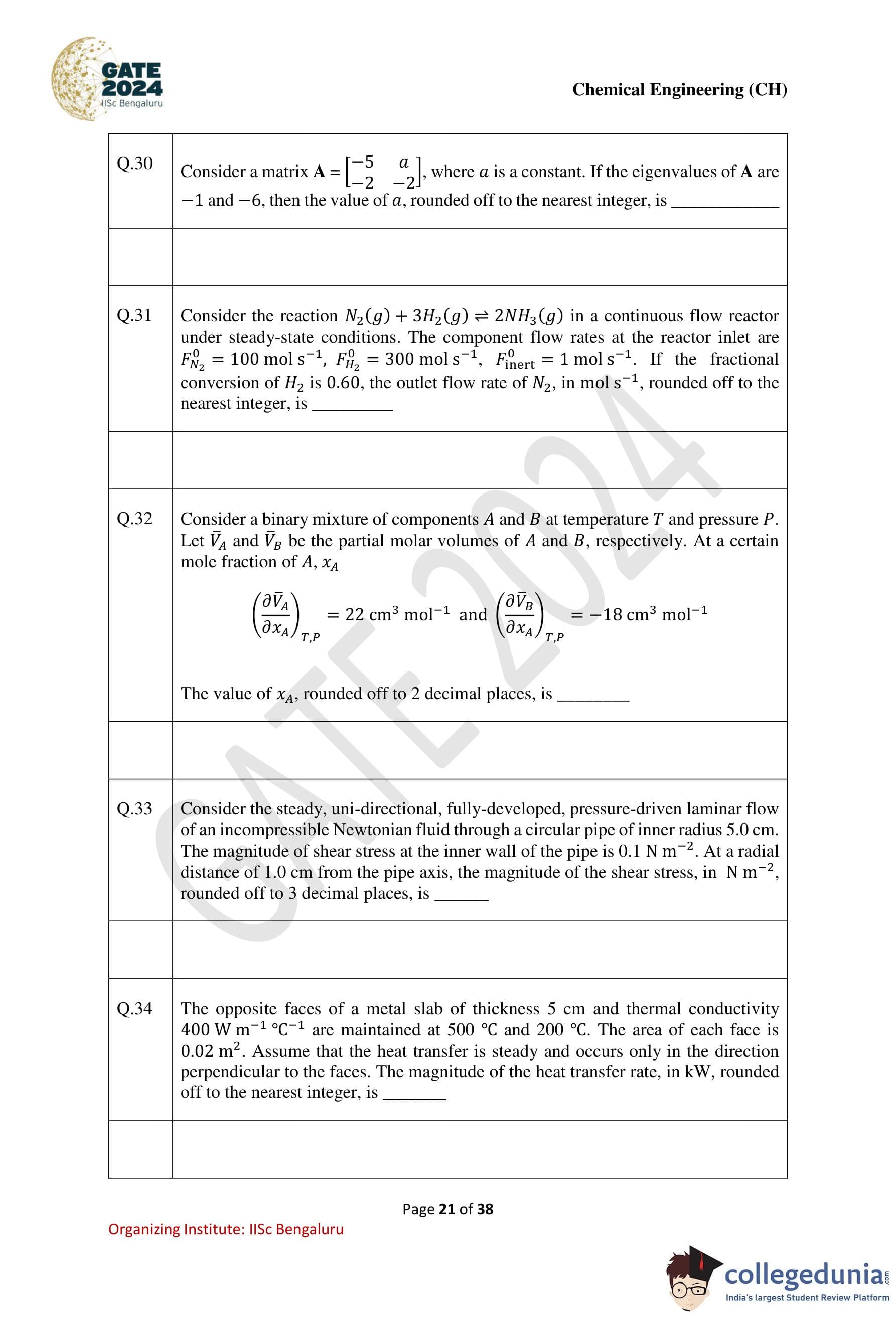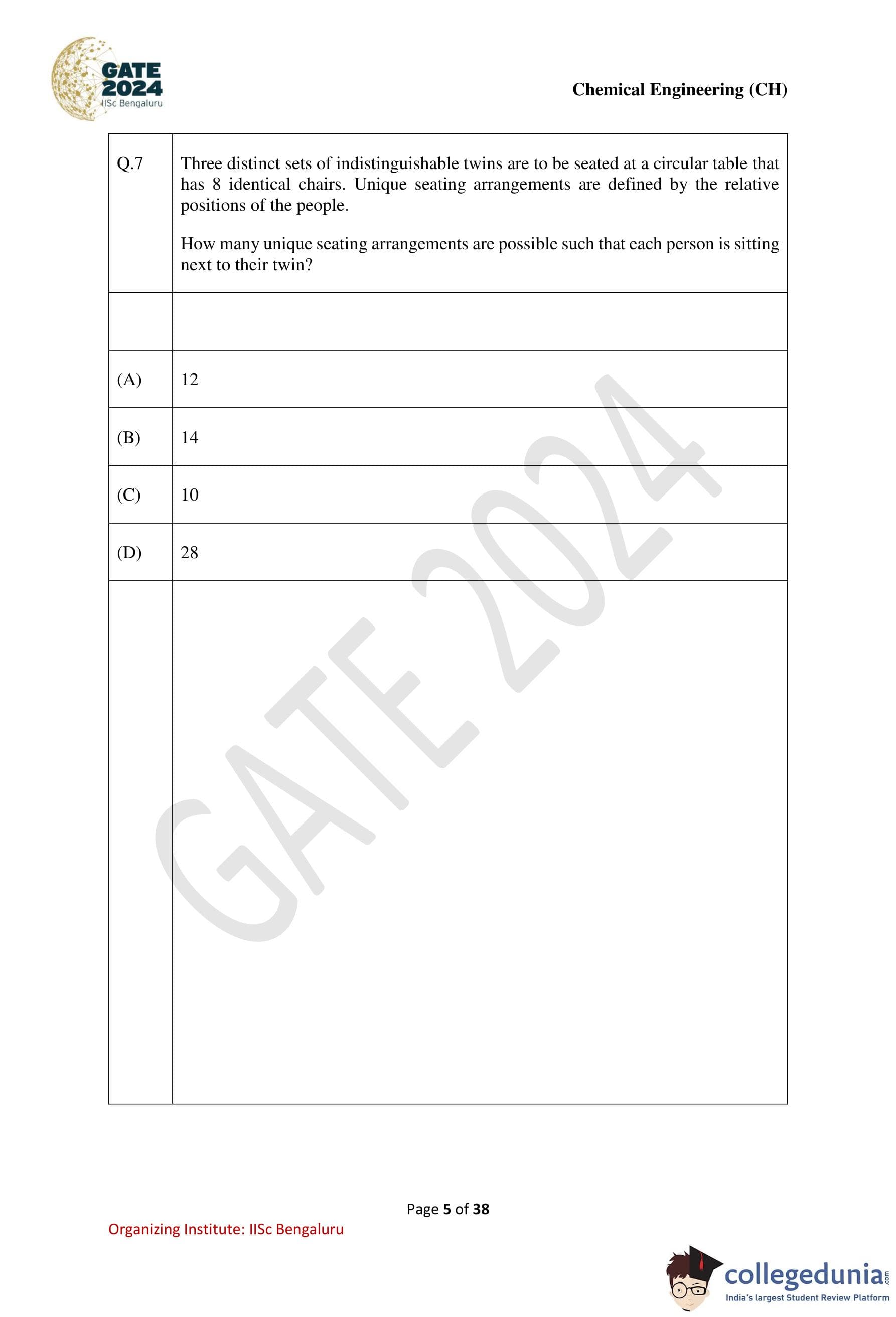 | GATE 2024 Chemical Engineering Question Paper PDF | Check Solutions |