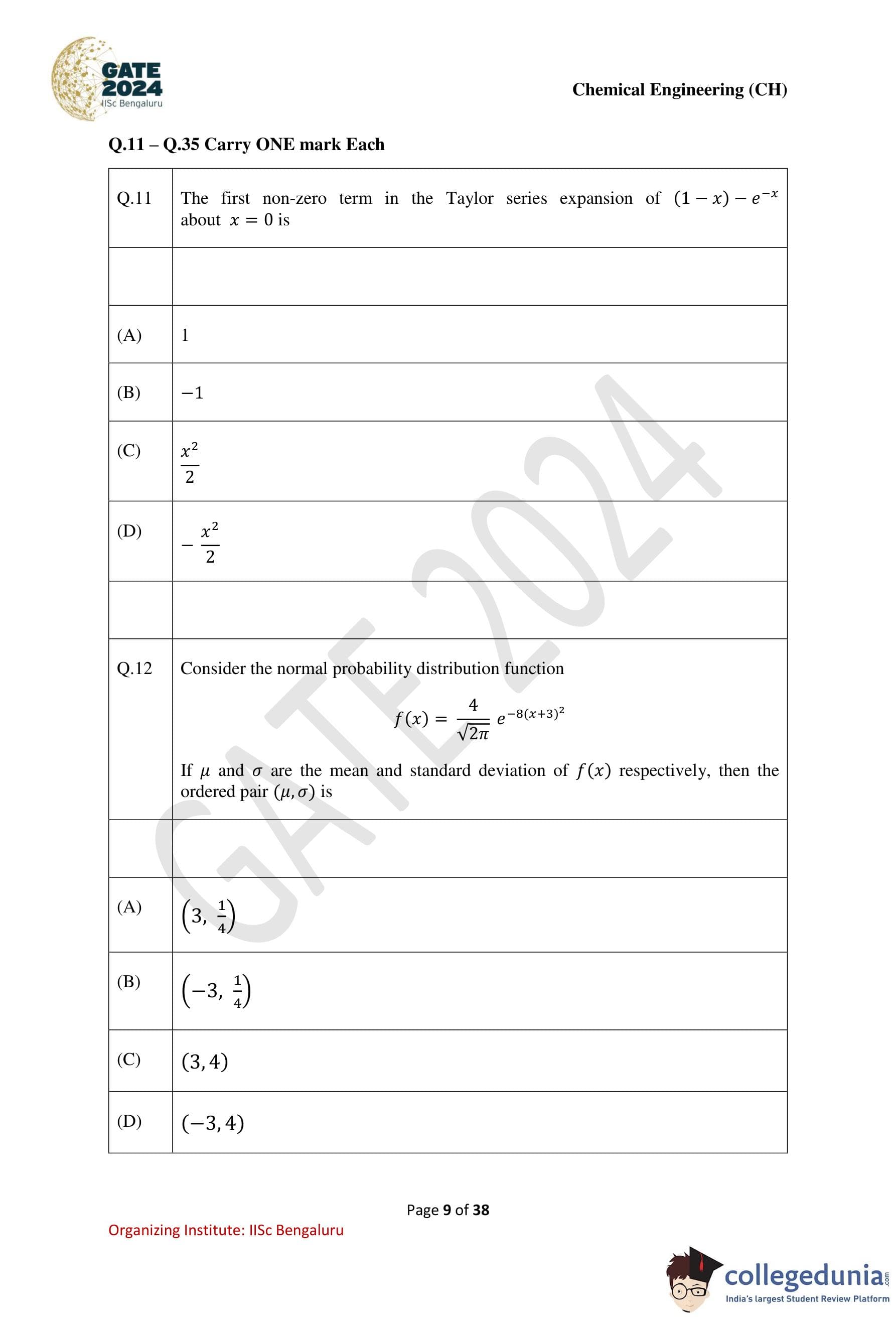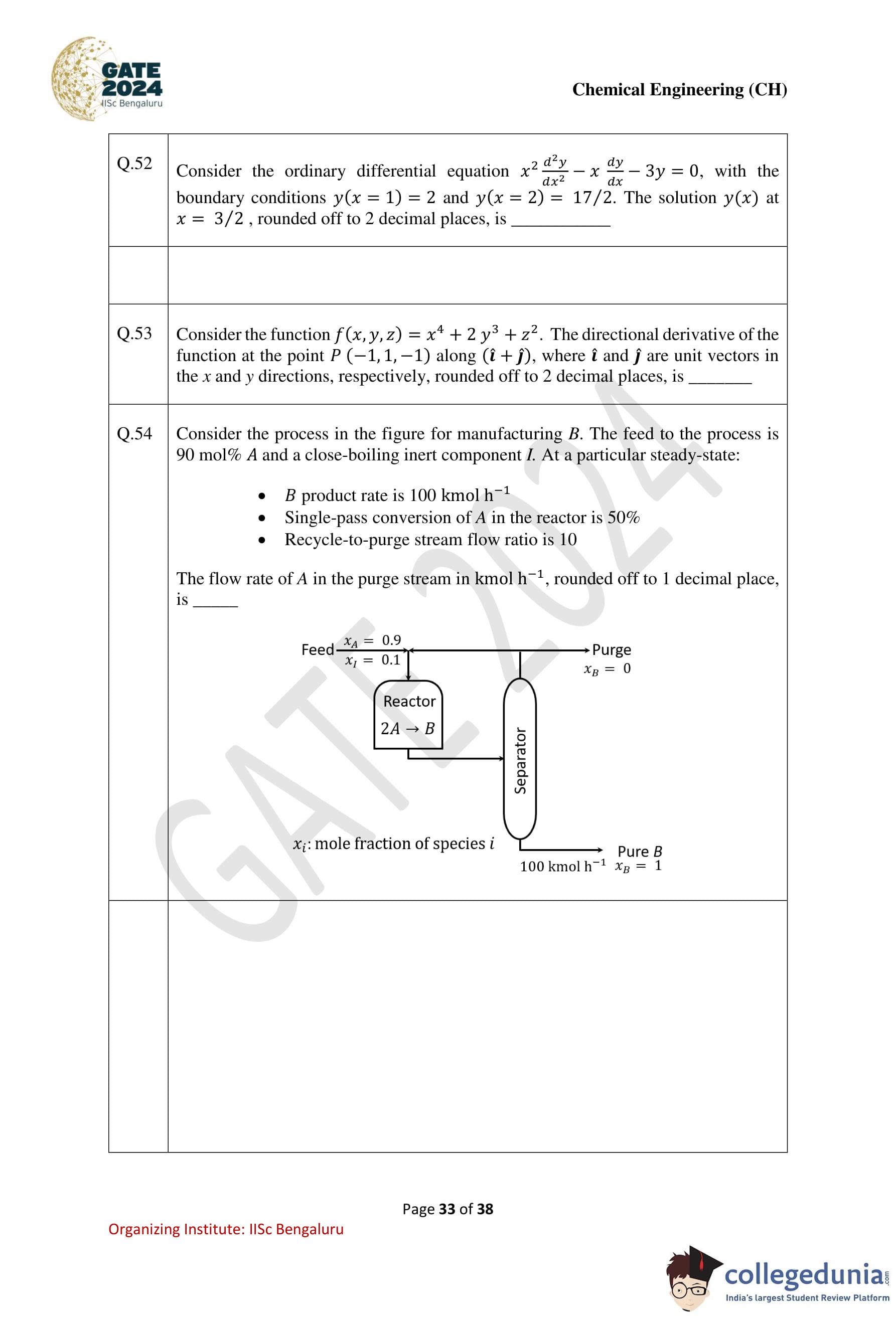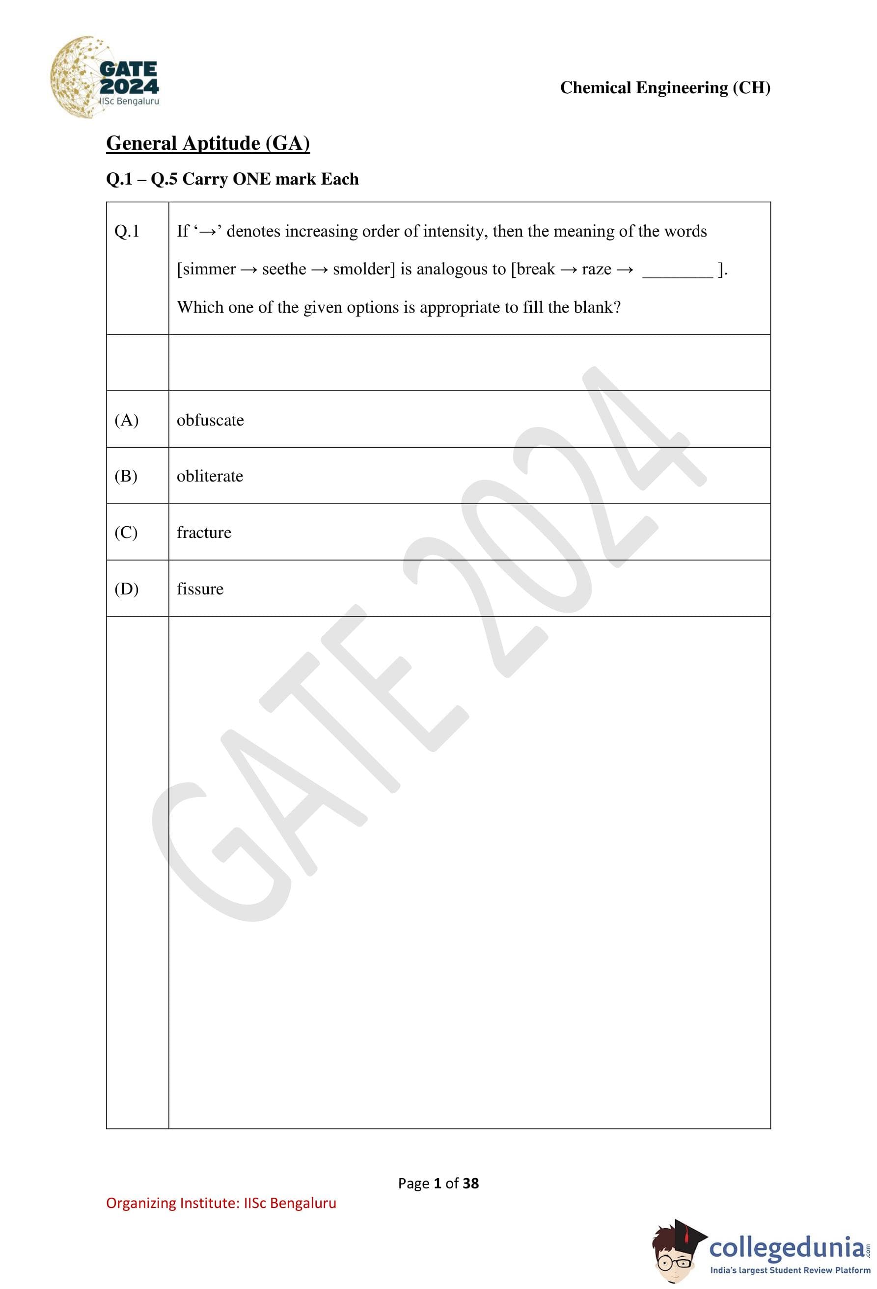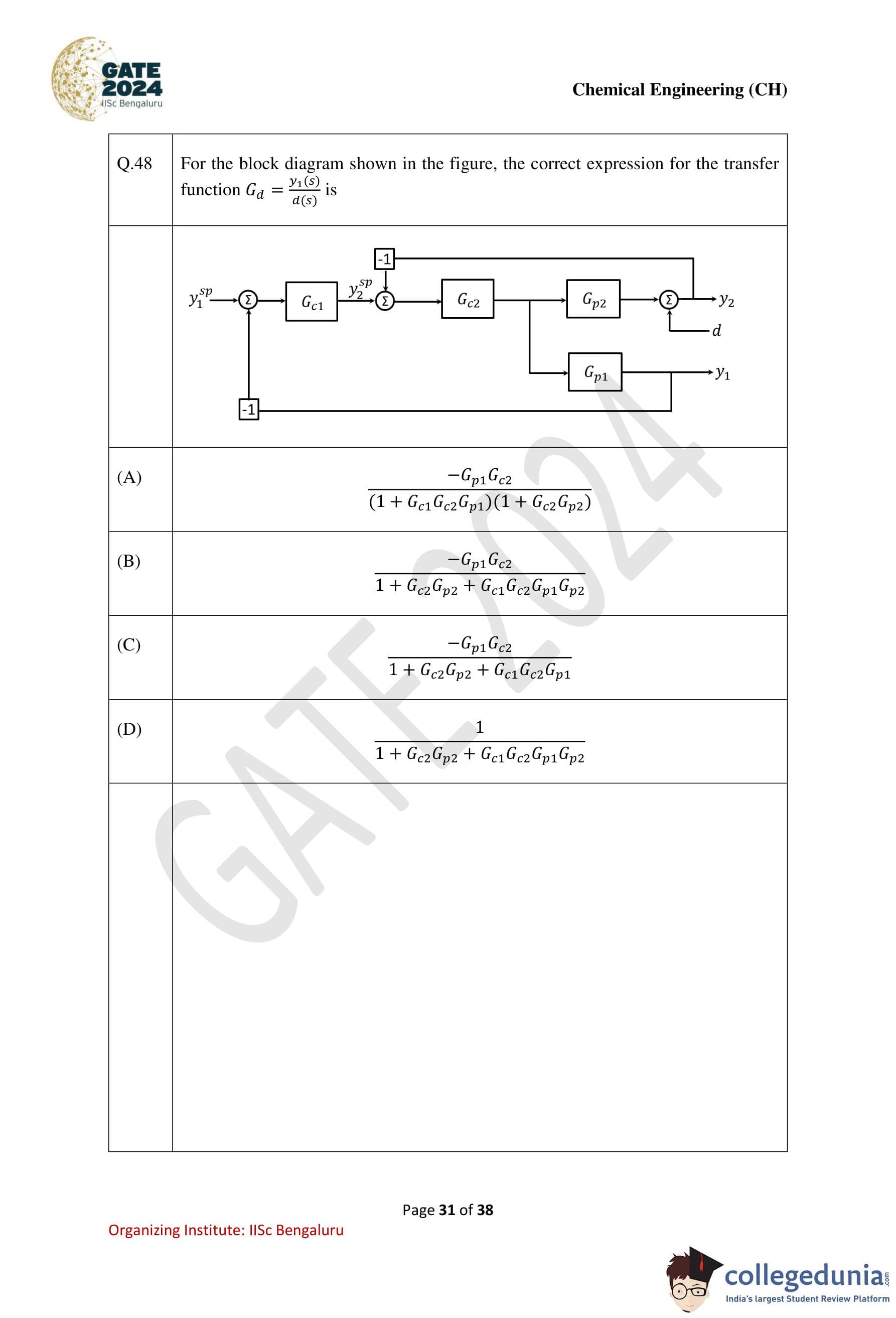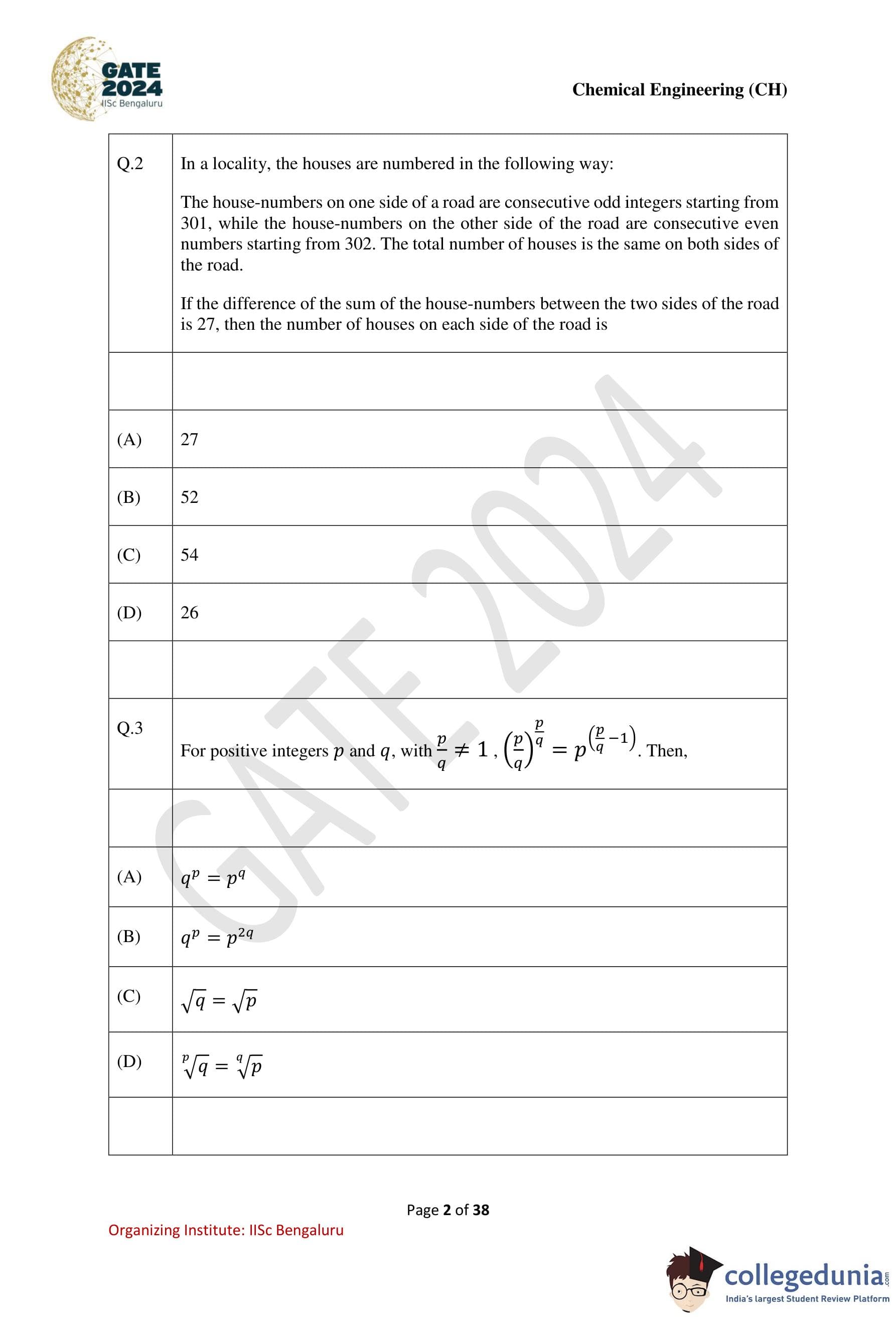 | GATE 2024 Chemical Engineering Question Paper PDF | Check Solutions |